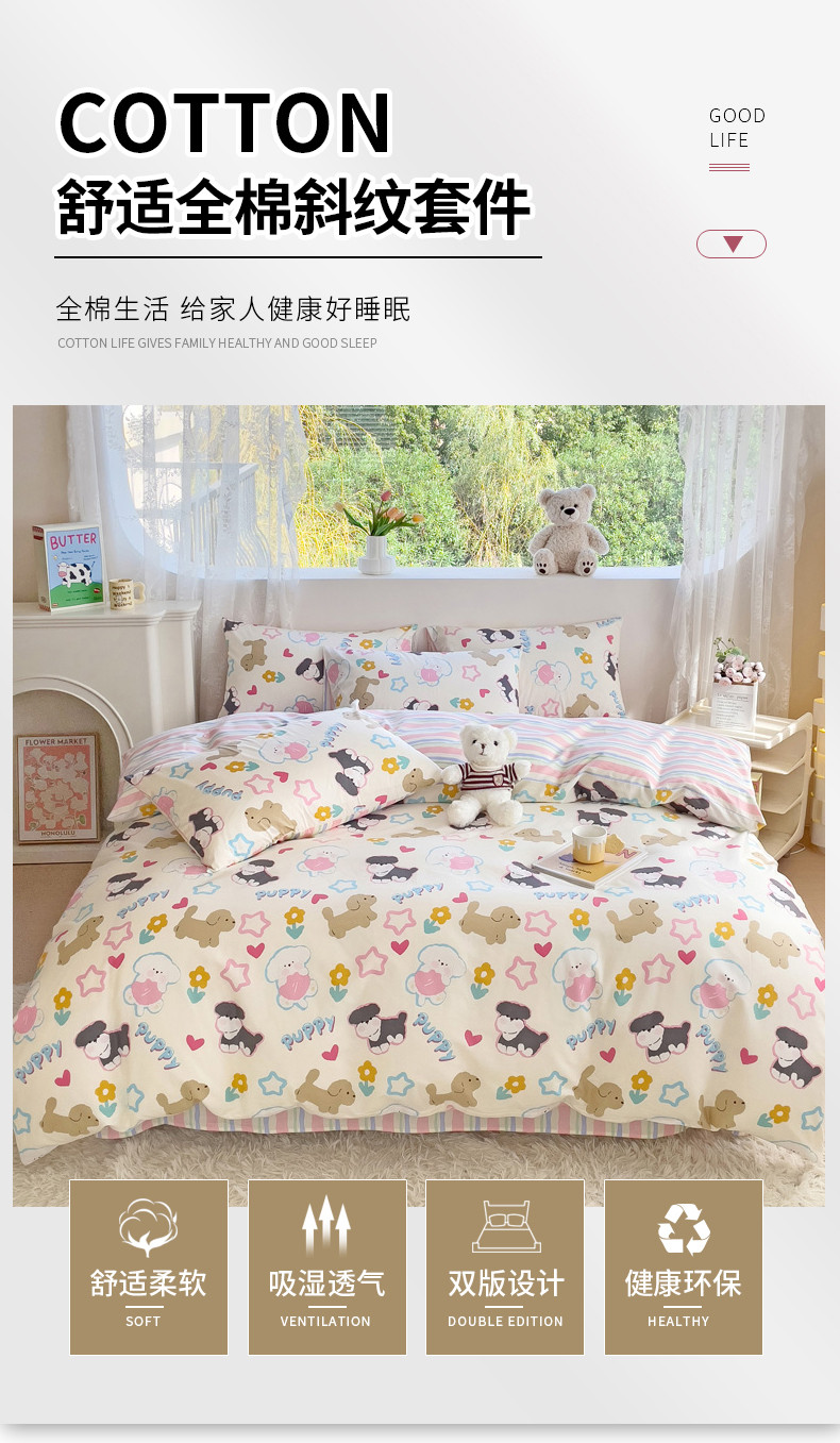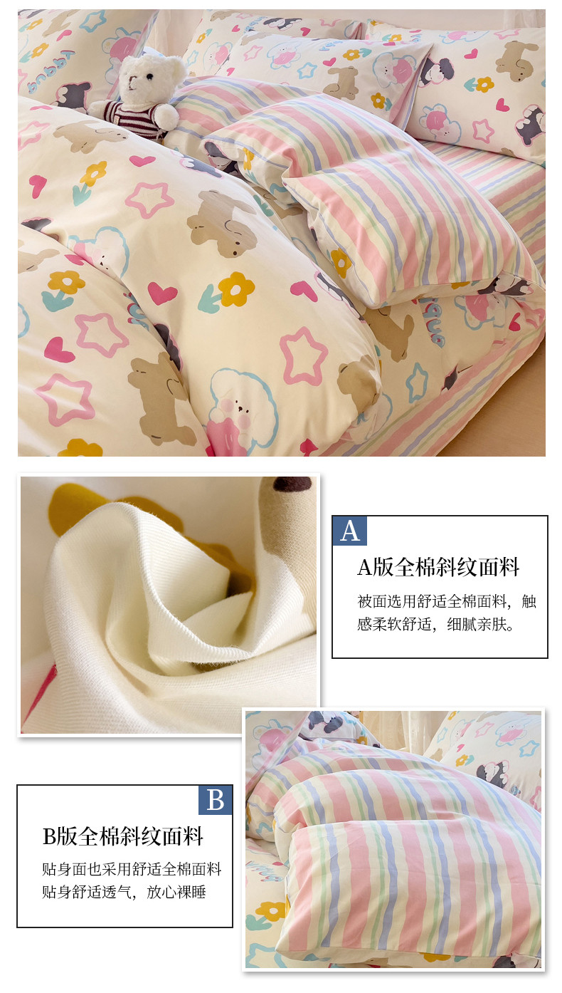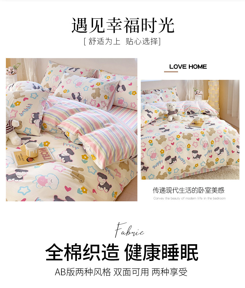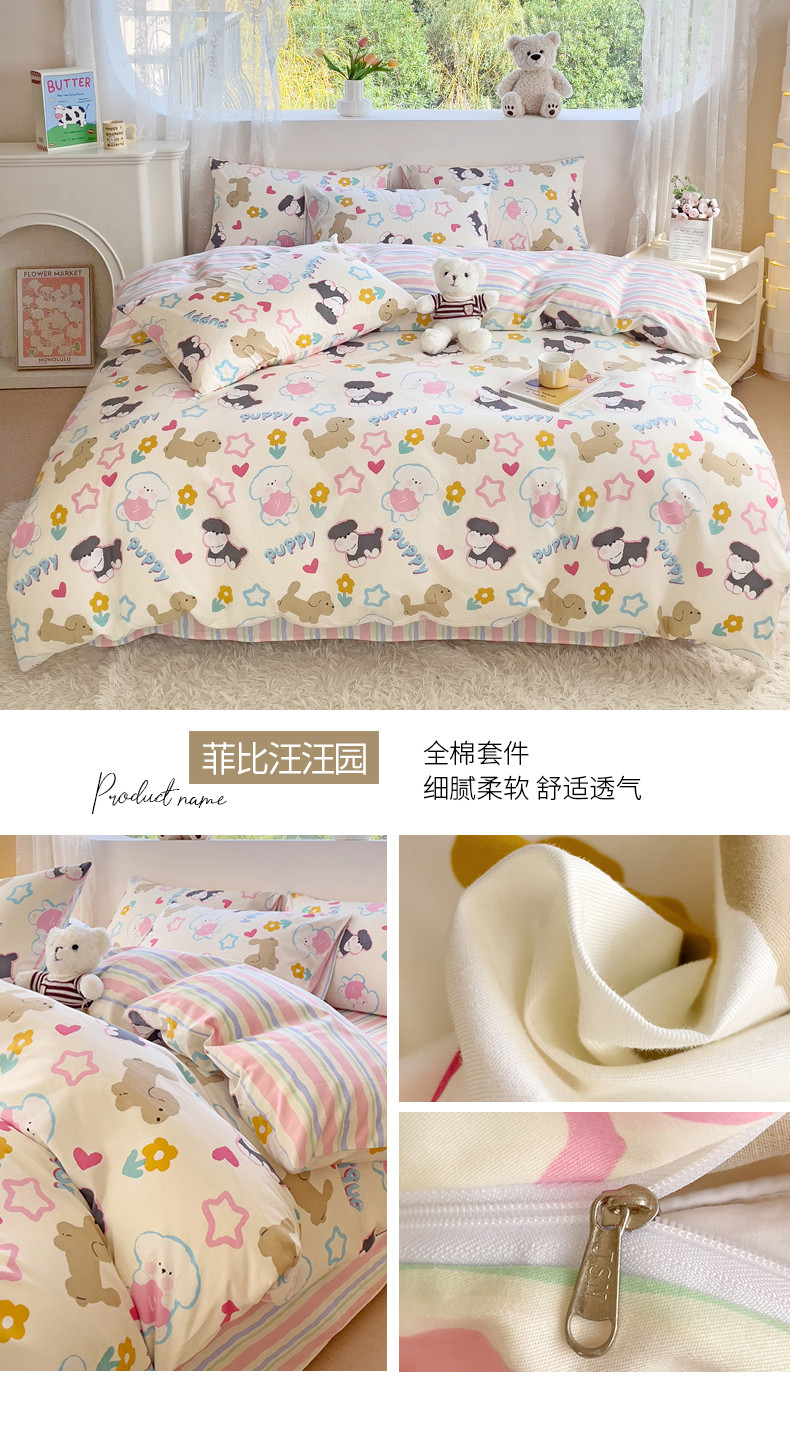 当前位置: 91家纺网 > 商品网购 > 床品套件 > 四件套 > 全棉普通四件套 > 金丝鸟 2023新款全棉可爱卡通印花小清新四件套-第二批 菲比汪汪园