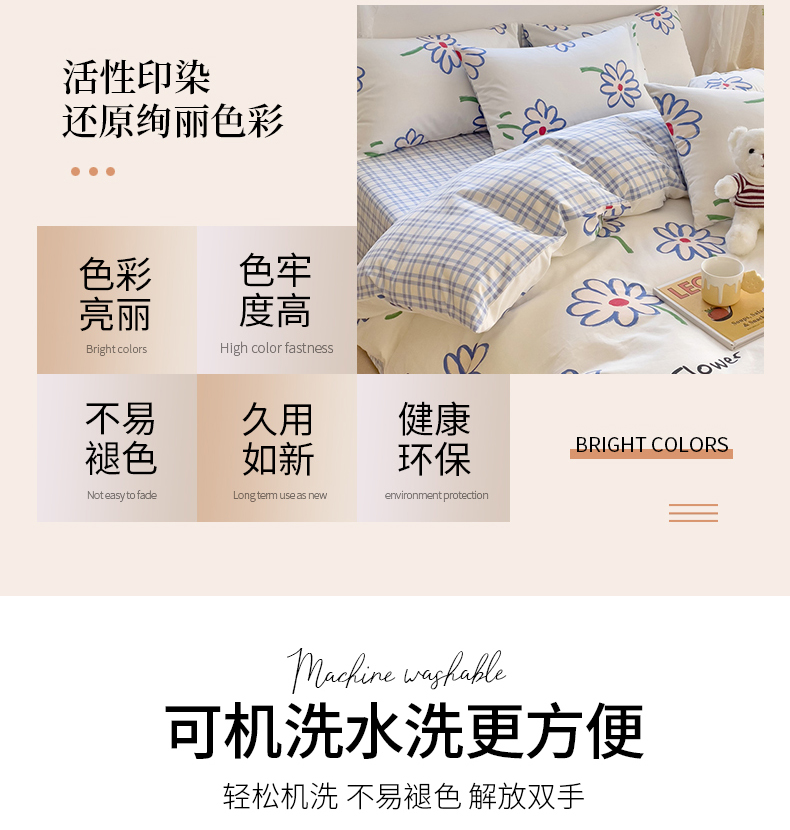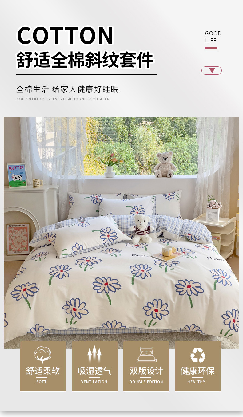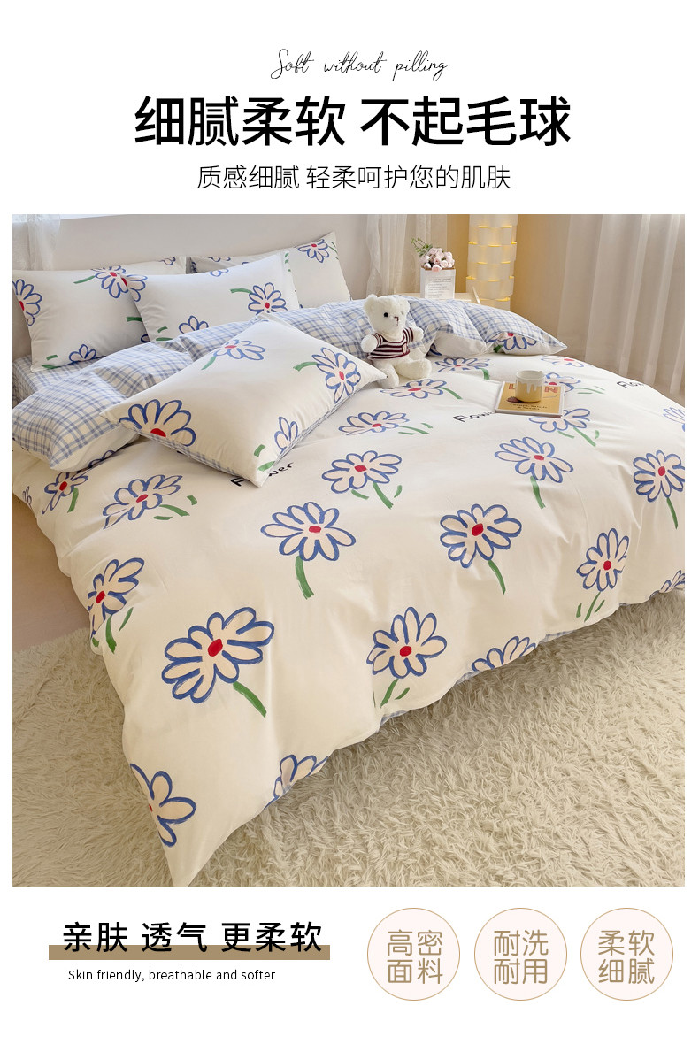 当前位置: 91家纺网 > 商品网购 > 床品套件 > 四件套 > 全棉普通四件套 > 金丝鸟 2023新款全棉可爱卡通印花小清新四件套-第二批 清雅蓝花