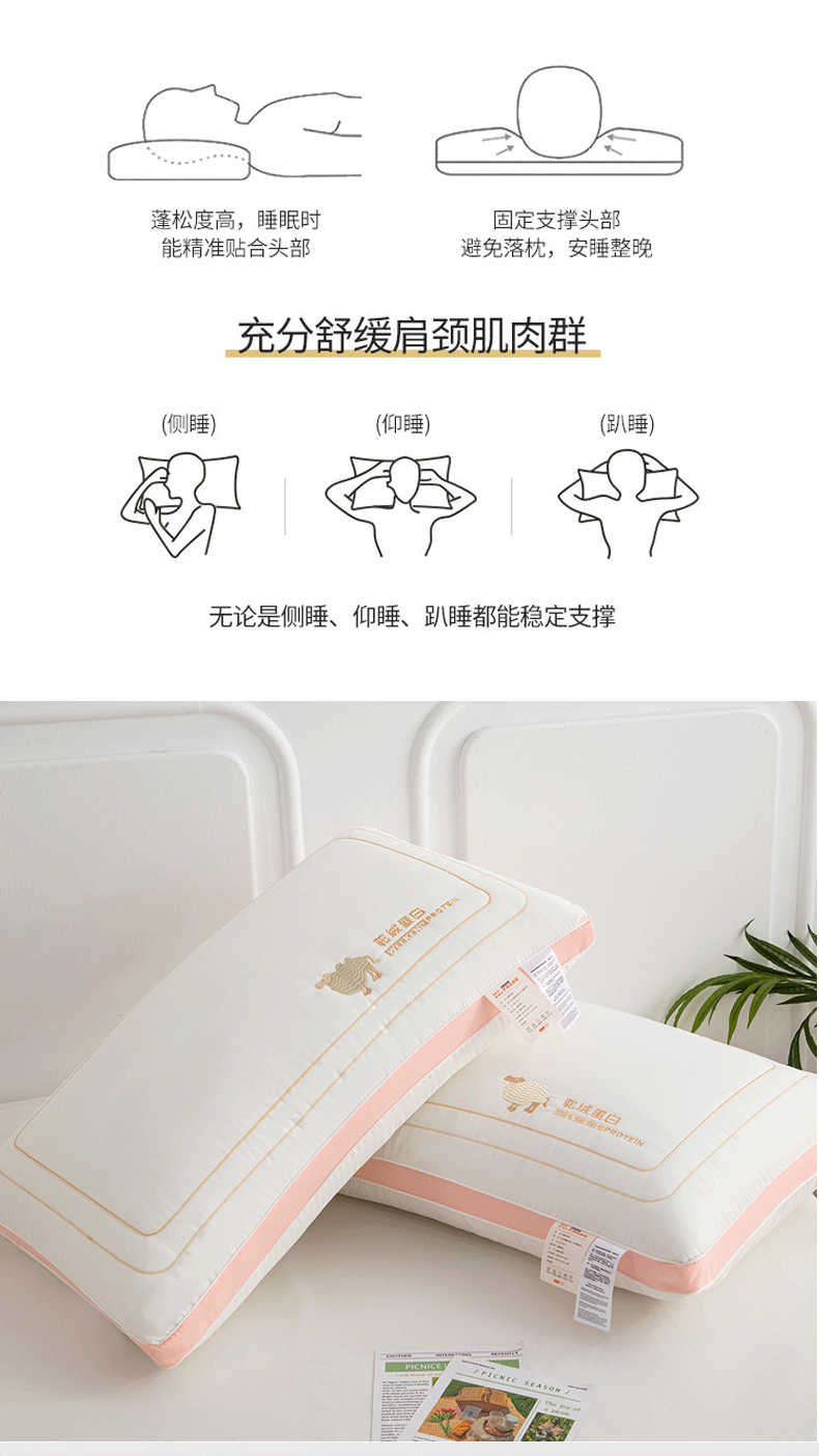 商品名称:(总)织布人 2023新款枕芯立体驼绒蛋白舒睡枕护颈羽丝绒枕头枕芯