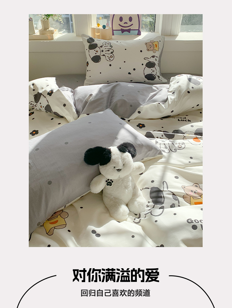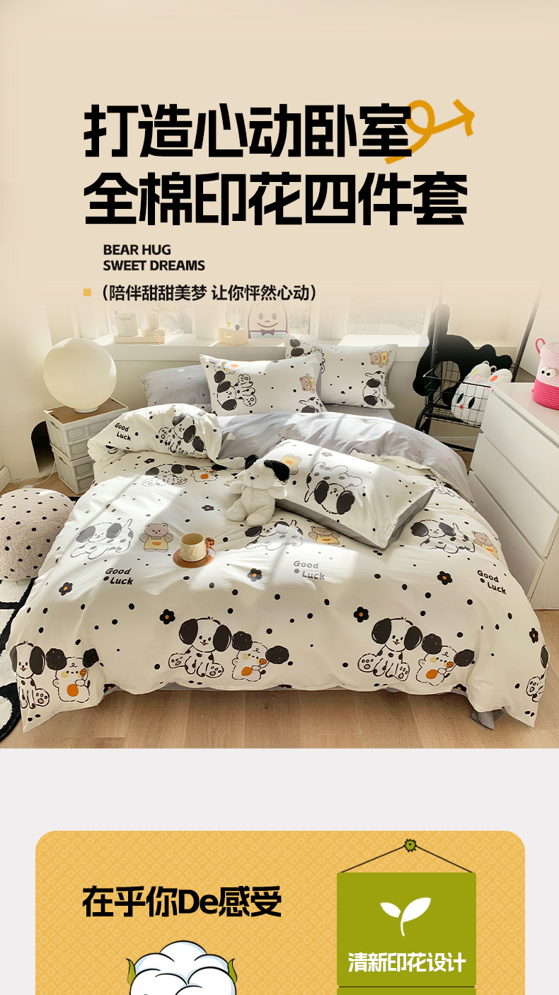 商品名称:澳萝拉 2024新款全棉印花亲肤舒适四件套 奶油狗