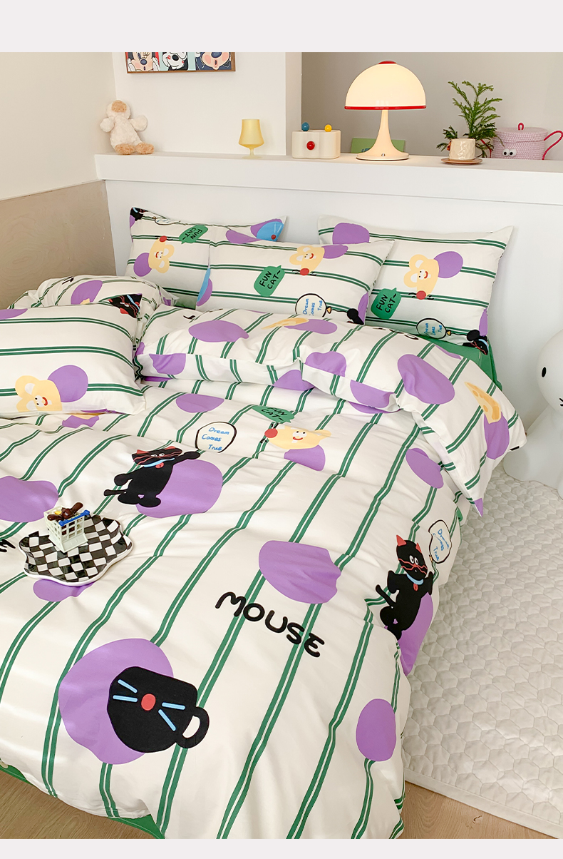 澳萝拉 2024新款全棉印花亲肤舒适四件套 线条猫咪