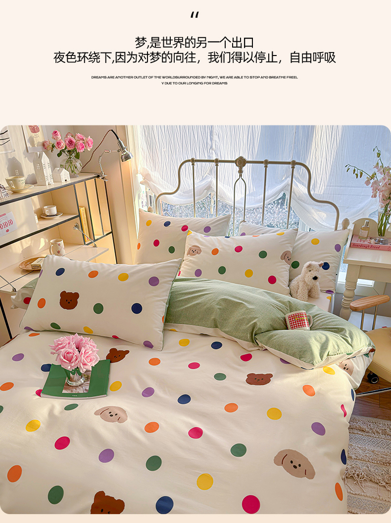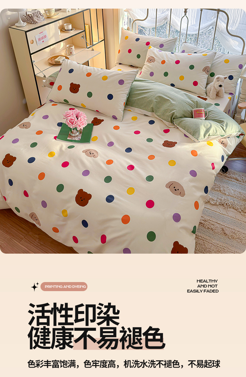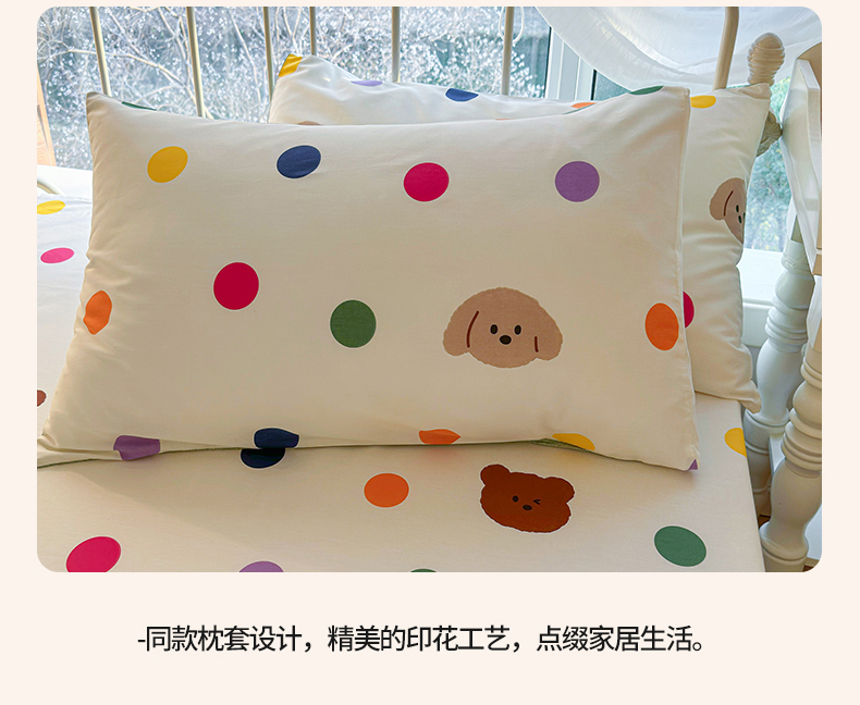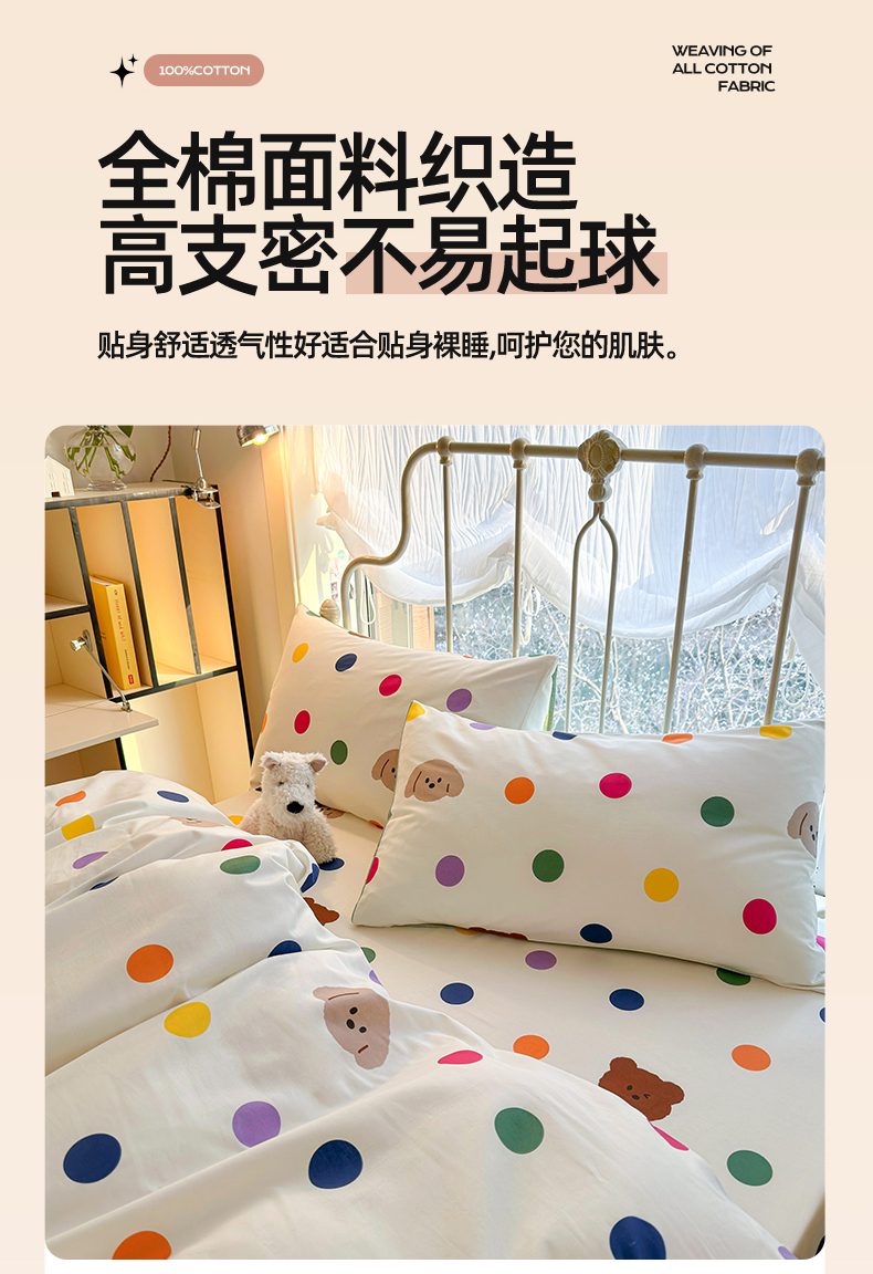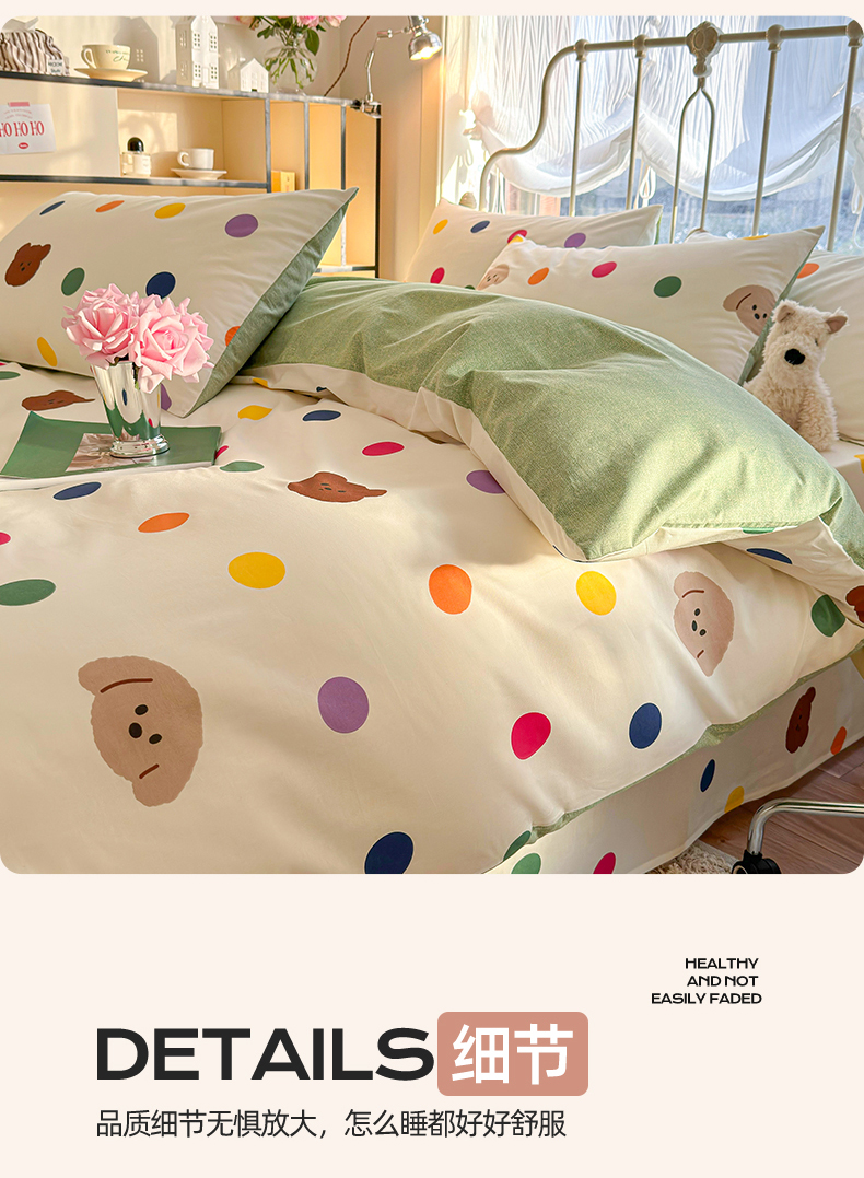 当前位置: 91家纺网 > 商品网购 > 床品套件 > 四件套 > 全棉普通四件套 > 名兮家居 2024新款卡通风系列全棉四件套 波点小熊