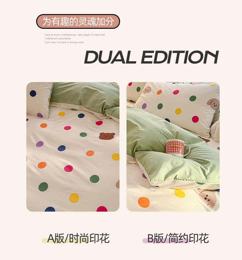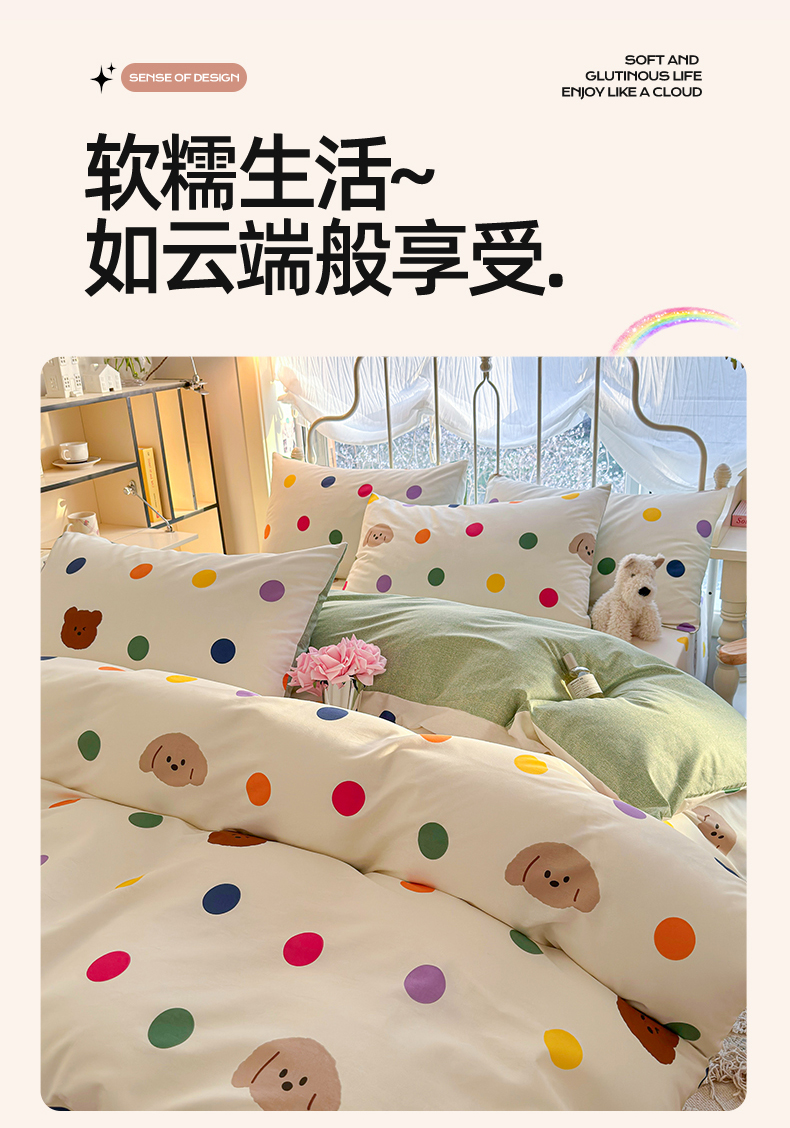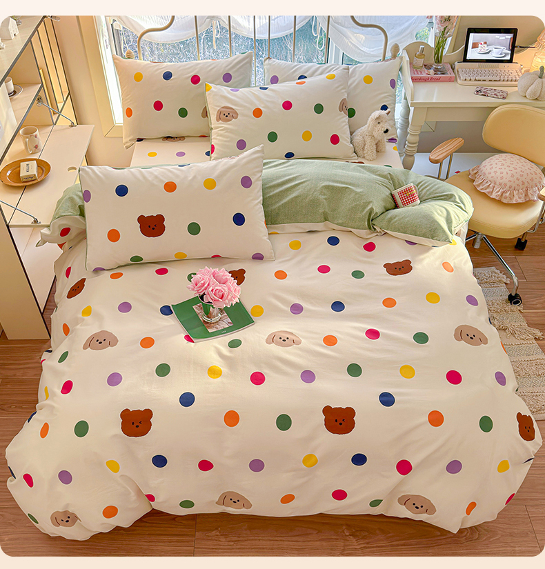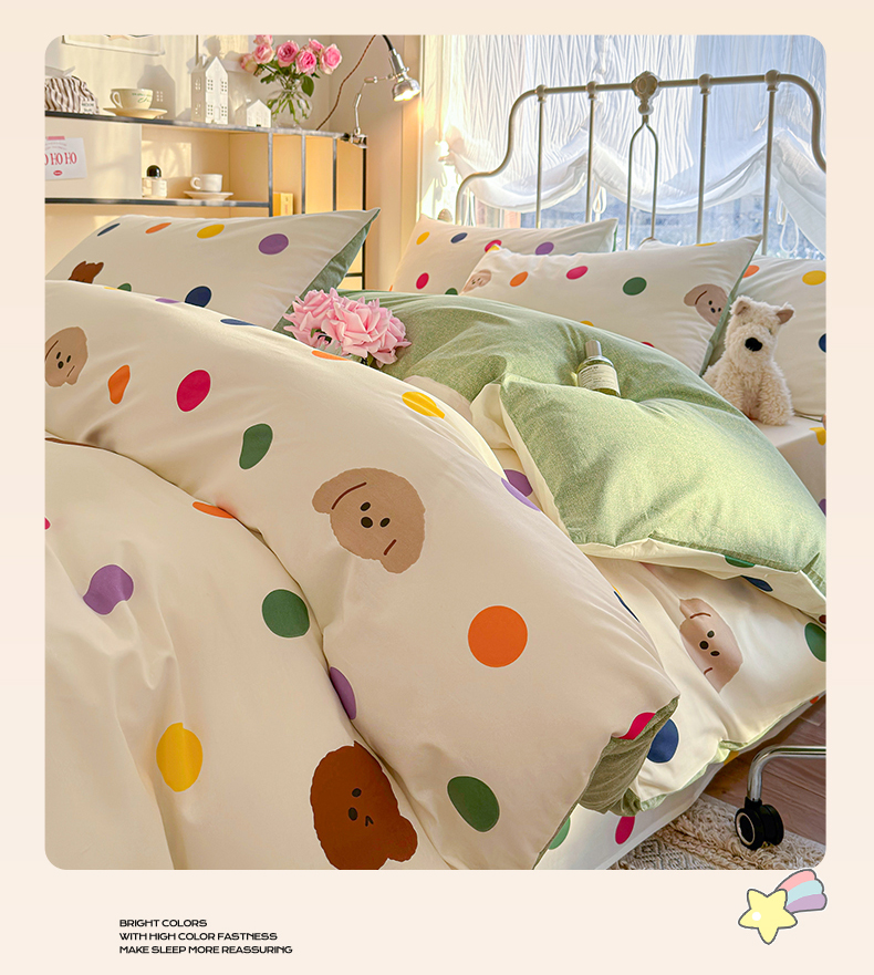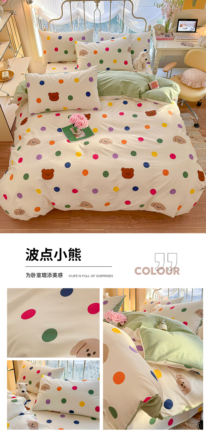 当前位置: 91家纺网 > 商品网购 > 床品套件 > 四件套 > 全棉普通四件套 > 名兮家居 2024新款卡通风系列全棉四件套 波点小熊