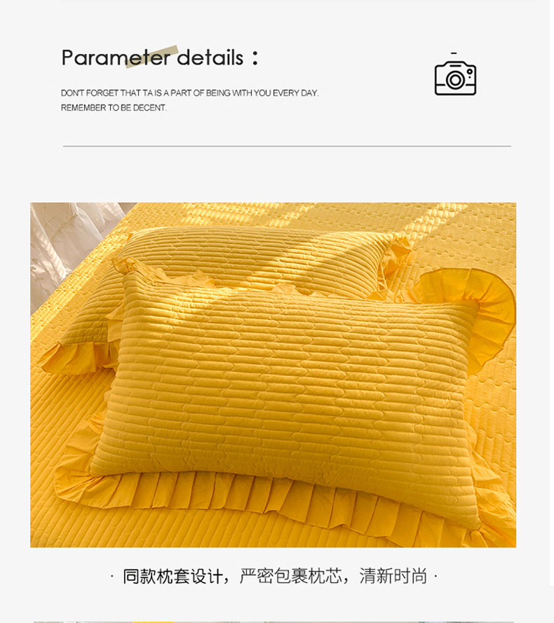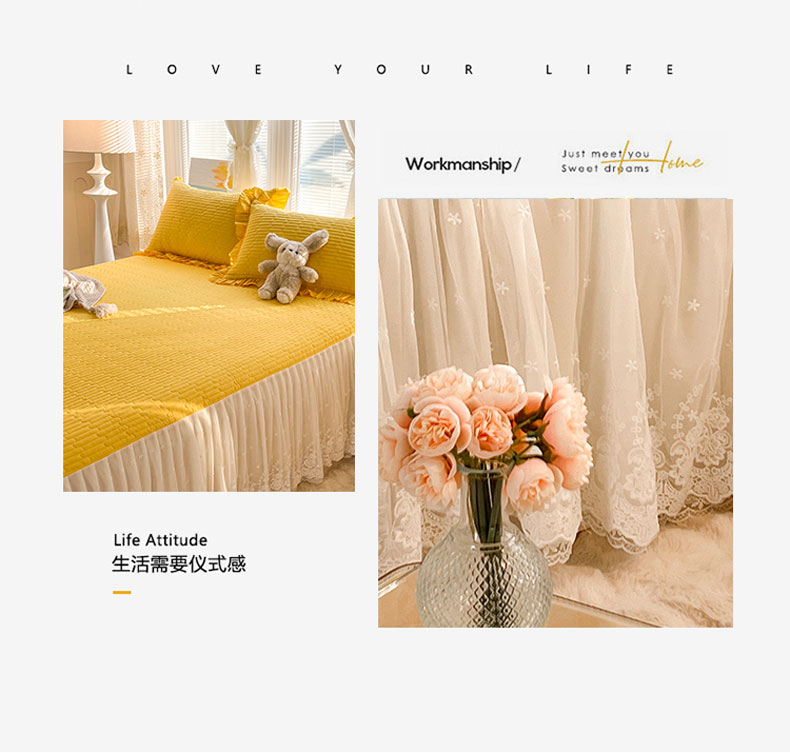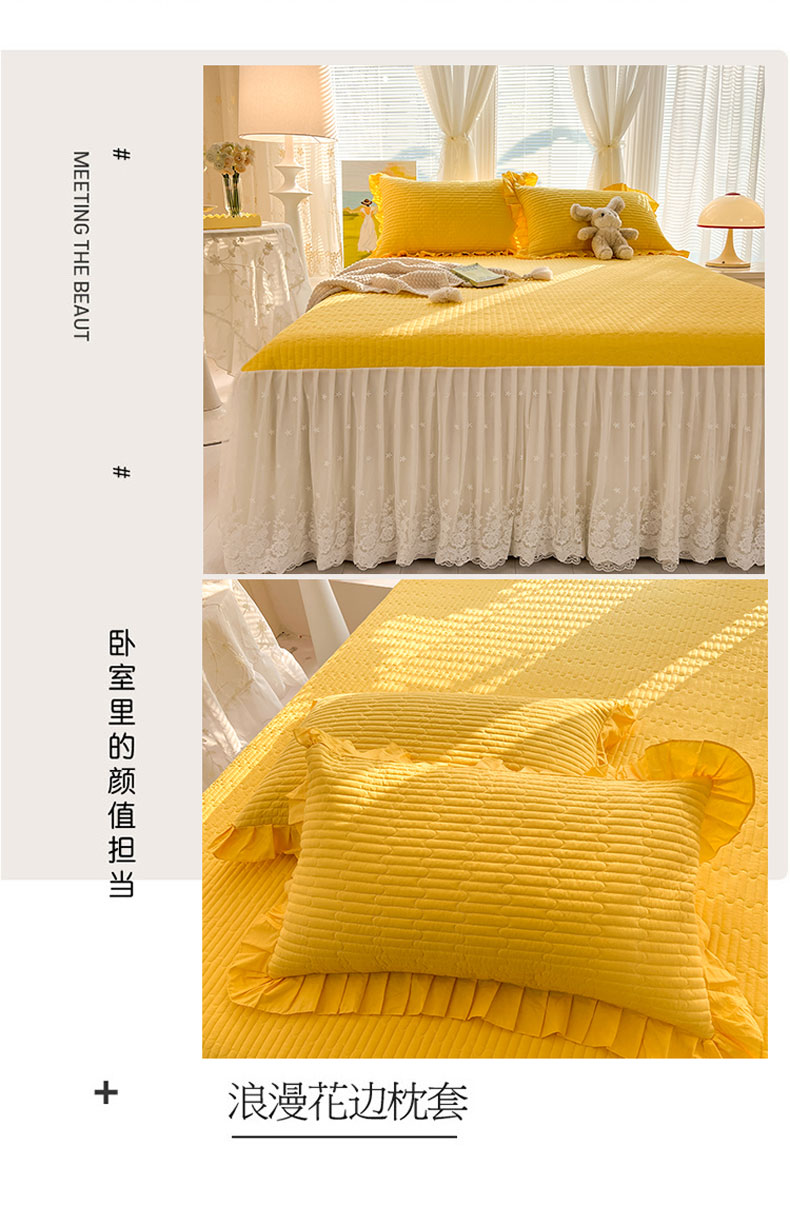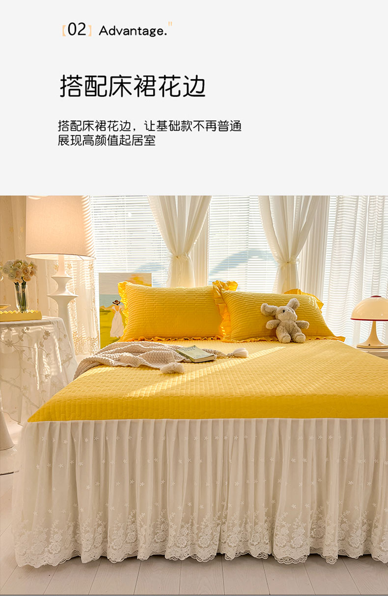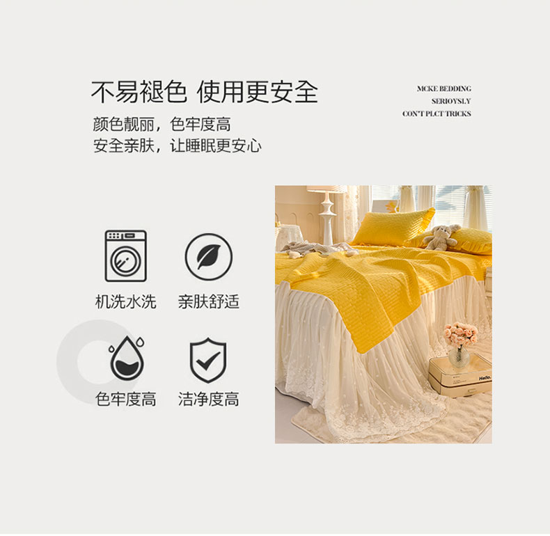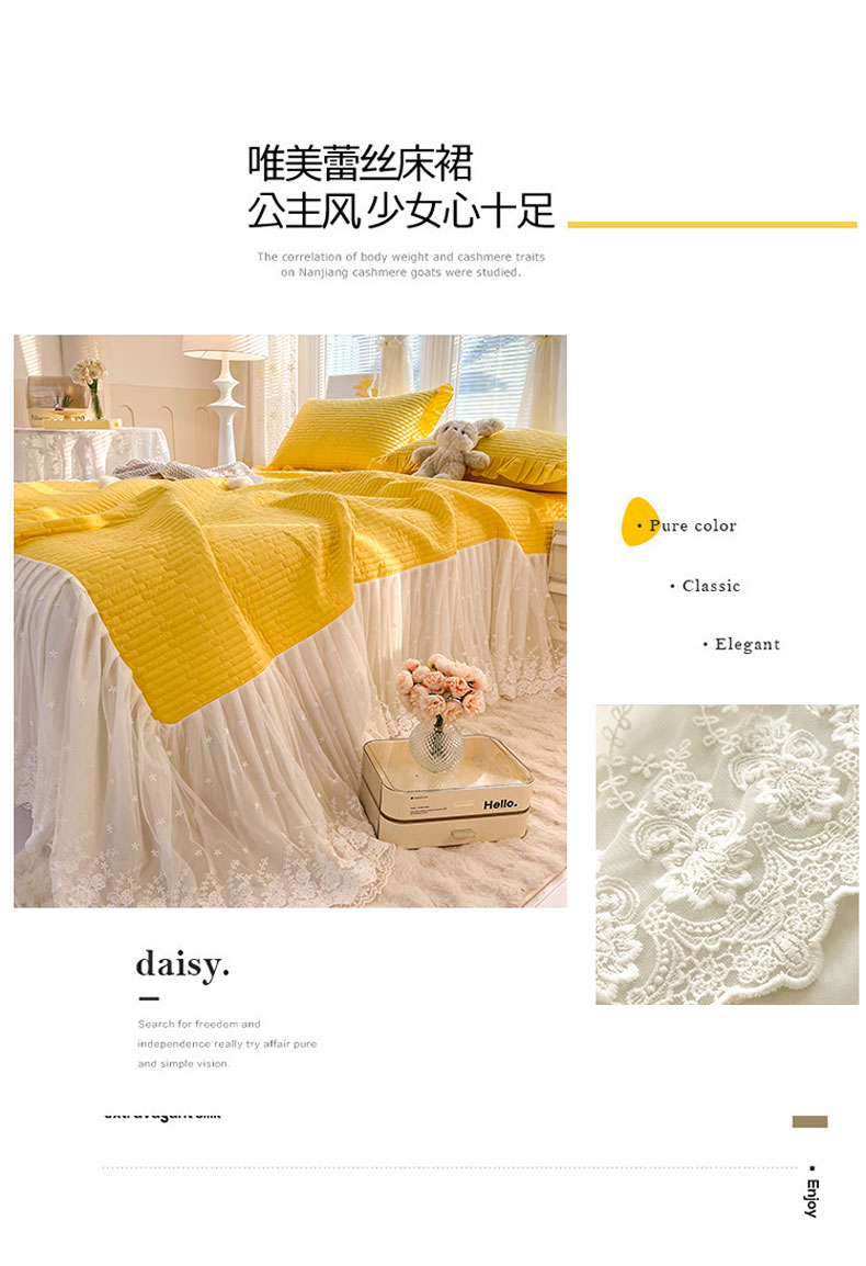 商品名称:花香四季2024年新款13376全棉夹棉蕾丝公主风床裙三件套 奶黄色