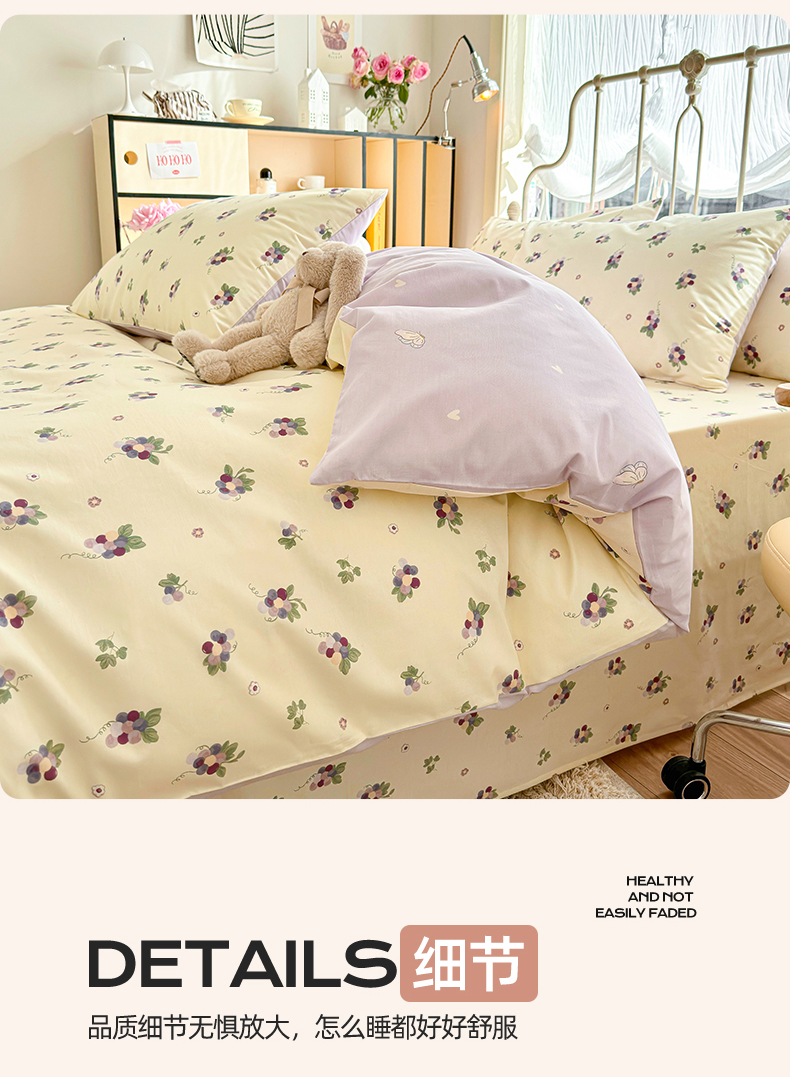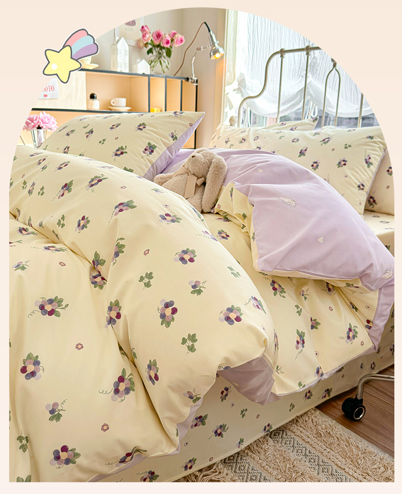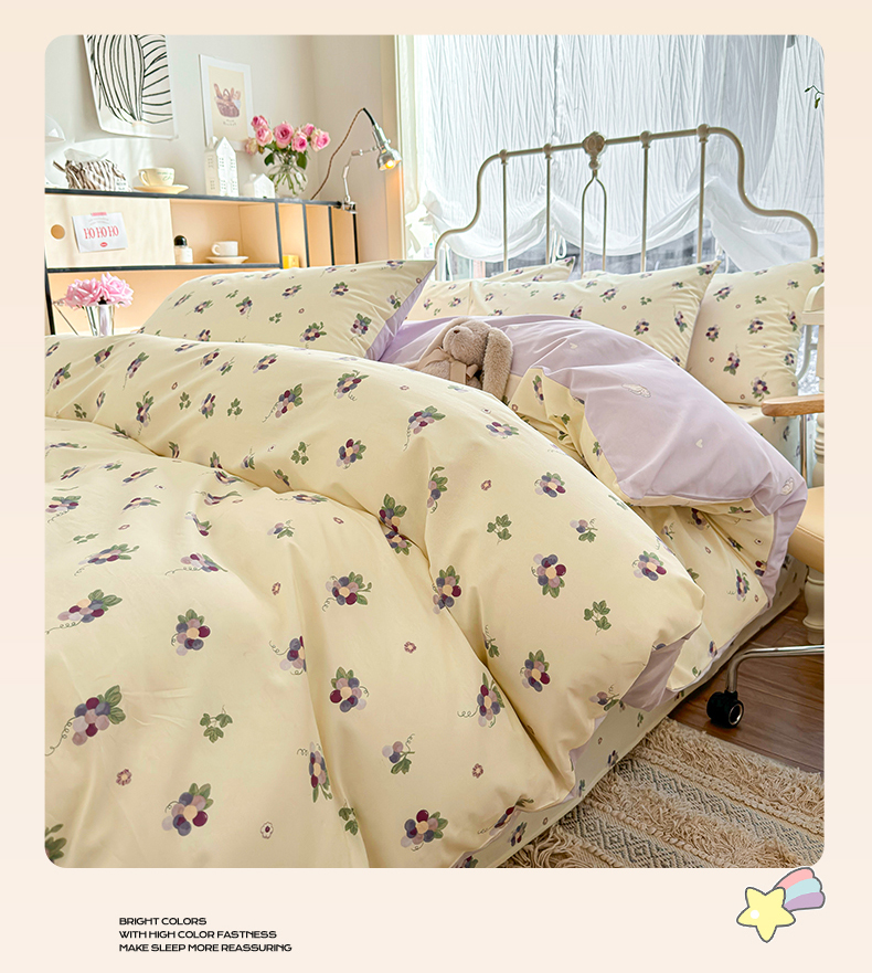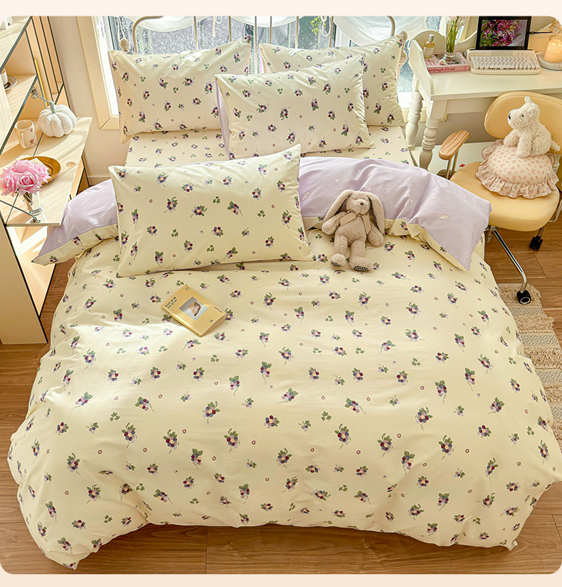 当前位置: 91家纺网 > 商品网购 > 床品套件 > 四件套 > 全棉普通四件套 > 名兮家居 2024新款小清新全棉四件套 紫葡萄