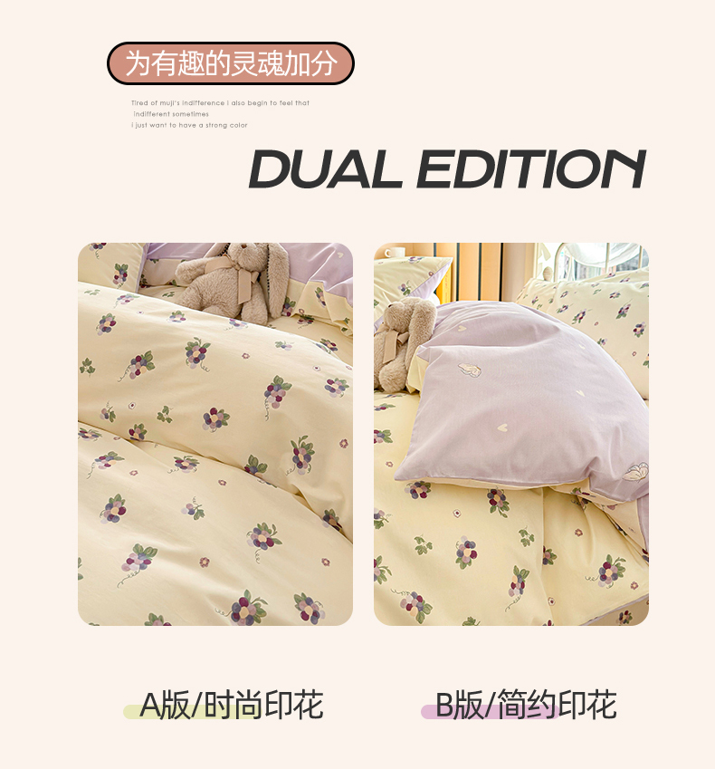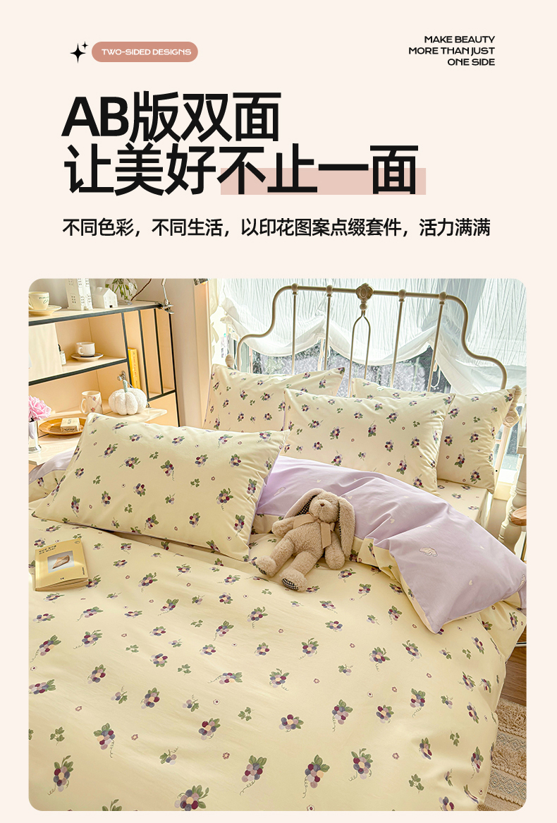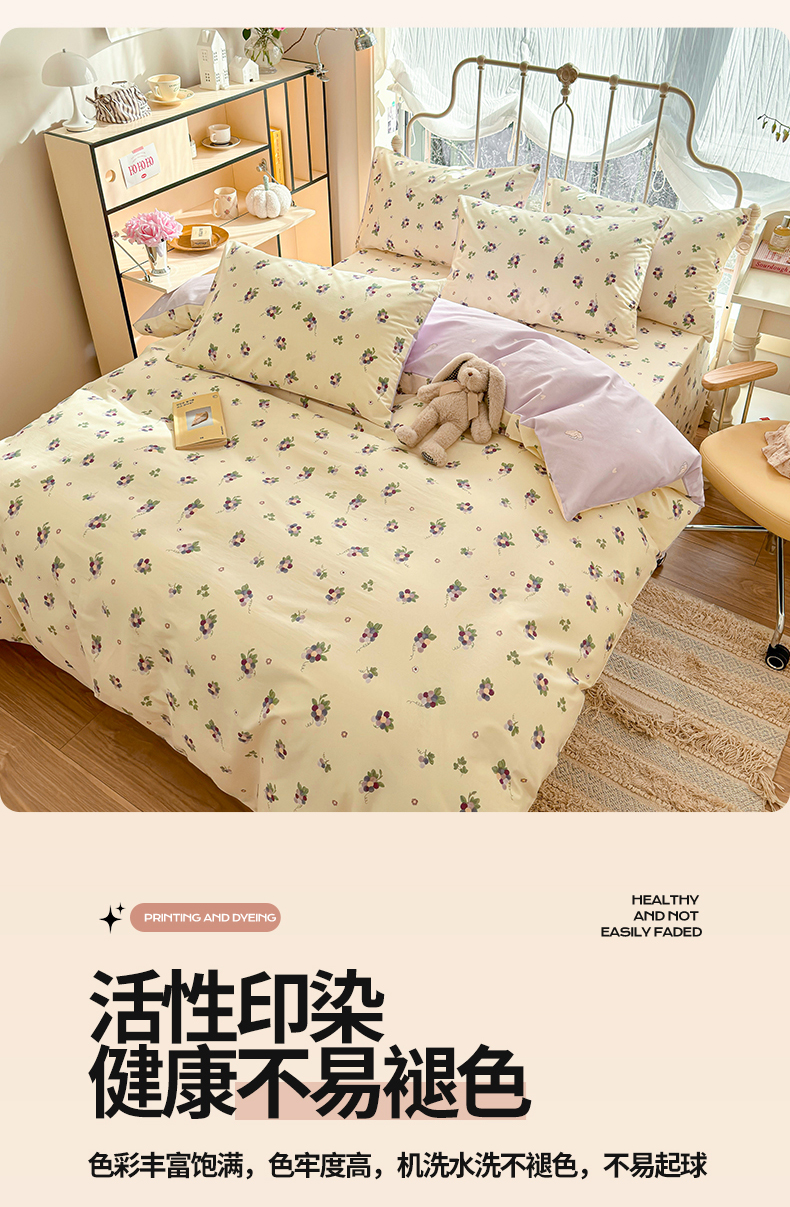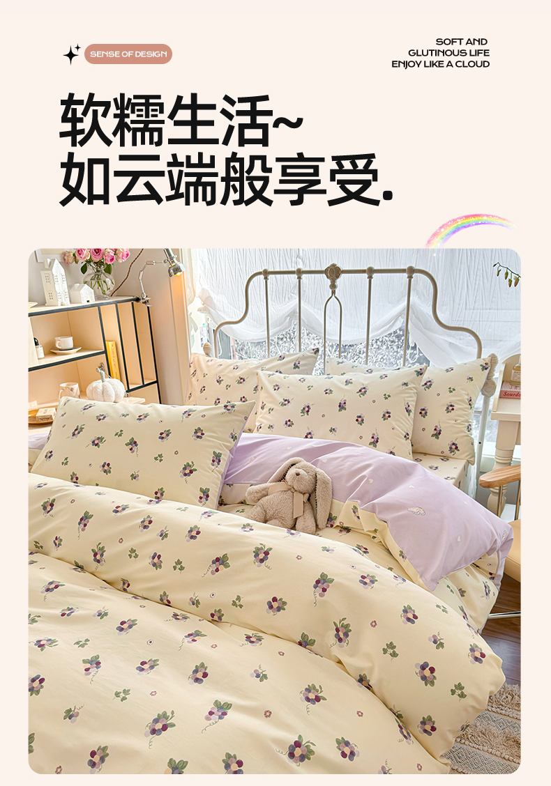 当前位置: 91家纺网 > 商品网购 > 床品套件 > 四件套 > 全棉普通四件套 > 名兮家居 2024新款小清新全棉四件套 紫葡萄
