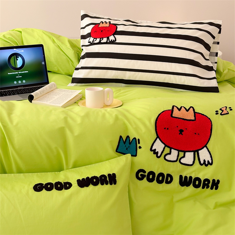 珺柔家纺 2024新款13372全棉印加绣毛巾绣四件套系列 番茄果果