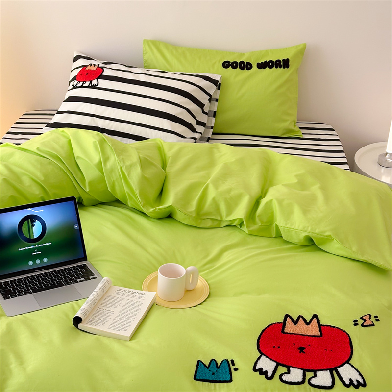 (总)珺柔家纺 2025新款全棉磨毛绣花四件套,风车小熊,海盐雪纳瑞,黑白熊猫,咖啡店小狗,腊肠三小只,萌神小喵,纽扣小熊,苹果小熊-咖,苹果小熊-蓝,夏日时光,小恶魔