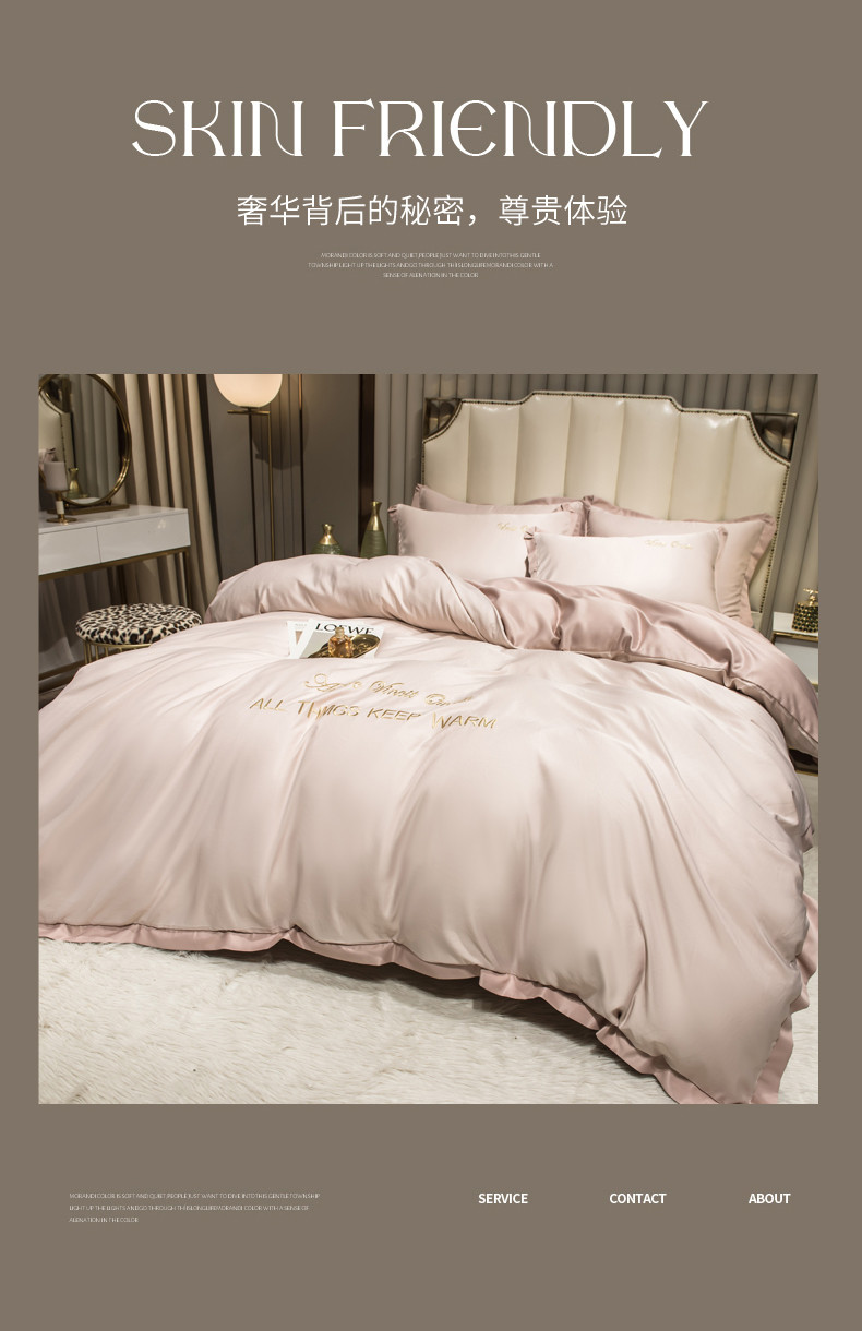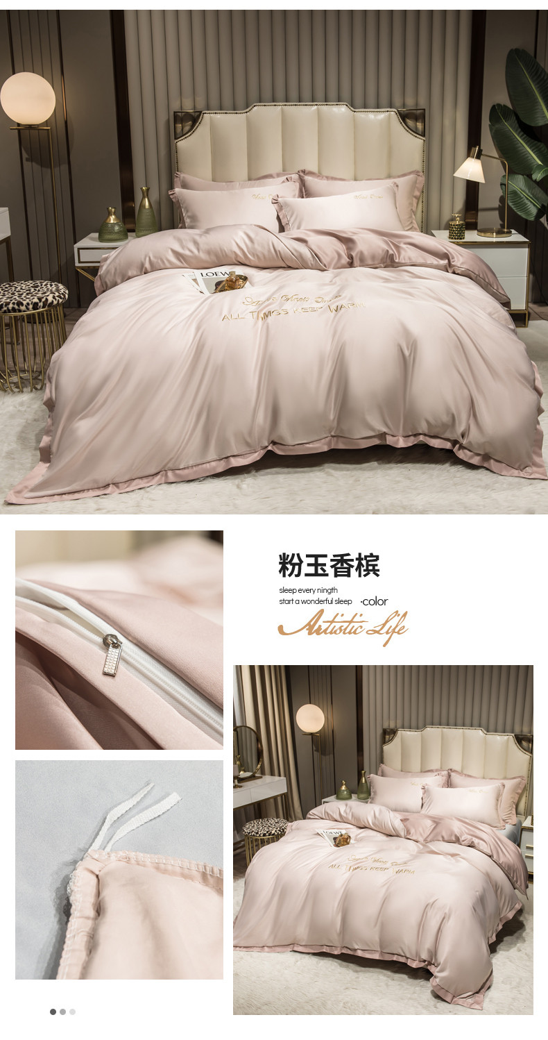 当前位置: 91家纺网 > 商品网购 > 床品套件 > 四件套 > 水洗真丝四件套 > 欧冠 2024新品水洗真丝绣花盛夏系列单被套四件套粉玉香槟