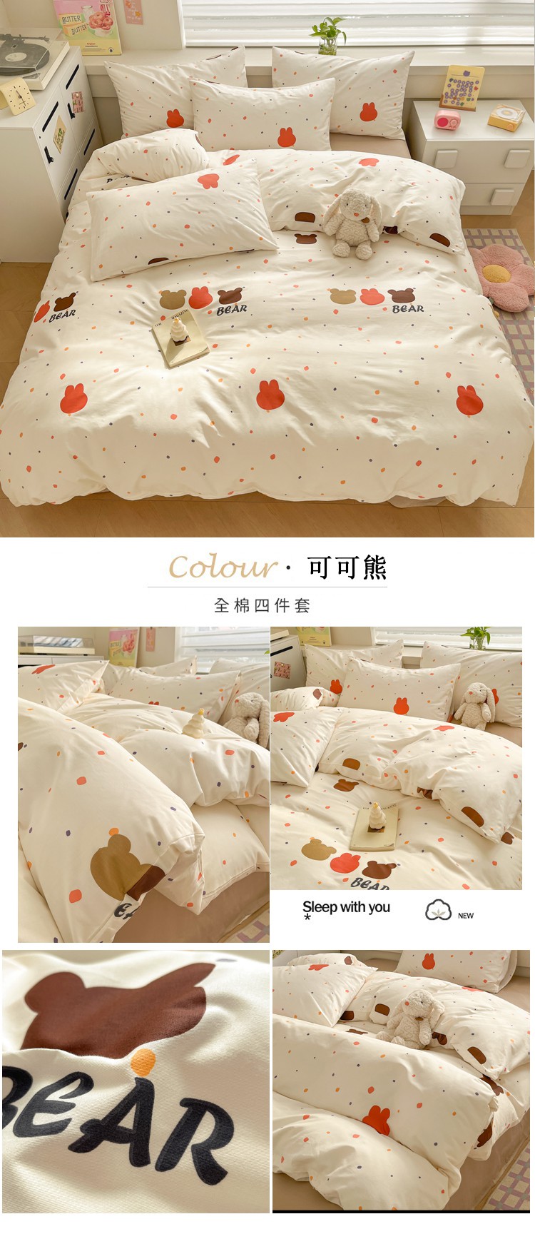 当前位置: 91家纺网 > 商品网购 > 床品套件 > 四件套 > 全棉普通四件套 > 柠馨 2024新款全棉13376乖萌系列四件套(第六批) 可可熊