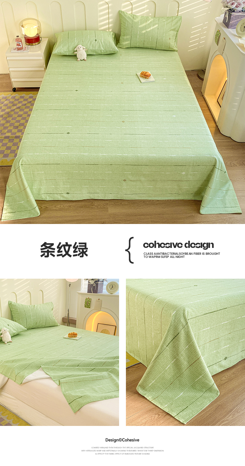 • 91家纺网 家纺一手货源 找家纺 寐眠 2024新款全棉老粗布印花床单床盖 条纹绿