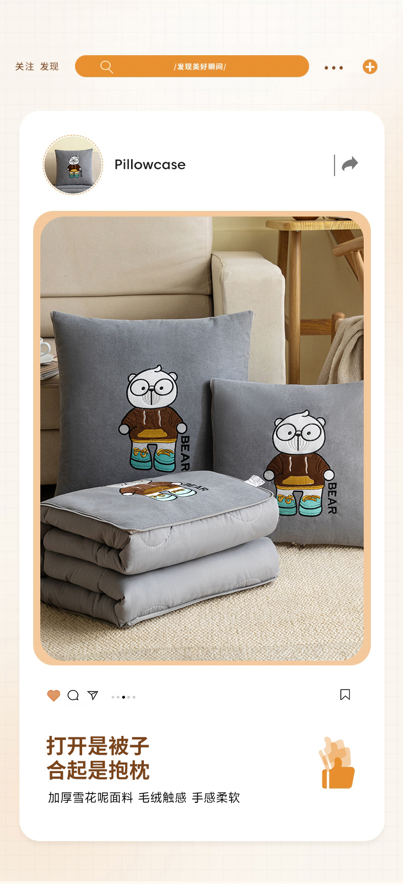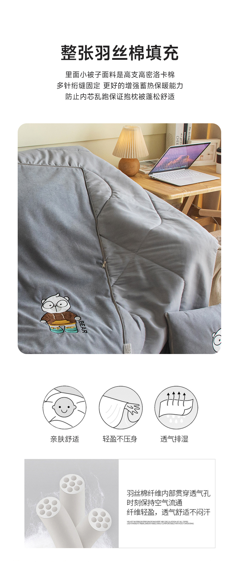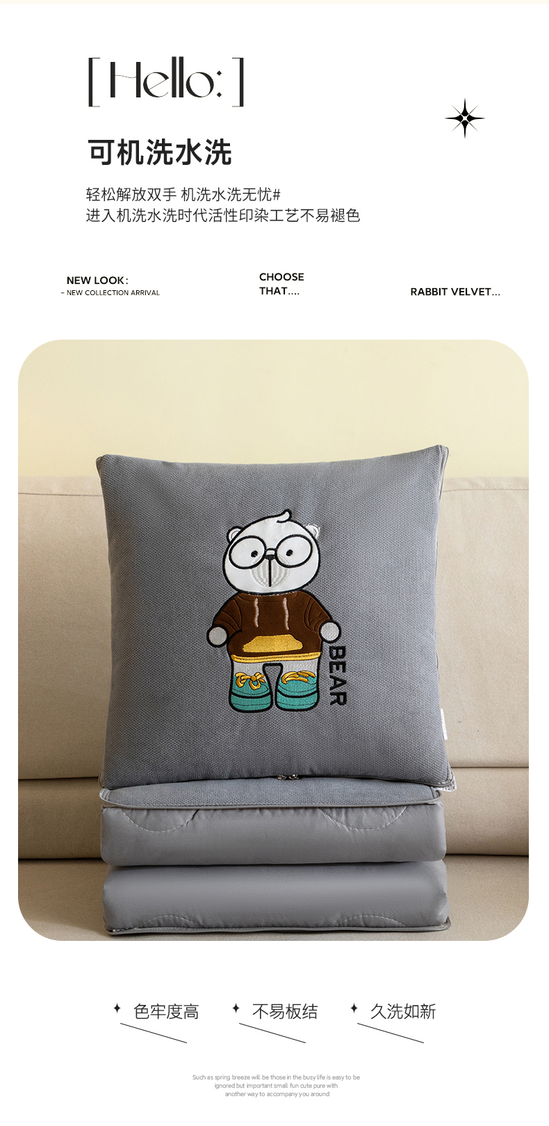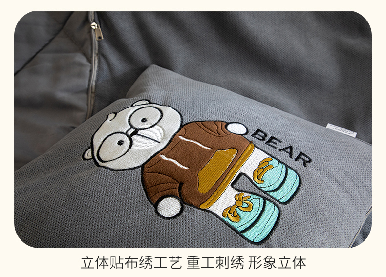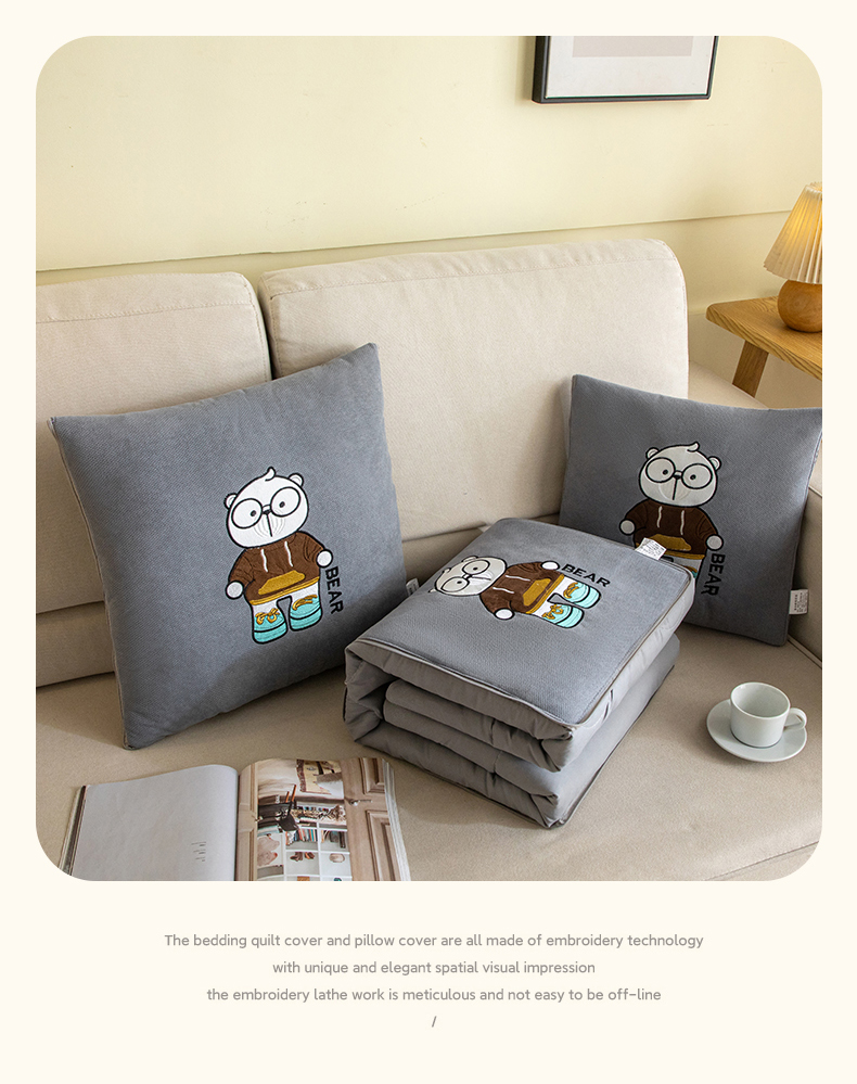 商品名称:铭宣家居 2024新款加厚雪花呢贴布绣多功能抱枕被-熊博士 熊博士-高级灰