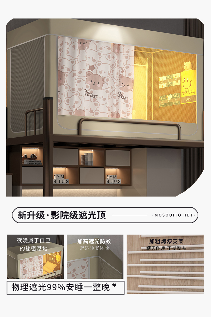 当前位置: 91家纺网 > 商品网购 > 床上用品 > 蚊帐 > 学生蚊帐 > 宅部落 2024新款99%全遮光涂层学生上下铺蚊帐 印花-酷熊