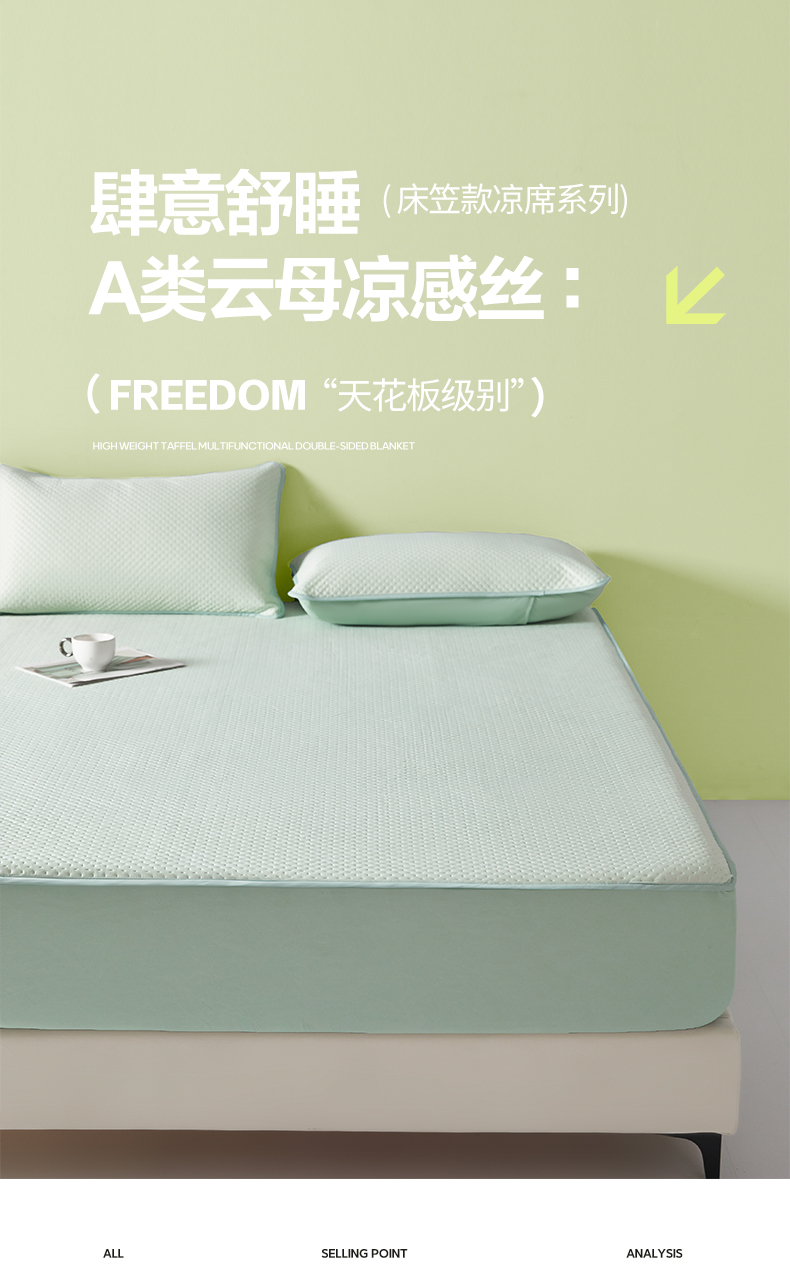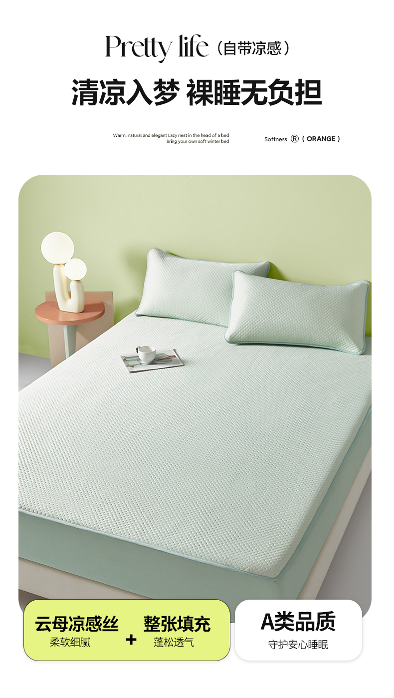 商品名称:莱登卡奴 2025新款A类云母凉感丝系列-床笠款凉席 水绿