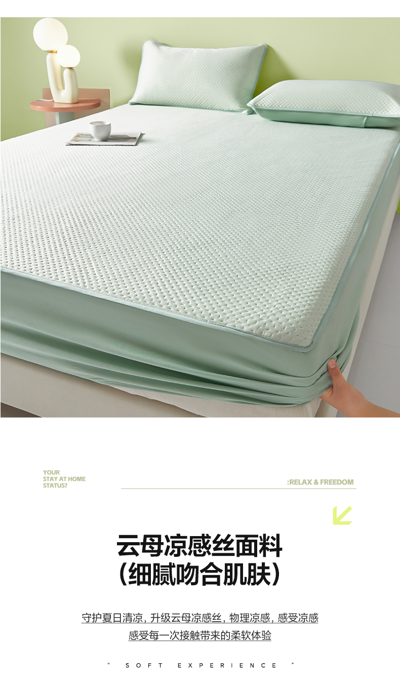 莱登卡奴 2025新款A类云母凉感丝系列-床笠款凉席 水绿