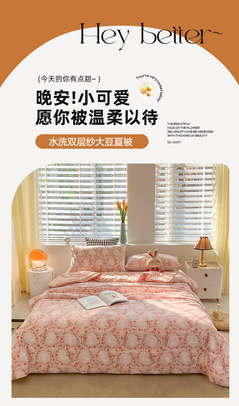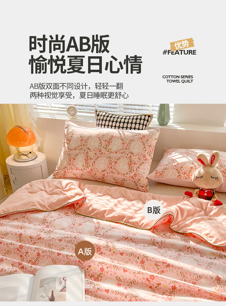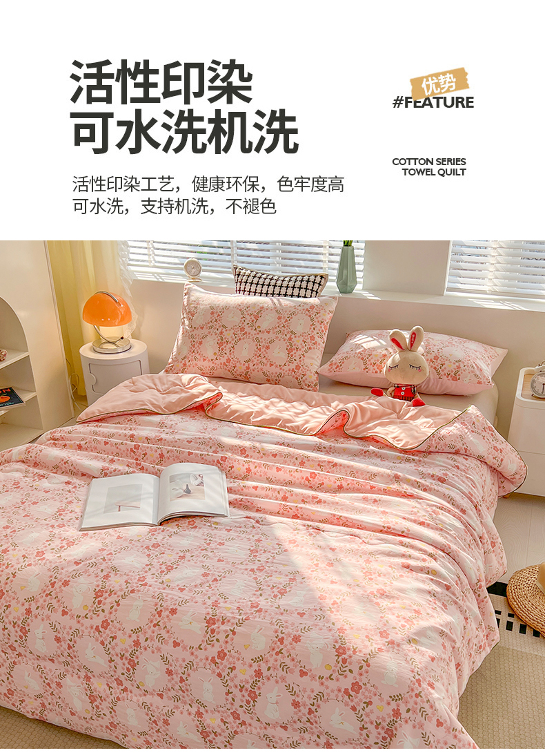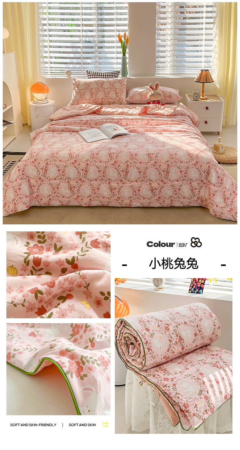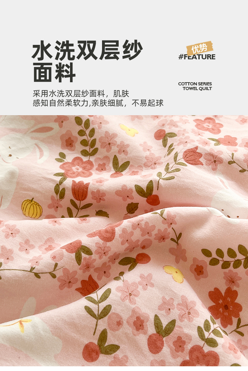 商品名称:艺菲阁家纺 2024新款大豆蛋白水洗双层纱夏被 小桃兔兔