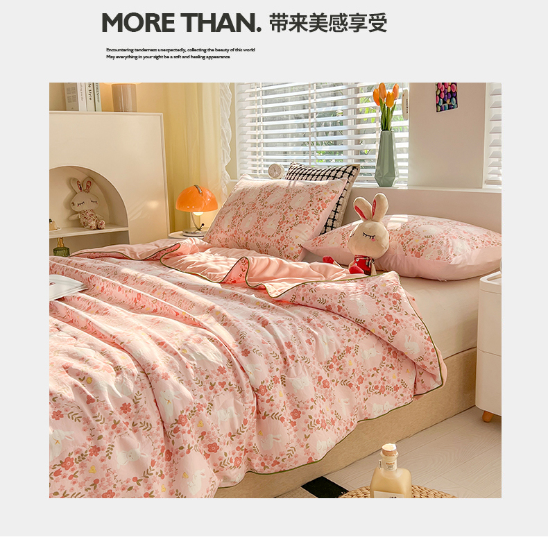 艺菲阁家纺 2024新款大豆蛋白水洗双层纱夏被 小桃兔兔