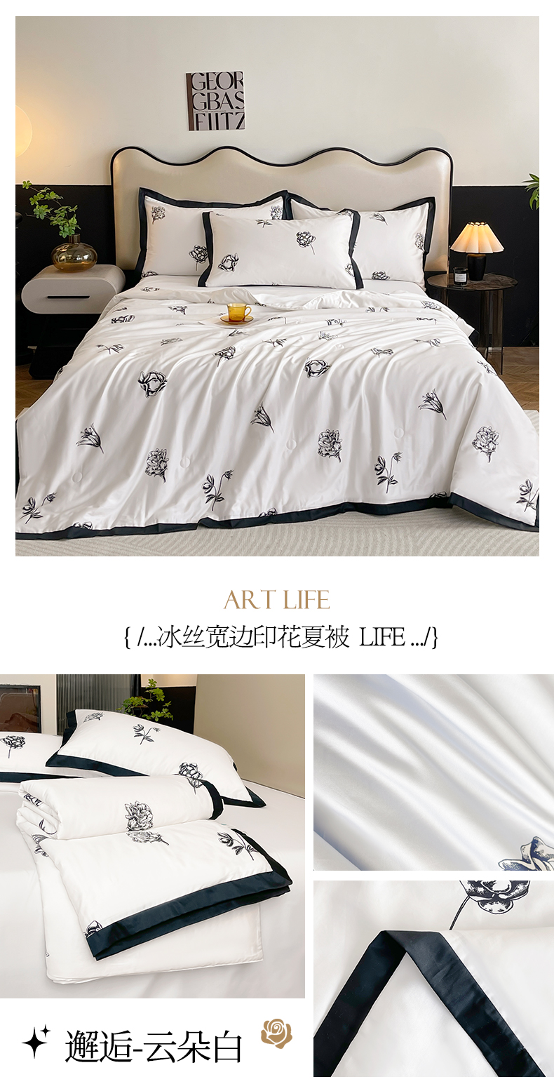 商品名称:金麦家纺 2024新款冰丝宽边印花夏被子被芯-邂逅系列 邂逅-云朵白