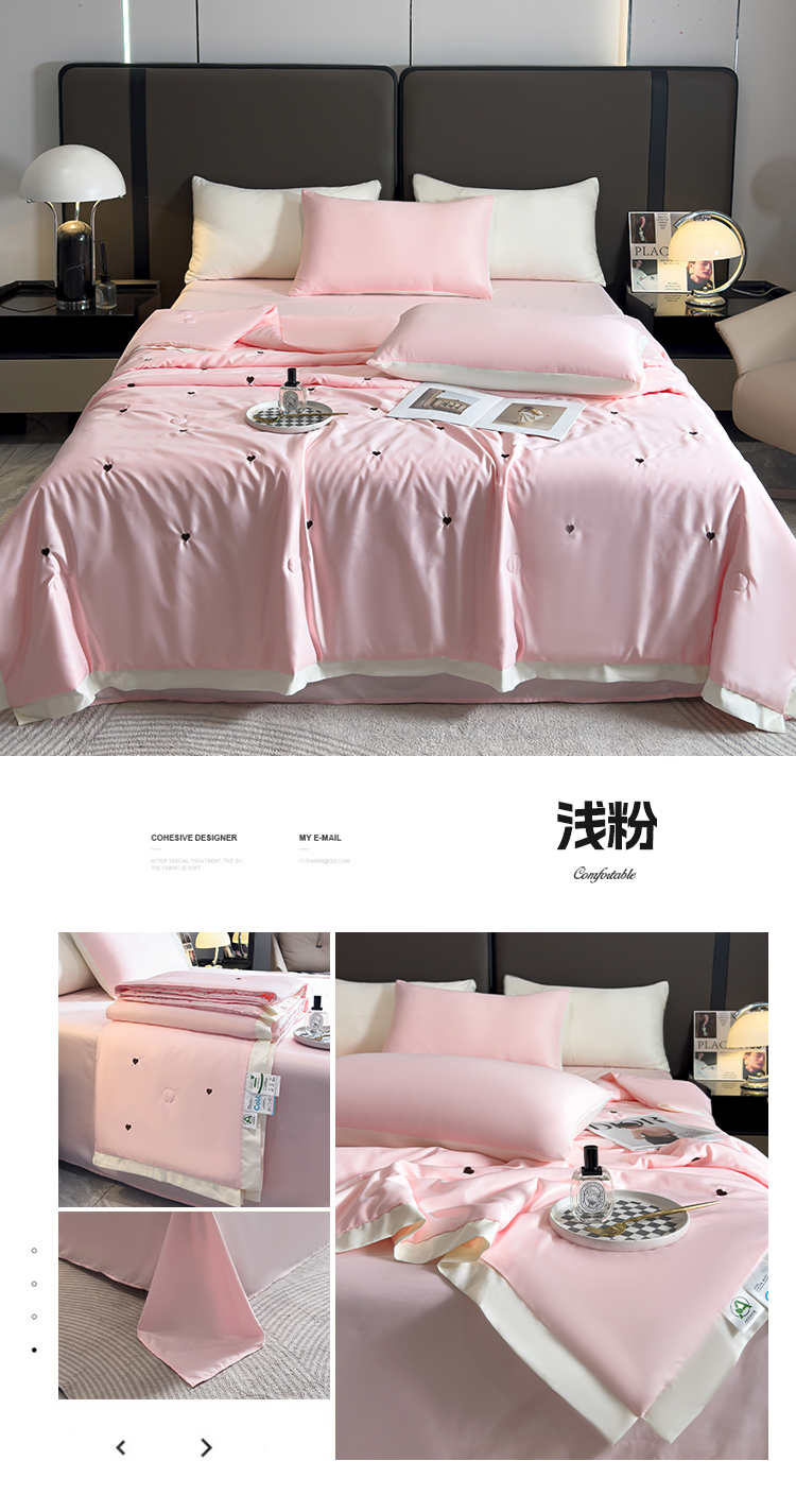 (总)典冠 2024爆款天丝刺绣漫天爱心工艺款大豆夏被四件套空调被夏凉被,淡绿,淡紫,湖蓝,米黄,浅粉,浅灰