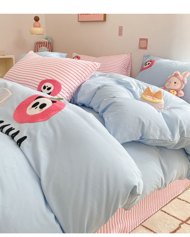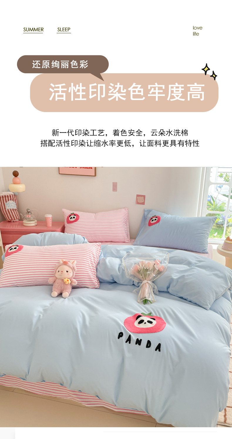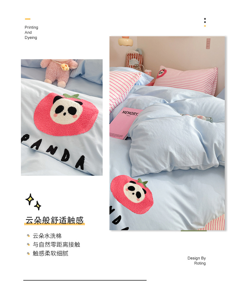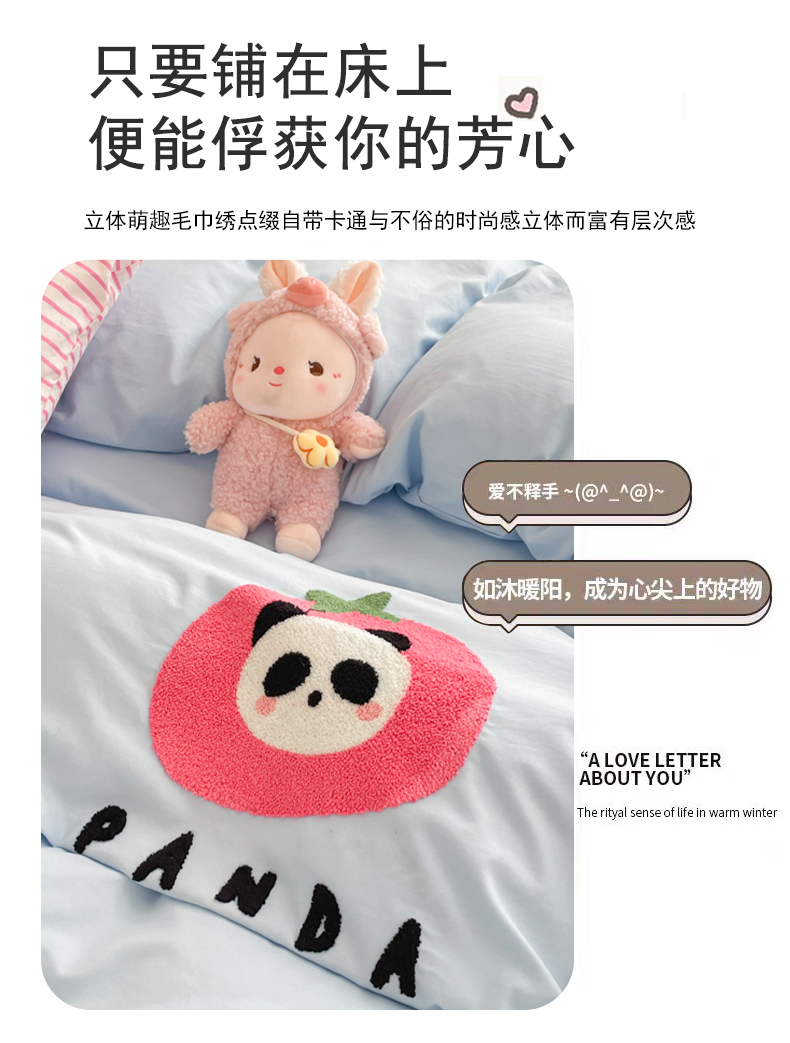 当前位置: 91家纺网 > 商品网购 > 床品套件 > 四件套 > 毛巾绣四件套 > 葡萄家纺 2024款水果熊猫系列云朵水洗棉毛巾绣四件套第二批(提供买家秀) 草莓圣代-蓝