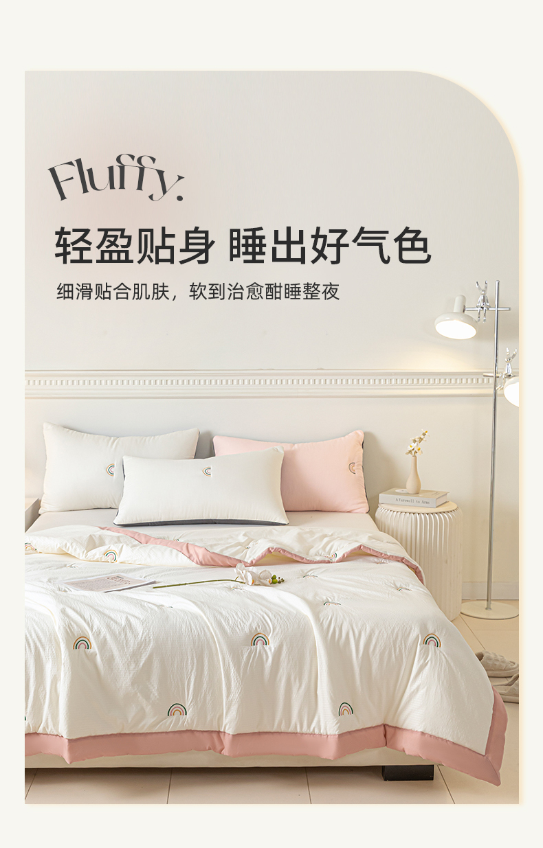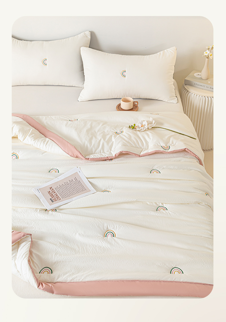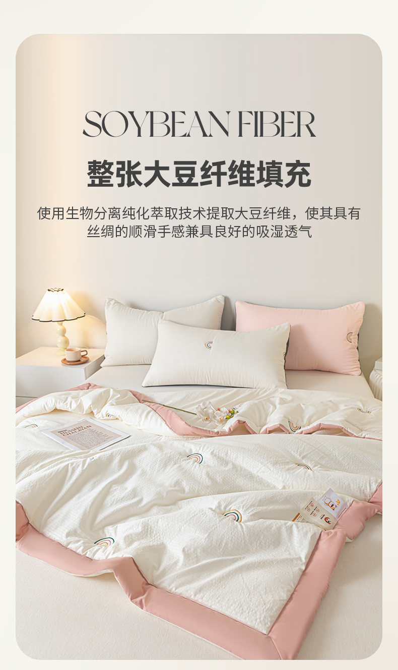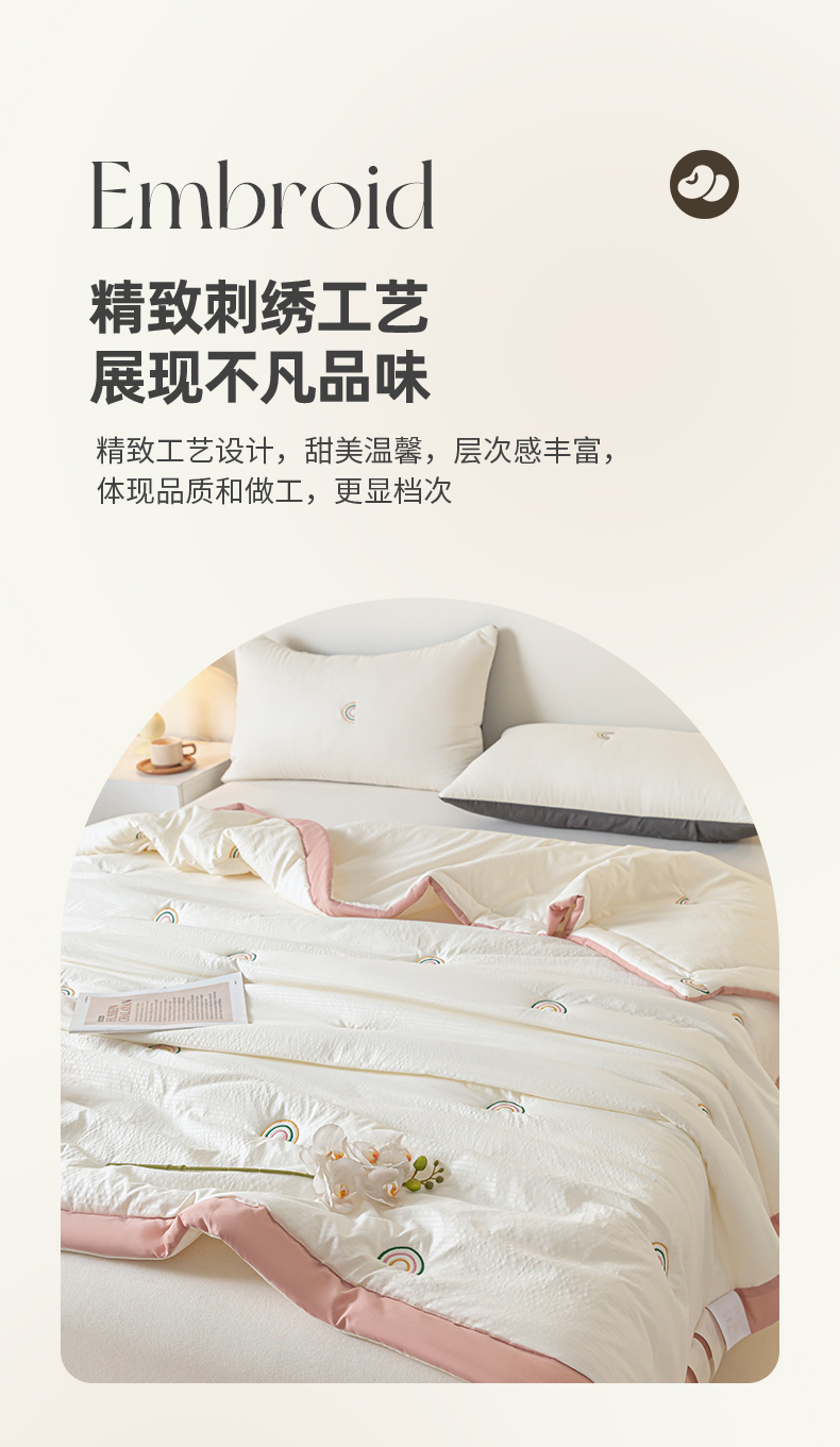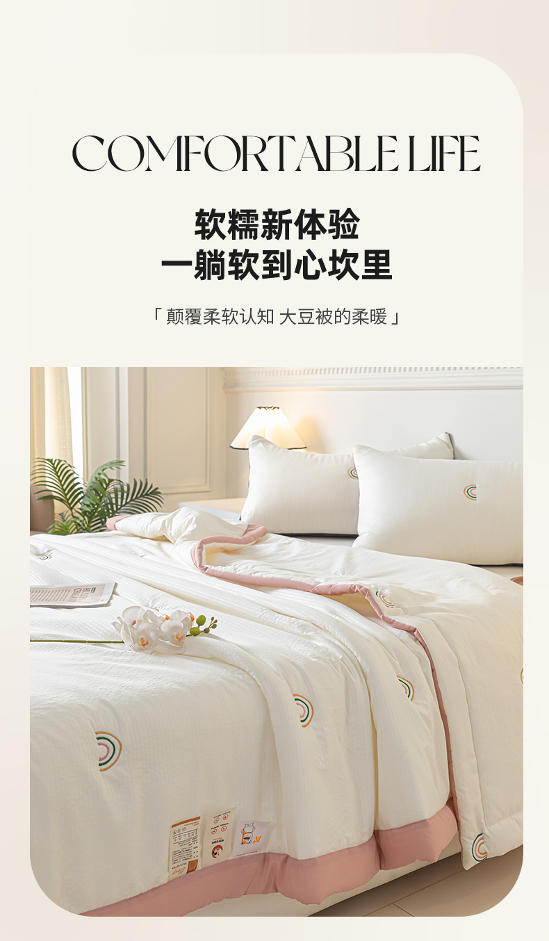 商品名称:梦初语 2024新款刺绣小竺棉大豆夏被 彩虹-米