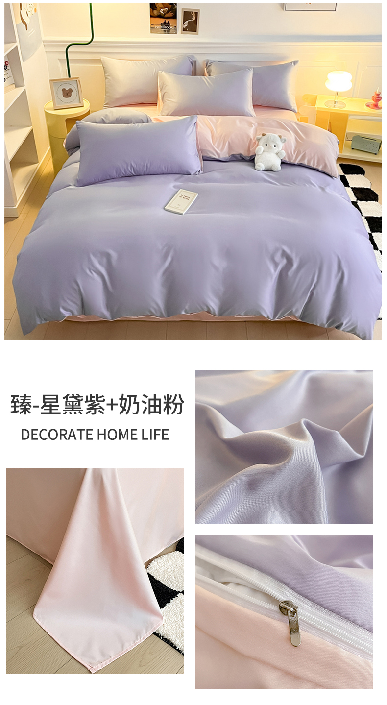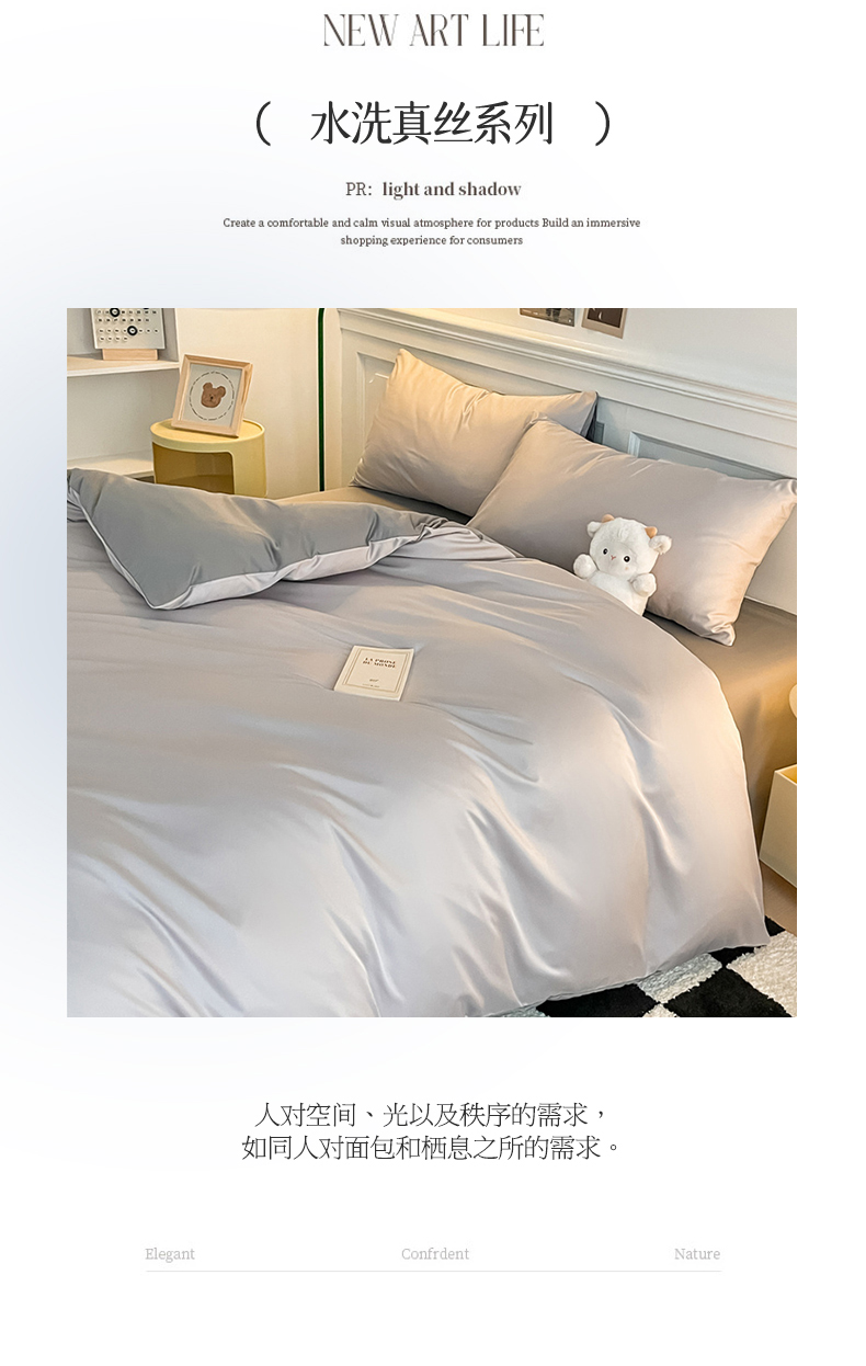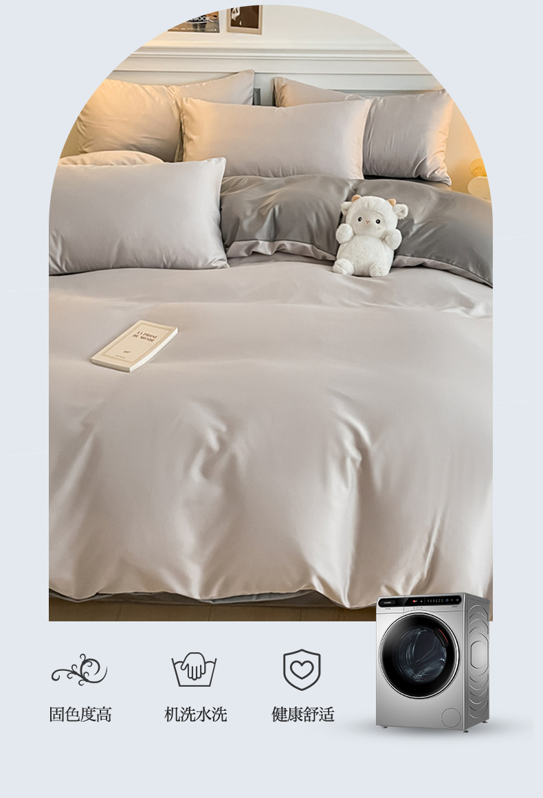 商品名称:(总)古吉梦 2024新款水洗真丝纯色双拼四件套-臻系列