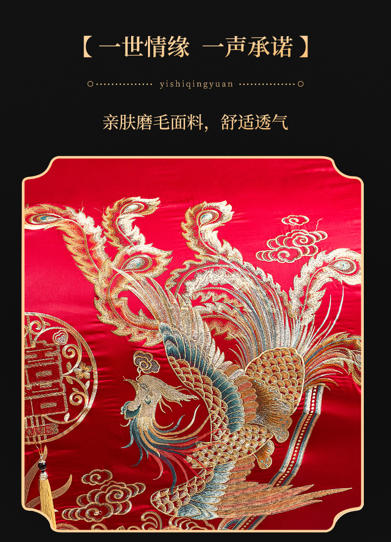 当前位置: 91家纺网 > 商品网购 > 床品套件 > 四件套 > 婚庆四件套 > 慕她家纺 2025新款磨毛婚庆四件套结婚刺绣花床品六喜庆 龙凤情缘