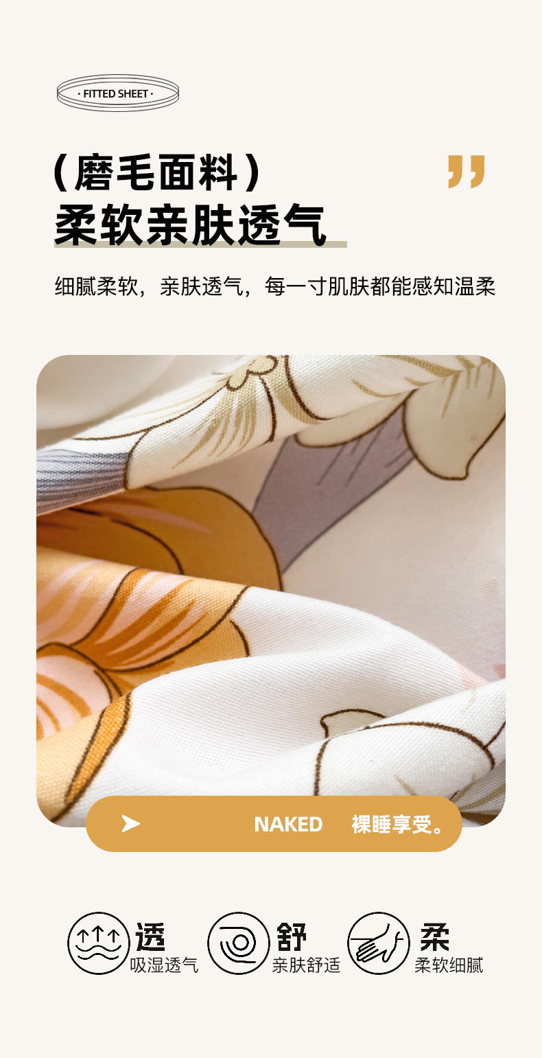 商品名称:好亿来家纺 2025新款亲肤磨毛单层床笠 微微花语