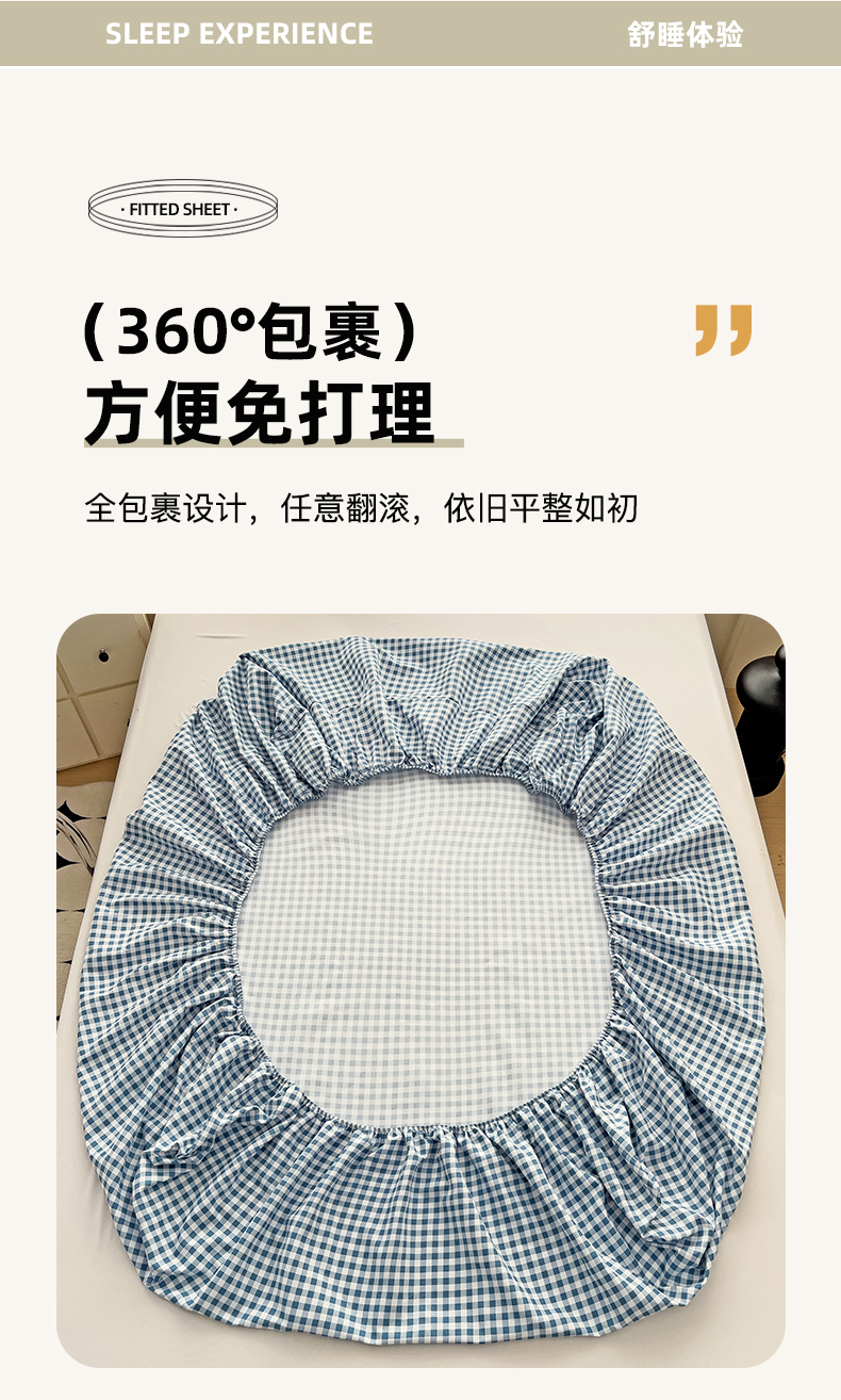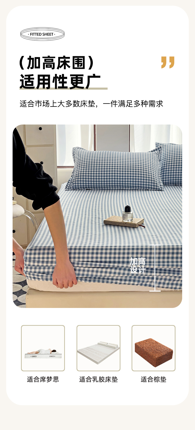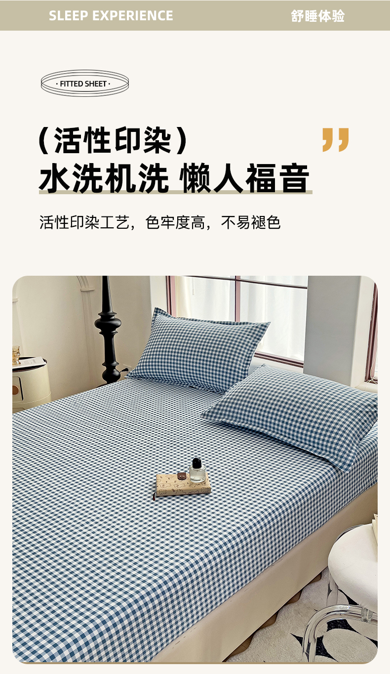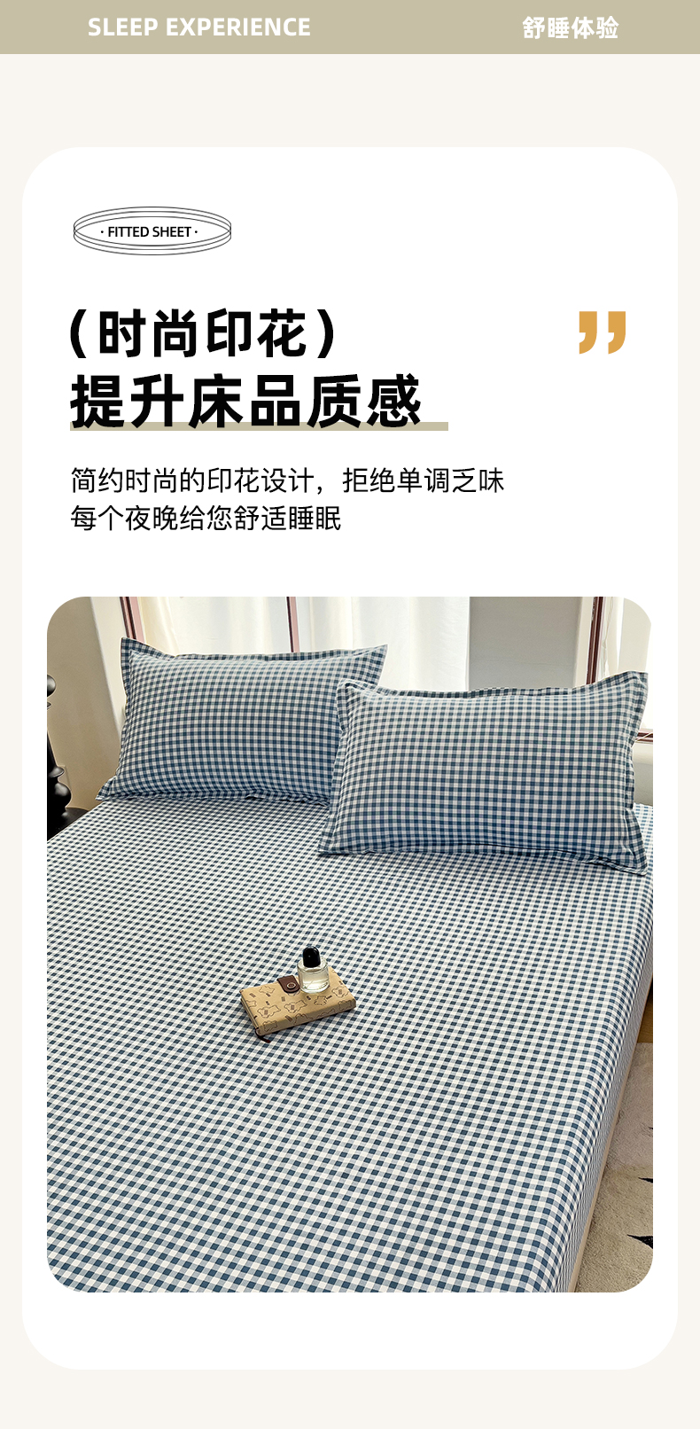 商品名称:好亿来家纺 2025新款亲肤磨毛单层床笠 蓝灰小格