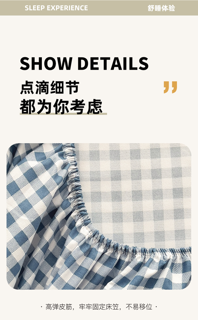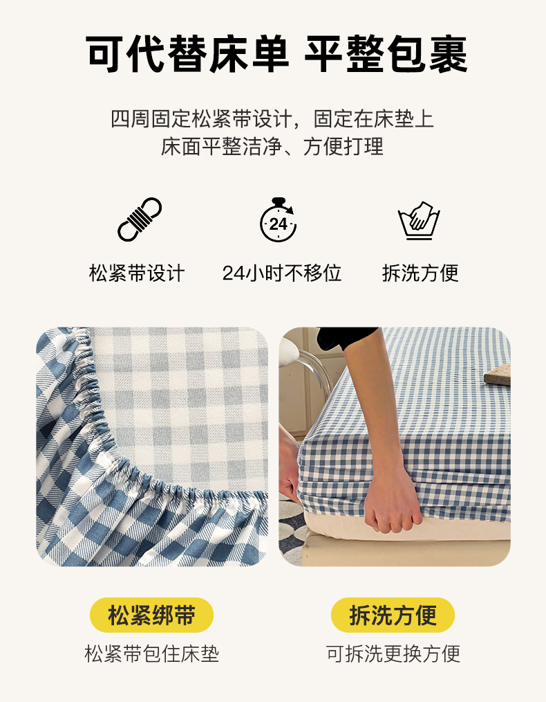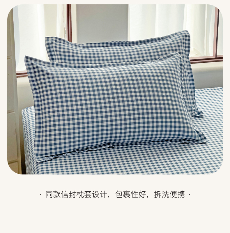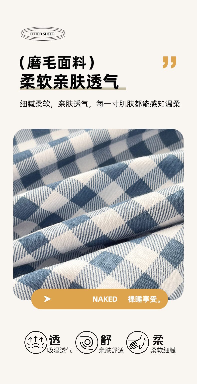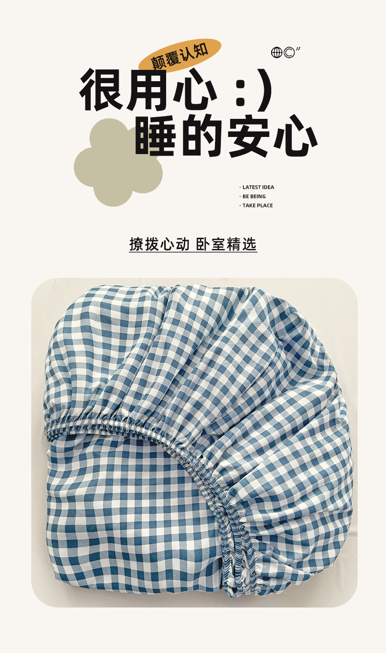 商品名称:好亿来家纺 2025新款亲肤磨毛单层床笠 蓝灰小格