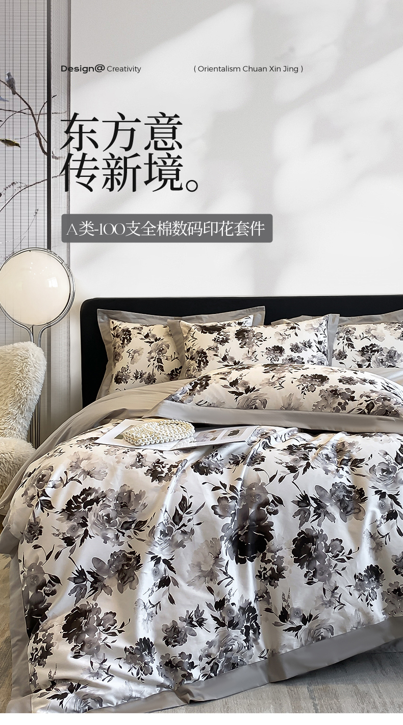 (总)蓝米卡夫 2025秋冬-A类棉麻全棉数码印花100支磨毛公主风系列(礼盒包装)【如需买家秀联系15996631948】 ,清逸花蝶,茶间萌兔,花间墨韵,幻彩雅韵,静雅花韵,雀语花枝