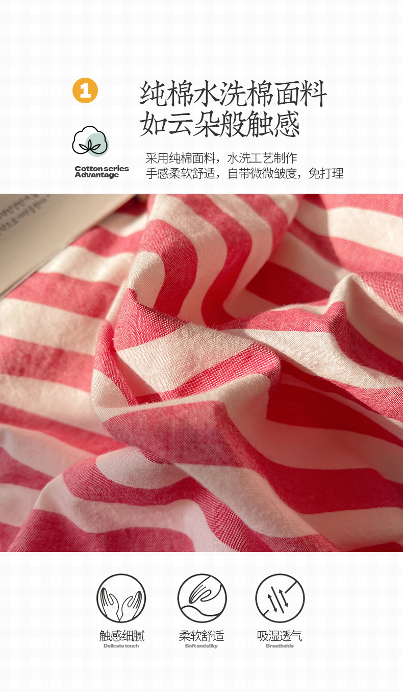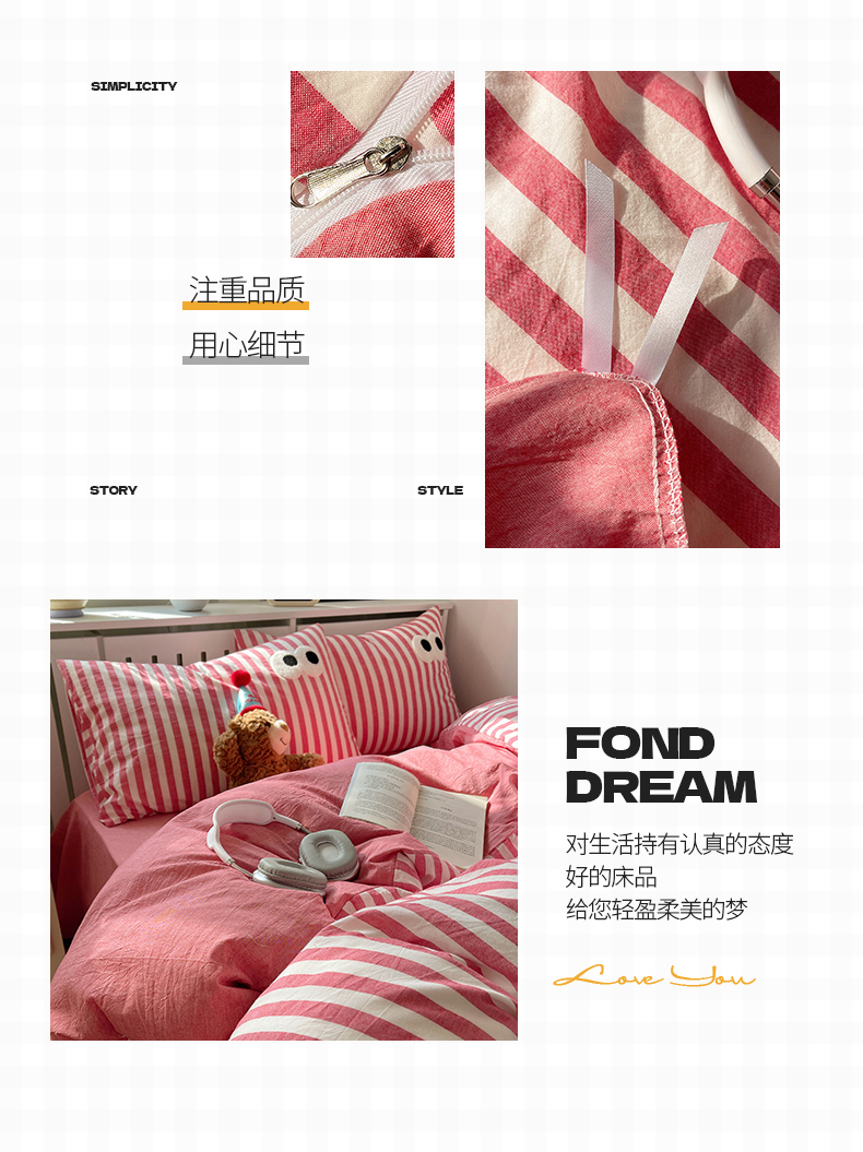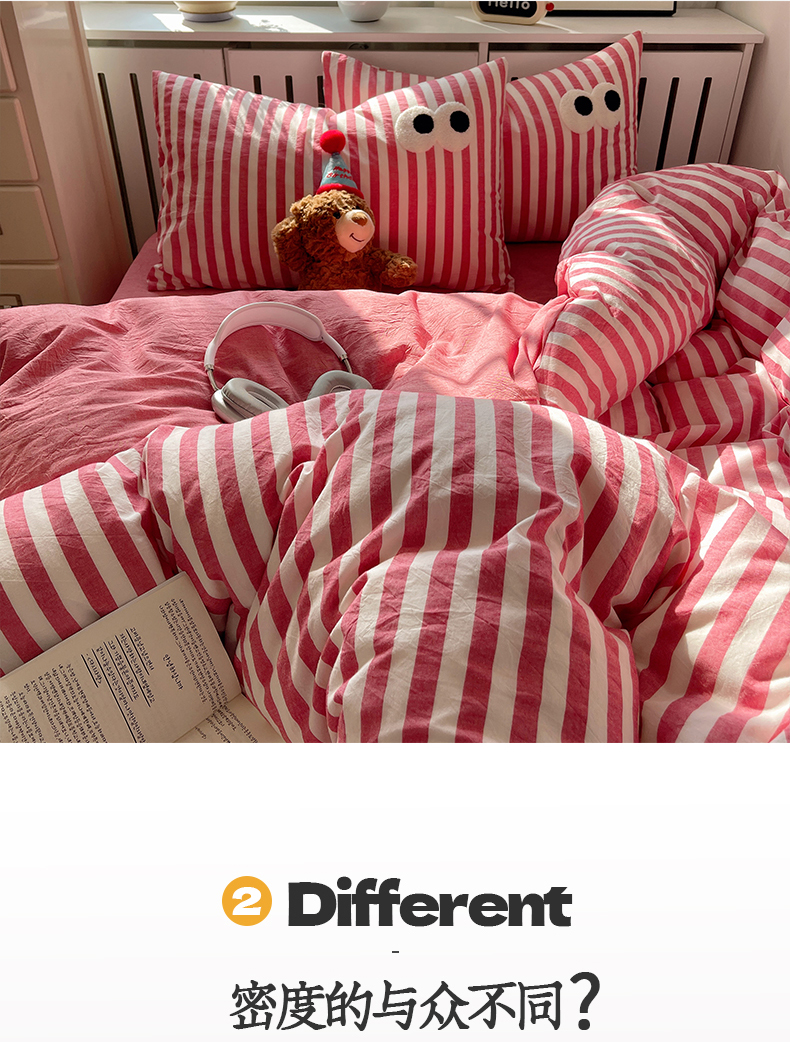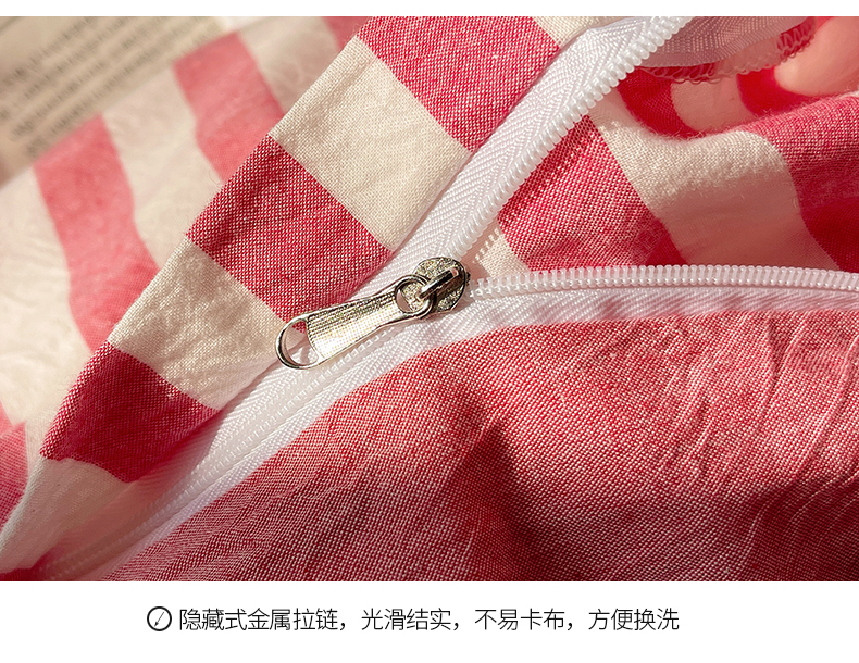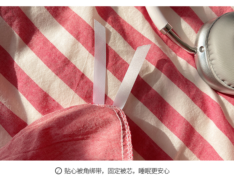 商品名称:桃子 2024新款ins大眼睛毛巾绣韩系奶油无印纯棉色织水洗棉少女宽宽条系列四件套 水洗棉-宽宽条酒红
