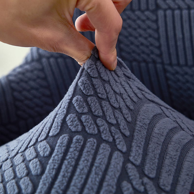 商品名称:共鸣沙发套 2024新款摇粒绒提花交织纹系列椅套(扶手款弧形椅套) 格纹-深灰