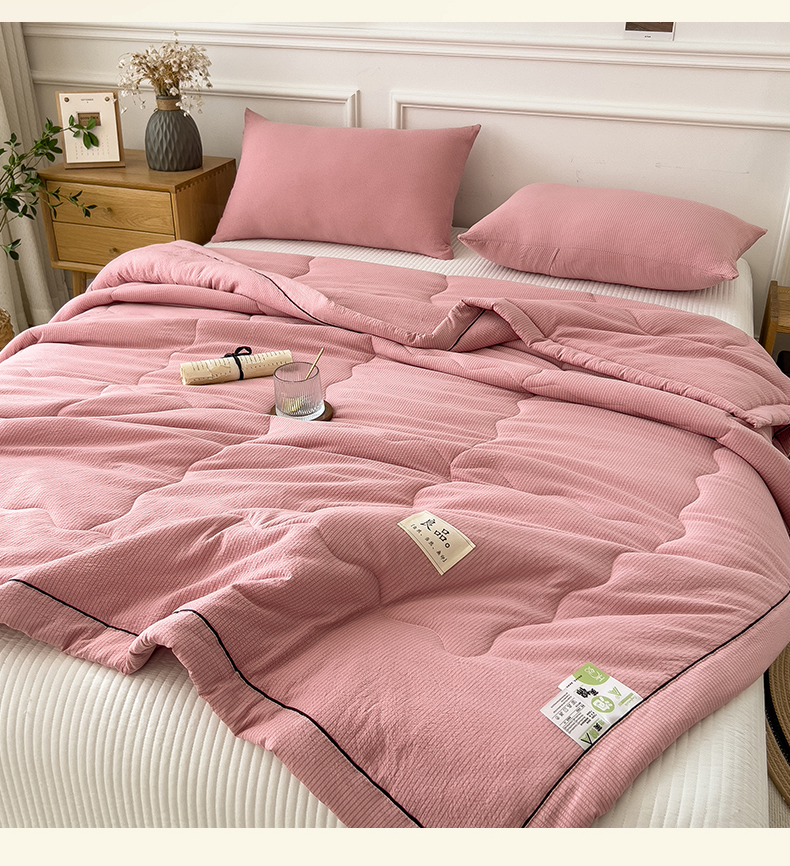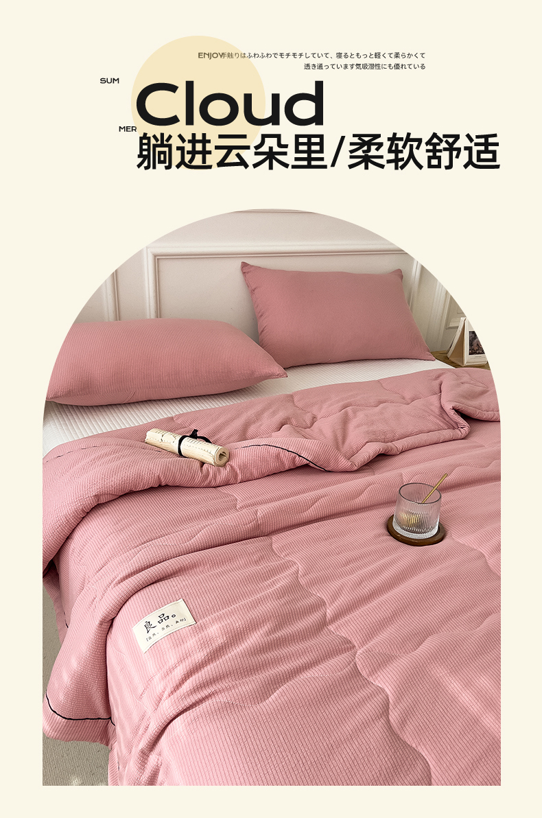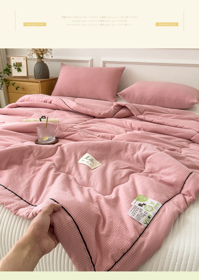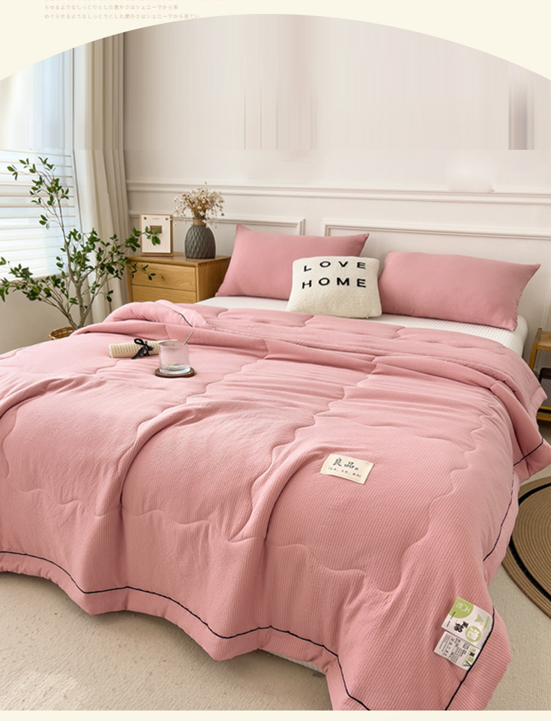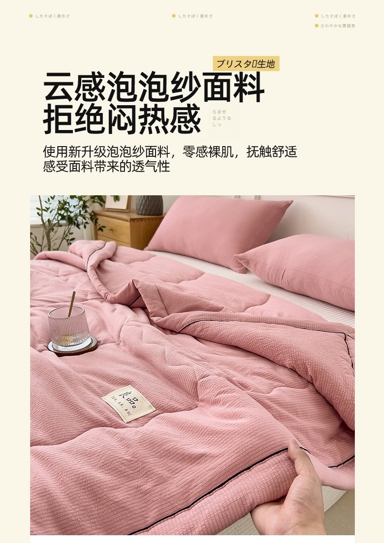 丝幔家纺 2025新款A类泡泡纱镶边款夏被 豆沙玉
