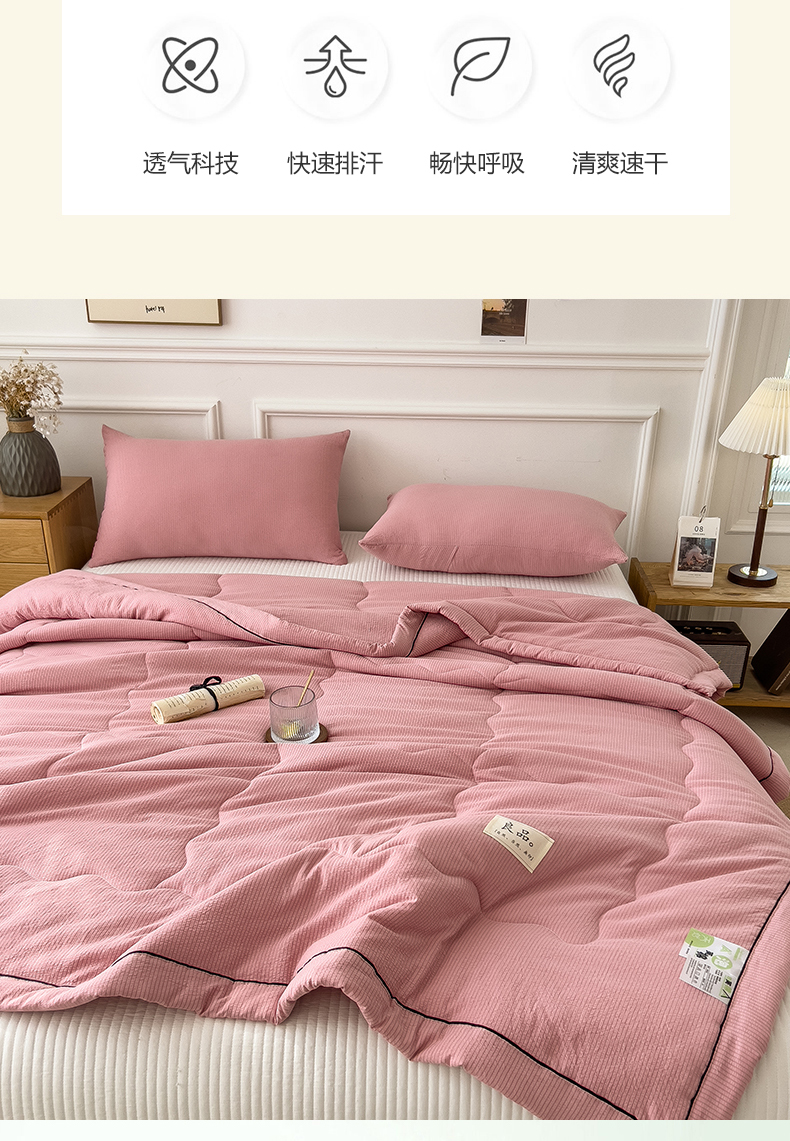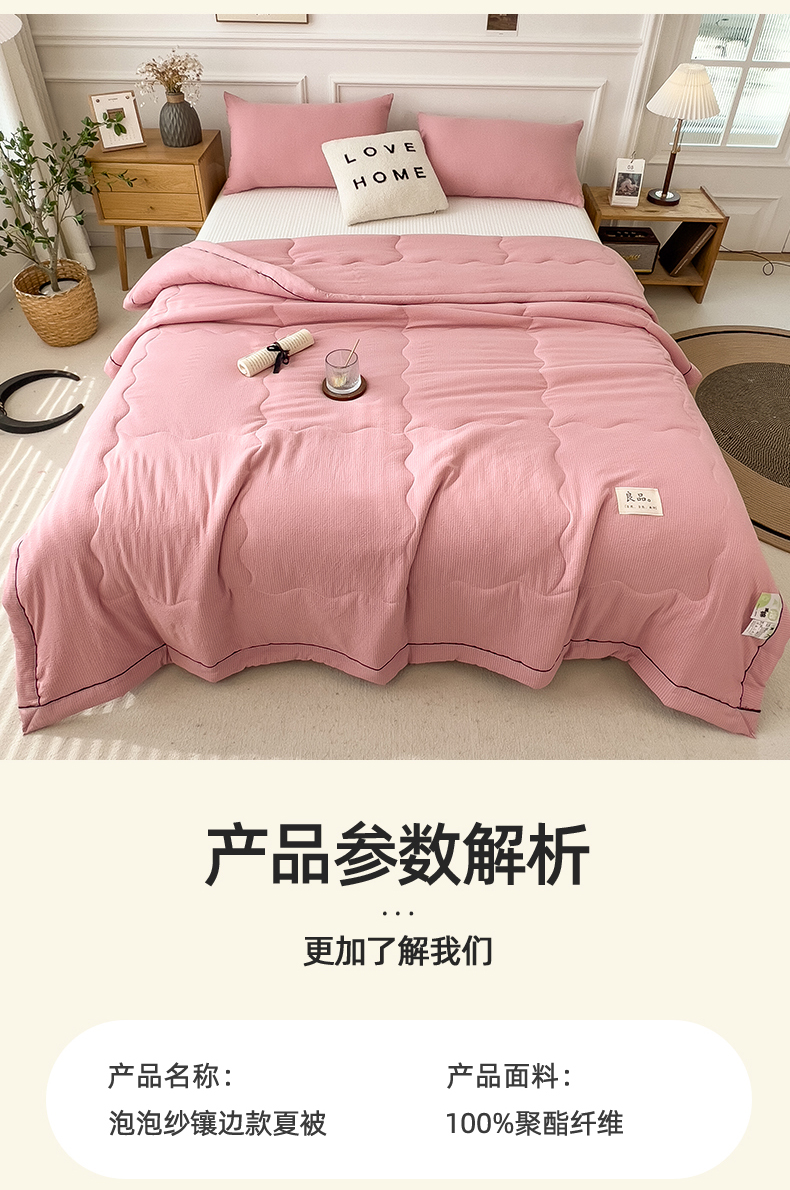 商品名称:丝幔家纺 2025新款A类泡泡纱镶边款夏被 豆沙玉