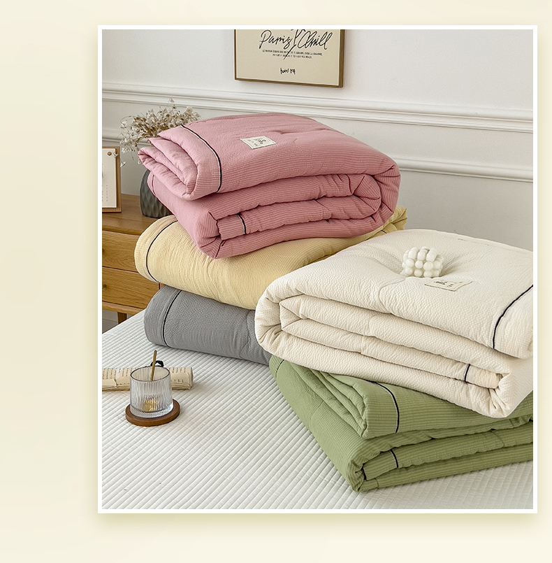 (总)丝幔家纺 2025新款A类泡泡纱镶边款夏被,薄荷蓝,豆沙玉,卡其,柠檬黄,牛油果绿,千黛紫,雾霾蓝,烟雨灰,珍珠白