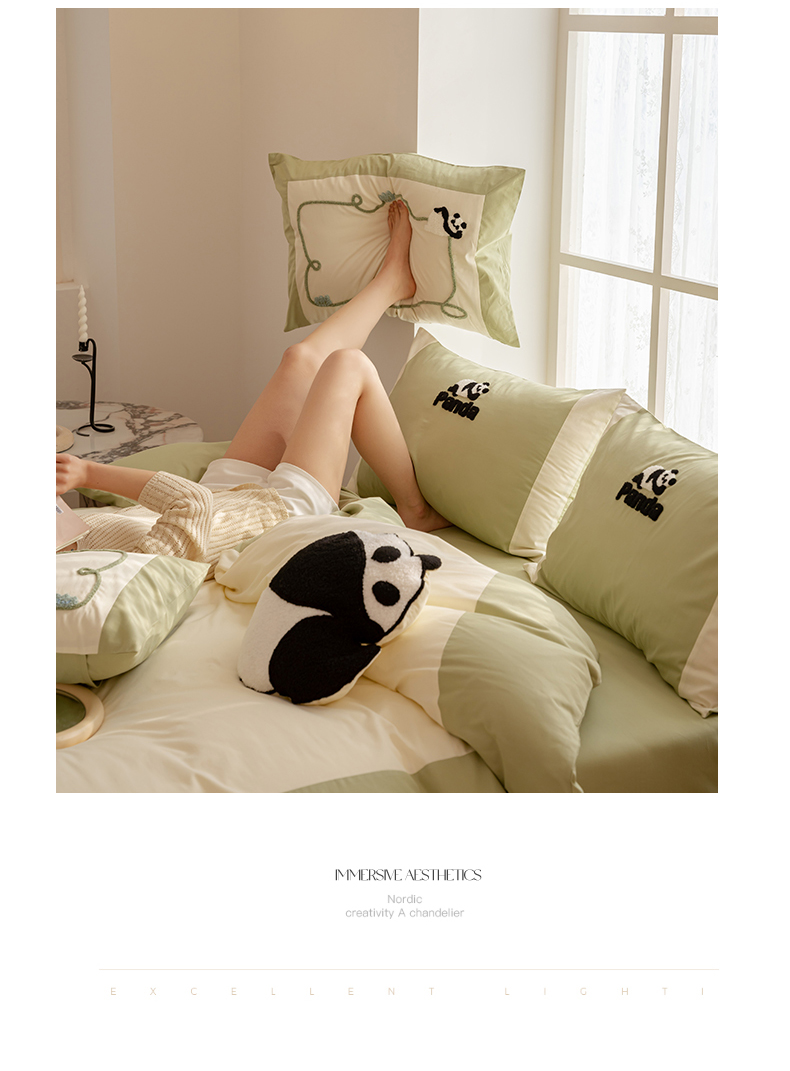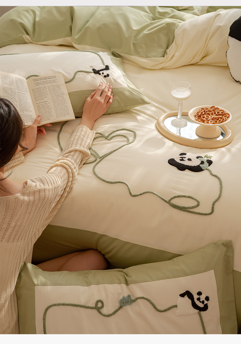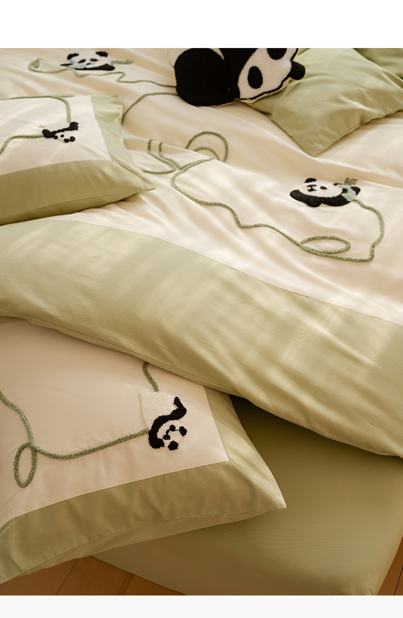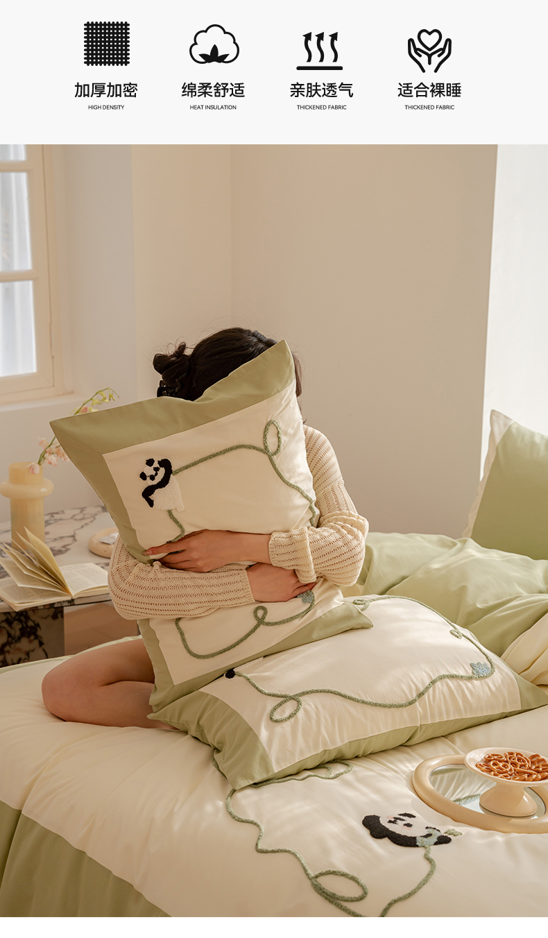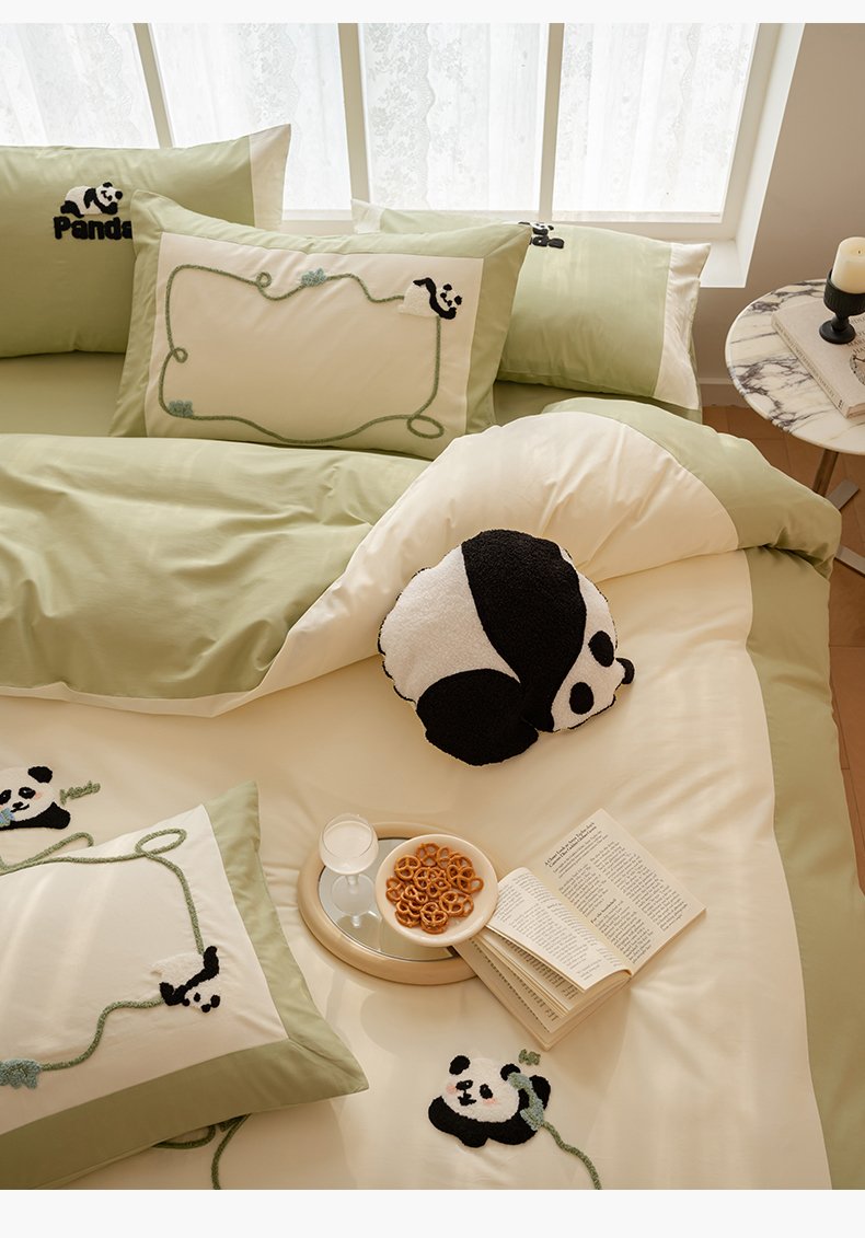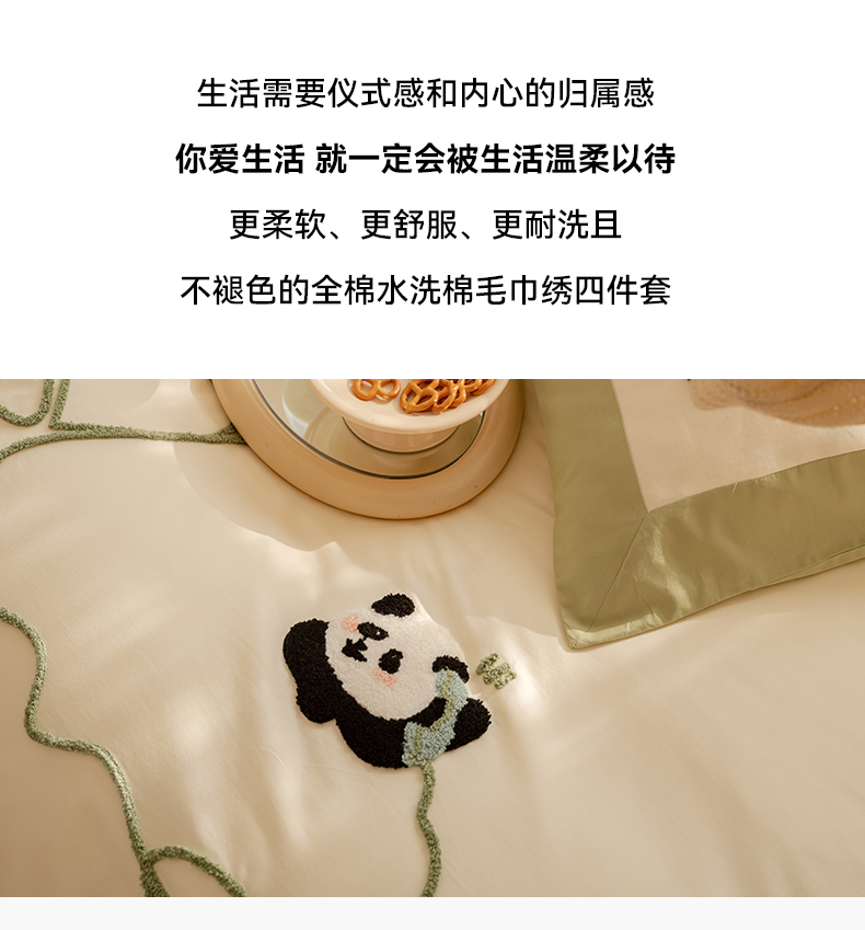 名品优仓 2023新款水洗棉毛巾绣撞边款式四件套-玫瑰熊 玫瑰熊猫,玫瑰熊猫