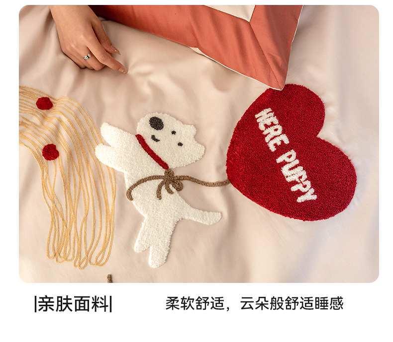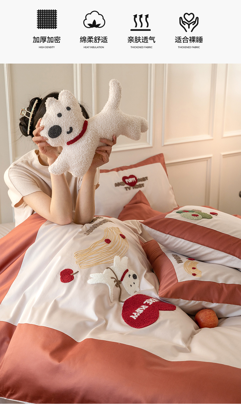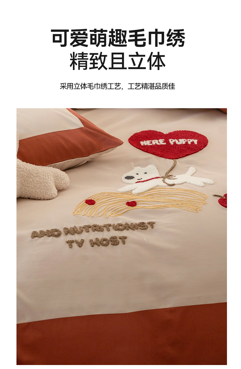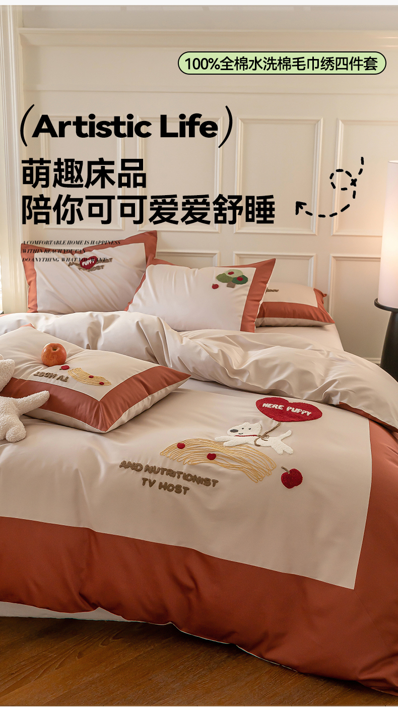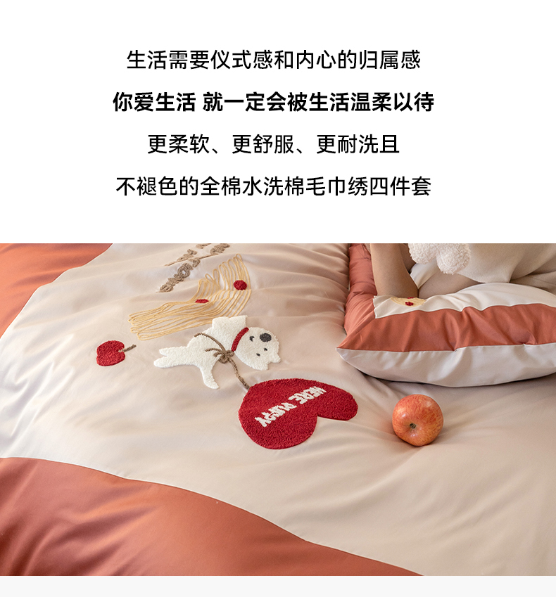 名品优仓 2023新款面包狗系列水洗棉毛巾绣四件套 面包狗,面包狗