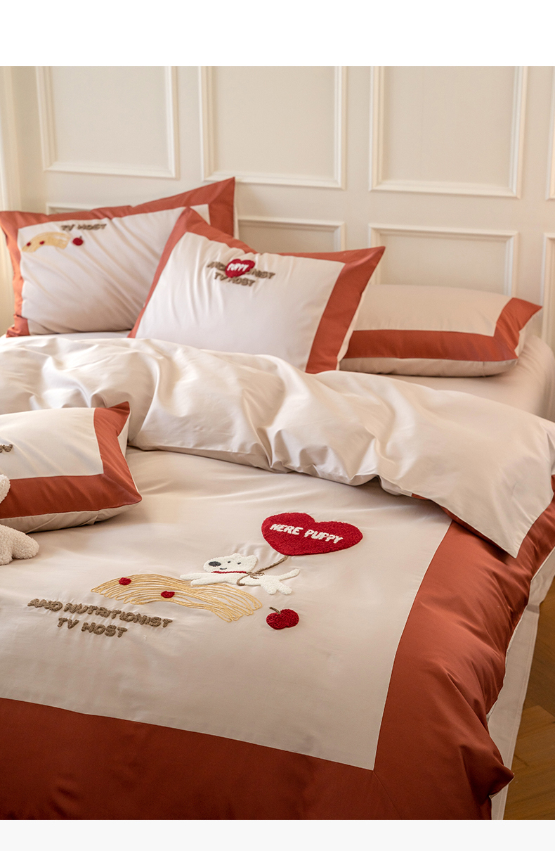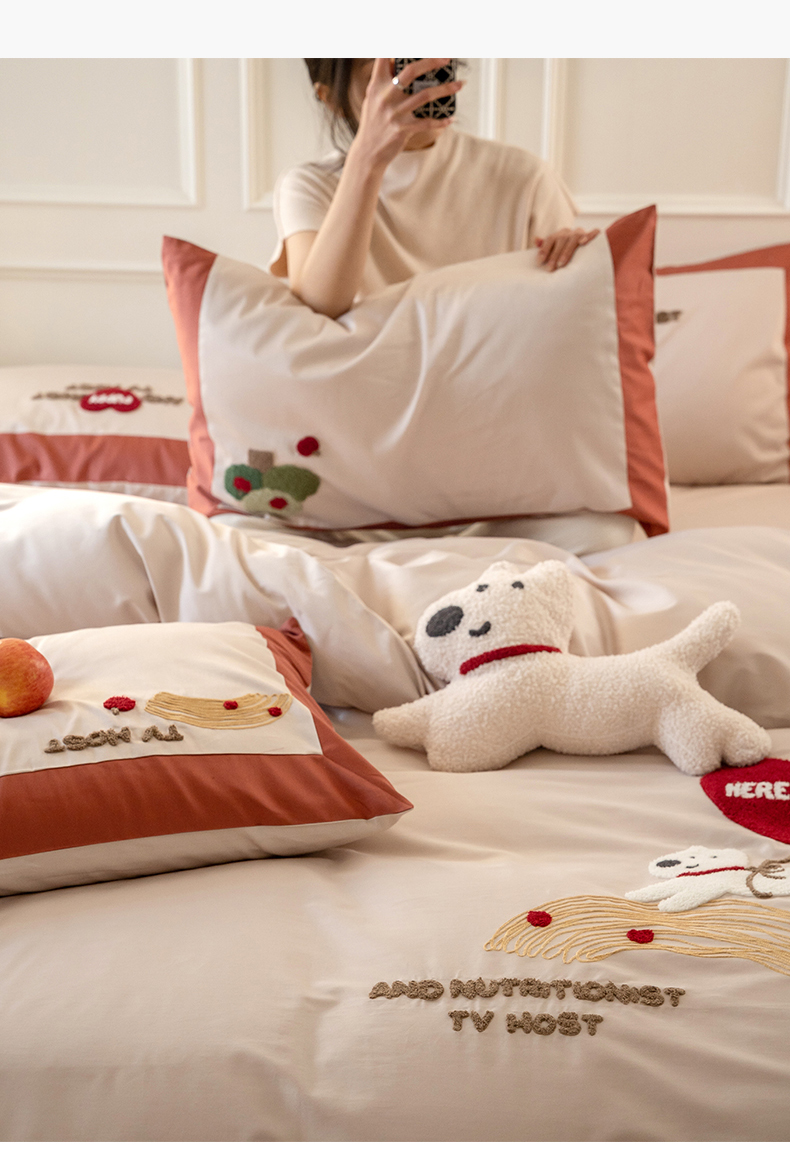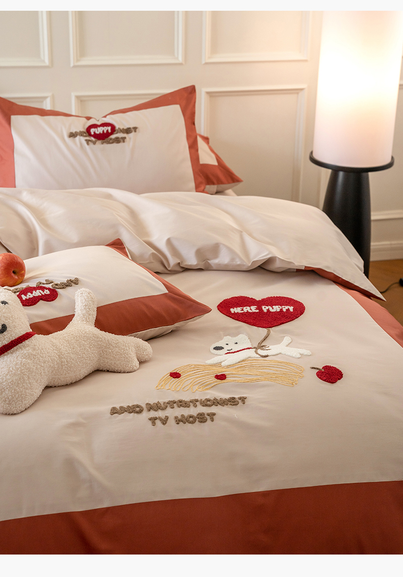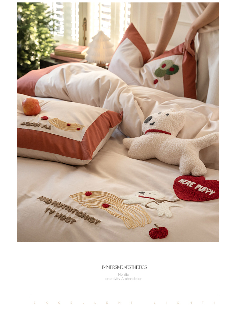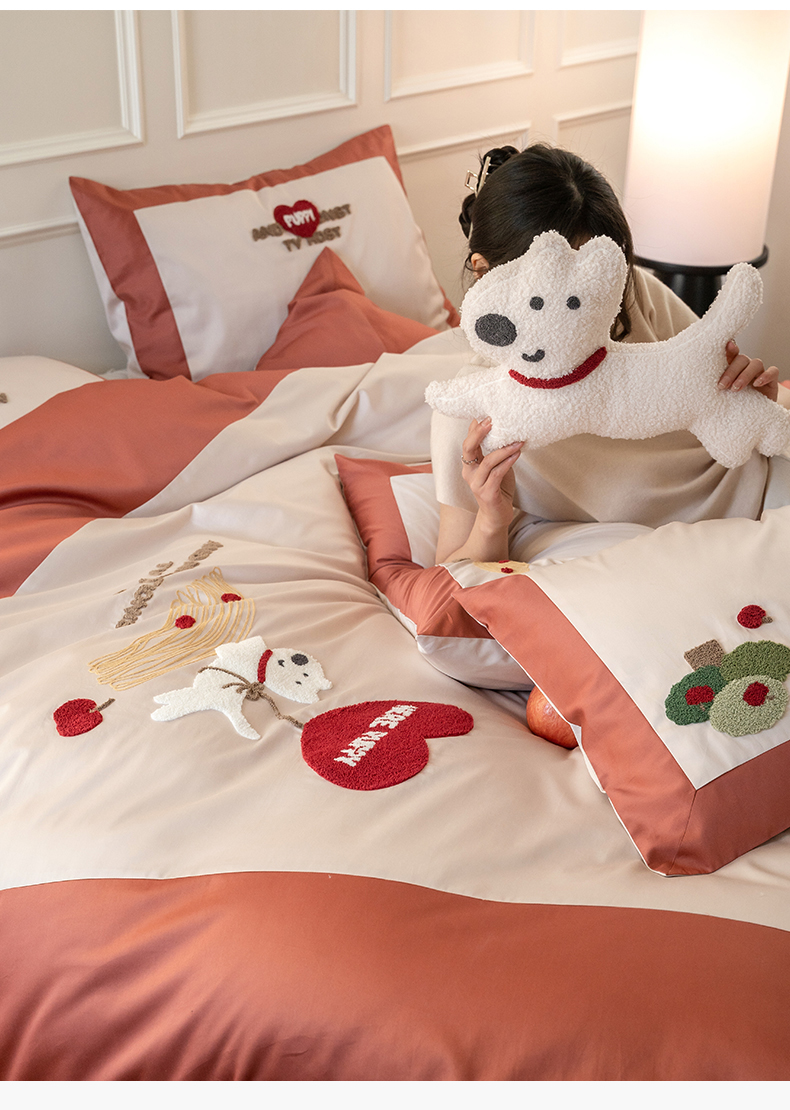 名品优仓 2023新款面包狗系列水洗棉毛巾绣四件套 面包狗,面包狗