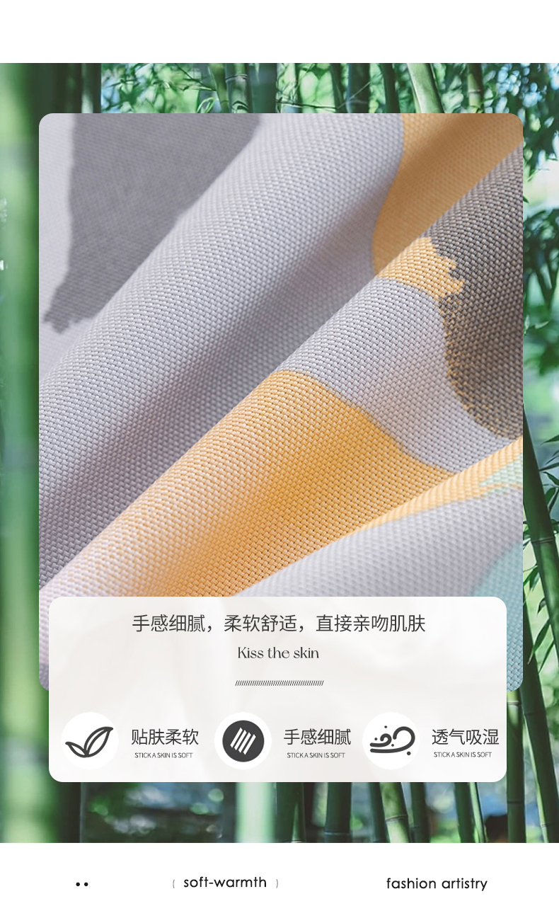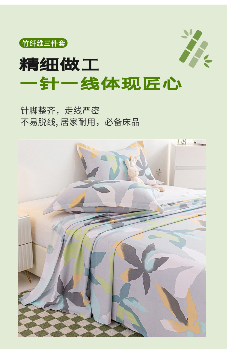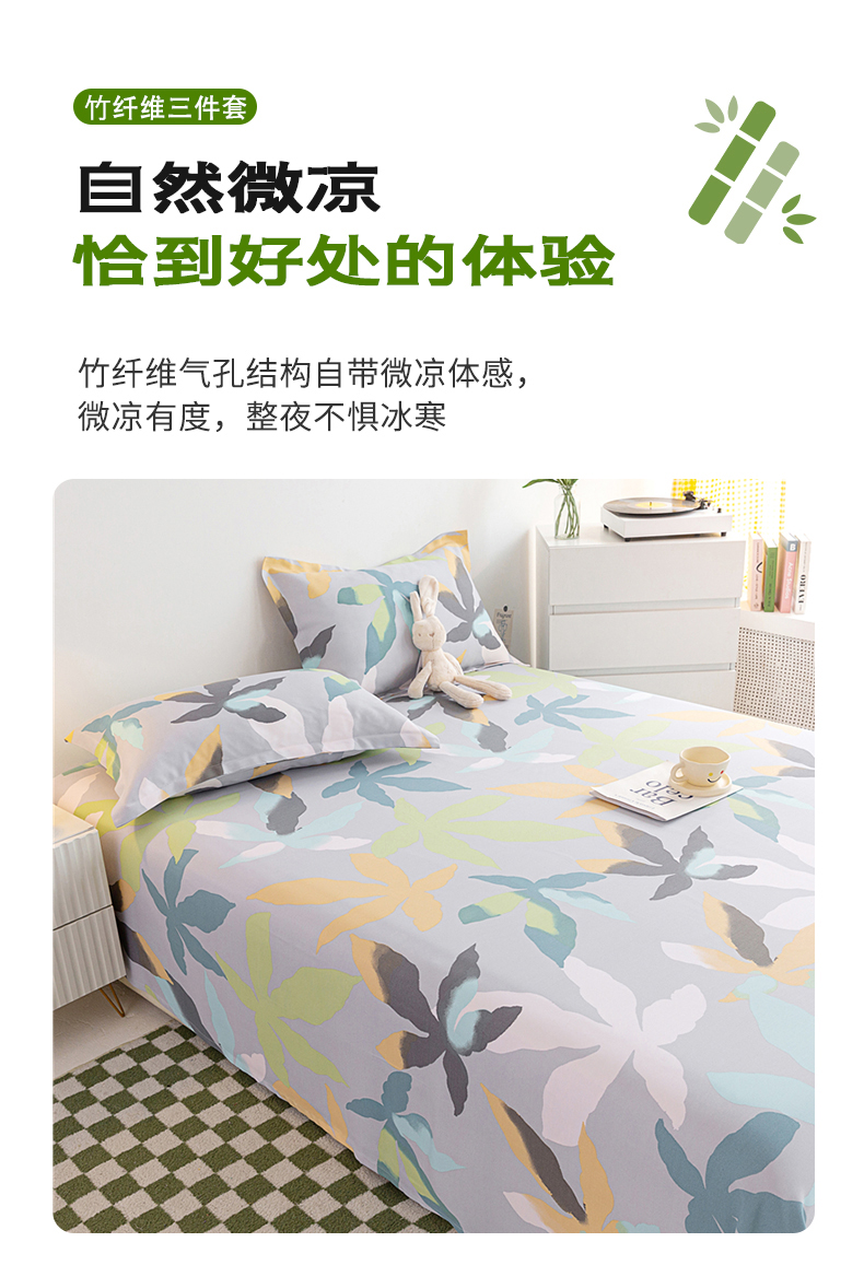 金泰莱 2025新款印花竹纤维凉席三件套软凉席竹席盖毯子 叶曼-灰