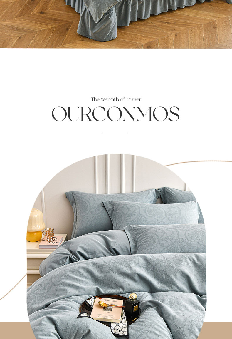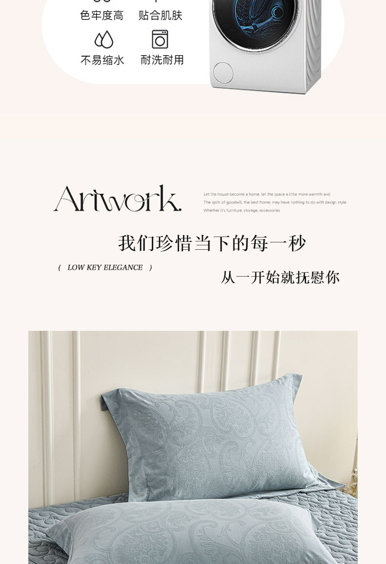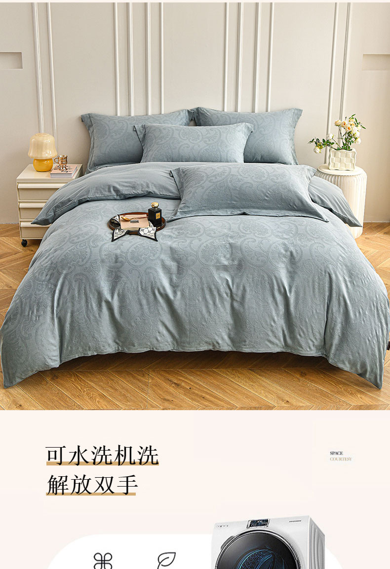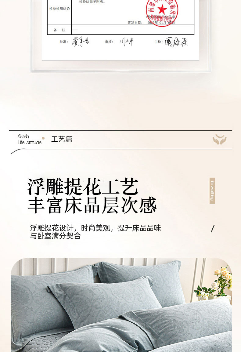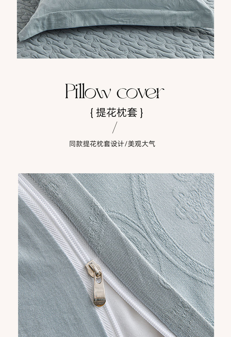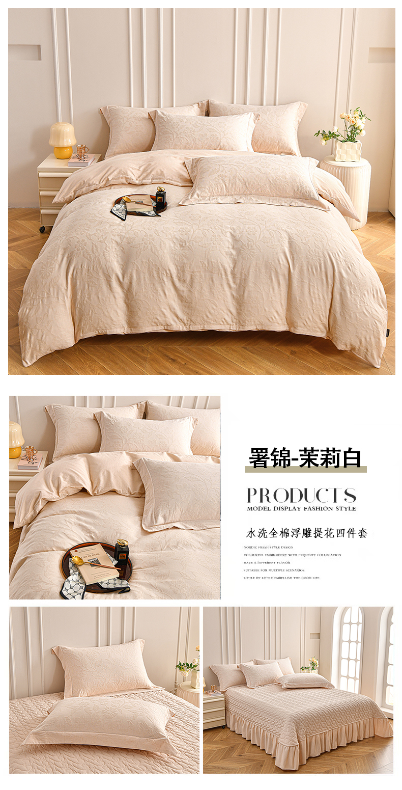 (总)金艾草 2024新款水洗全棉浮雕提花床盖四件套,圣罗纳-灰,片叶情-豆绿,罗曼-浅绿,蜀锦-茉莉白,轻颜-珊瑚粉