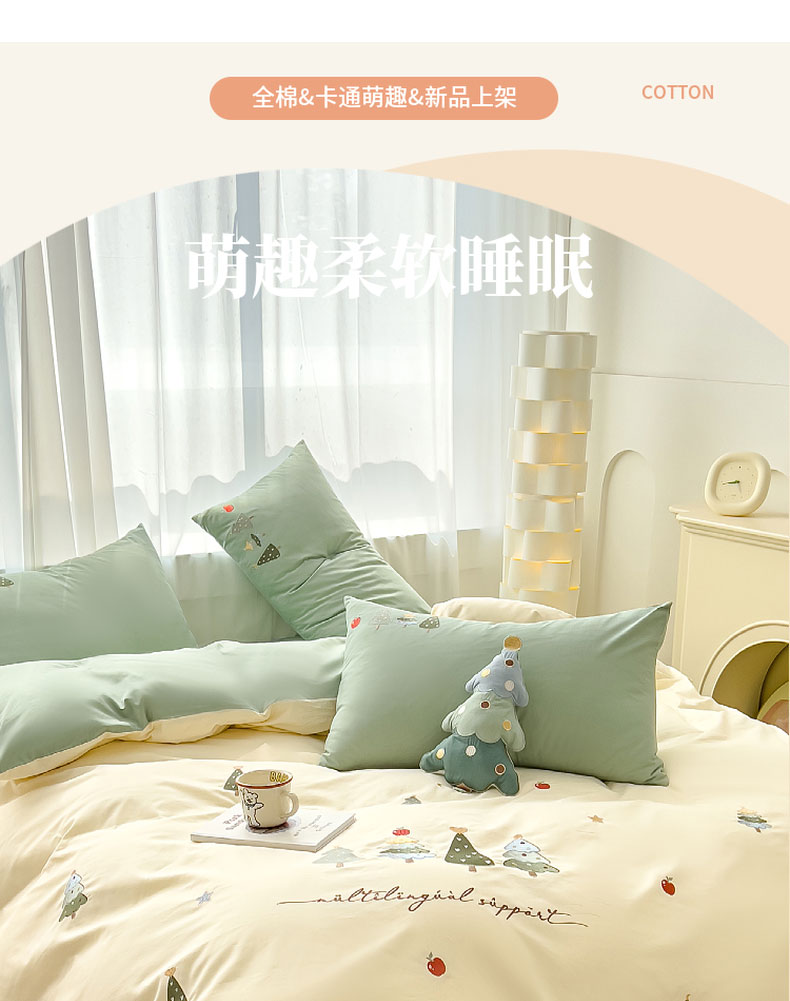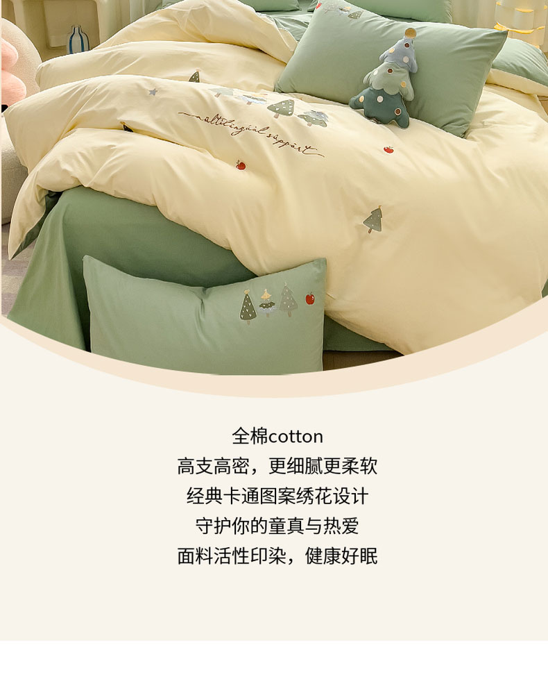 (总)亲亲公主 2025新款全棉卡通绣花四件套系列-幸运树
