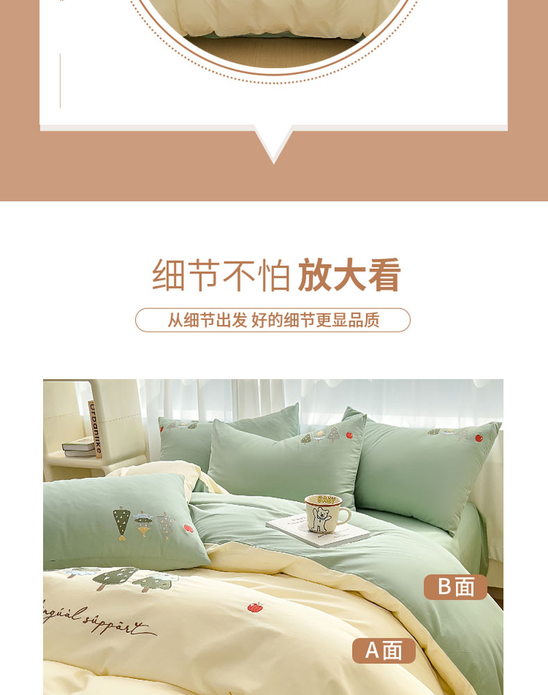 商品名称:(总)亲亲公主 2025新款全棉卡通绣花四件套系列-幸运树
