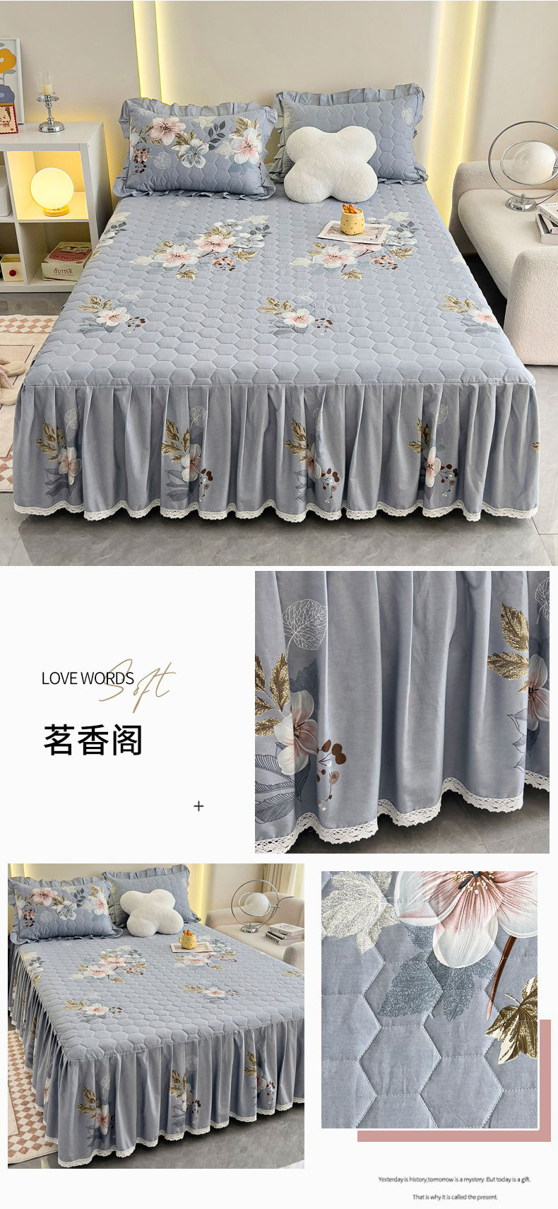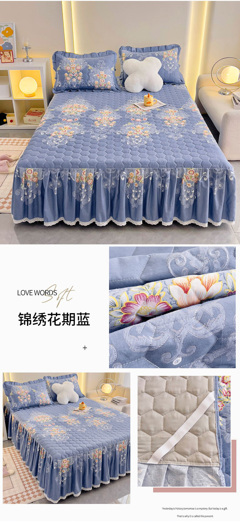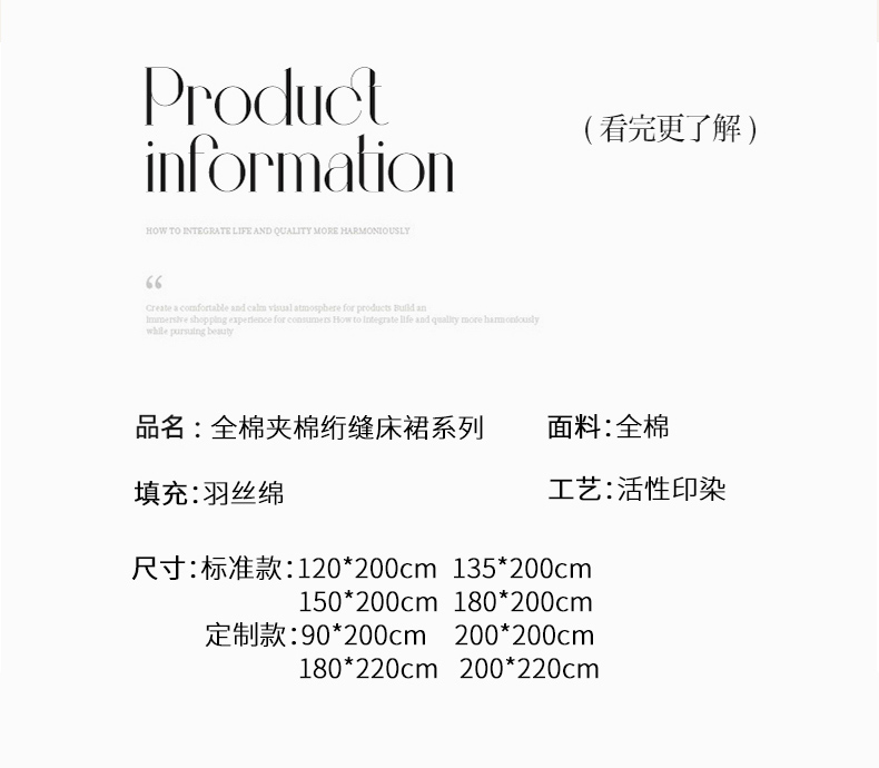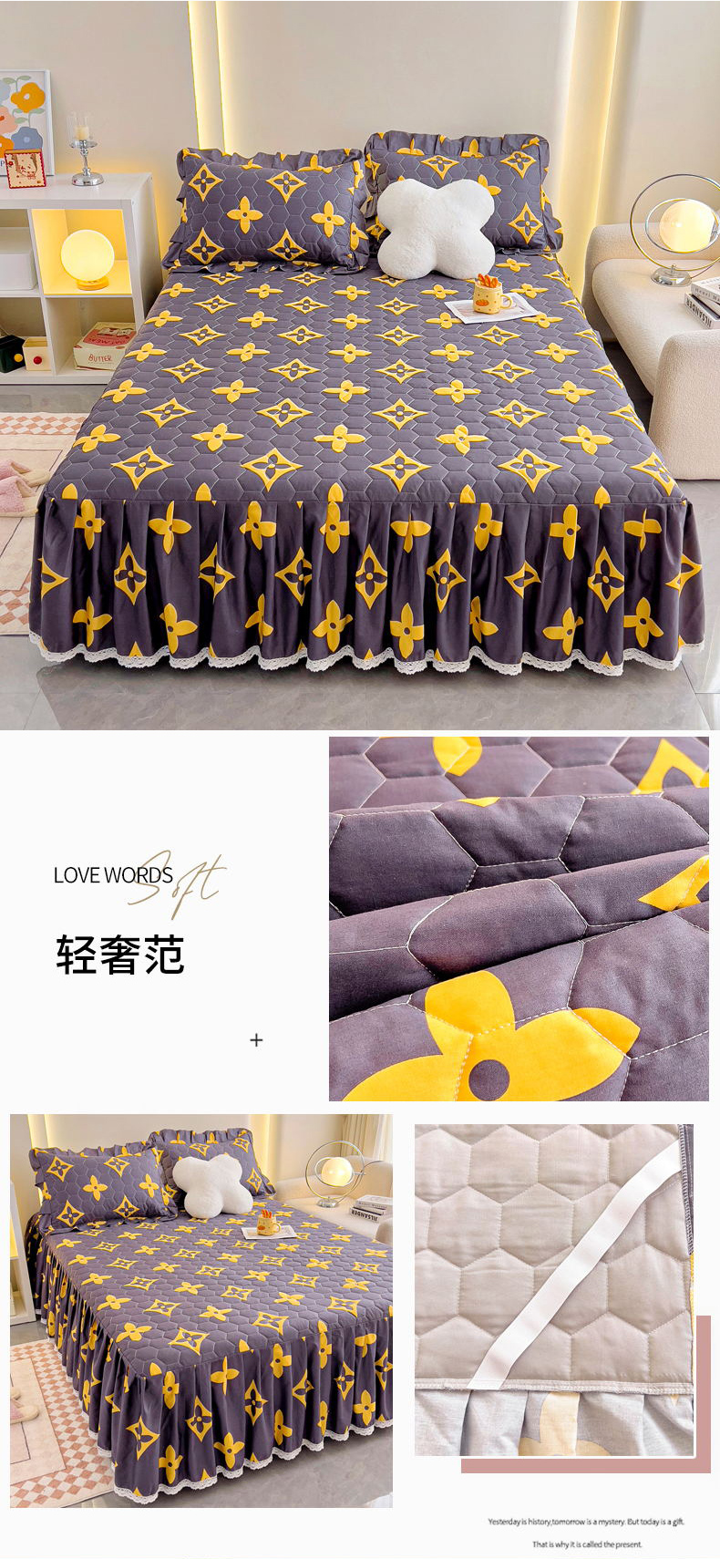 商品名称:(总)情煊家纺 2024新款全棉亲肤夹棉纯色印花床裙单品系列-单床裙