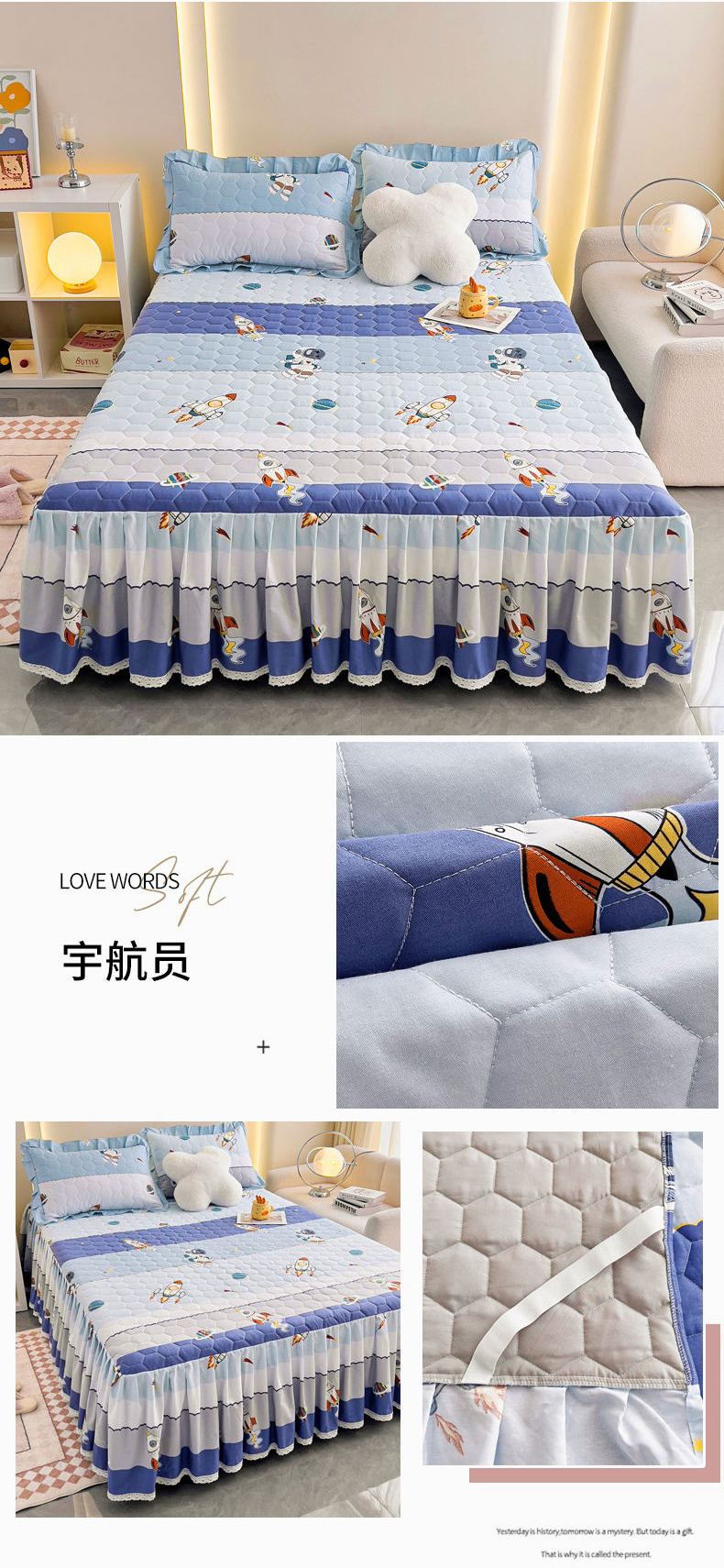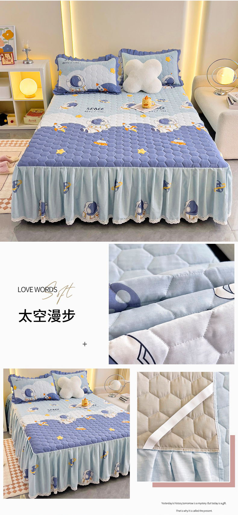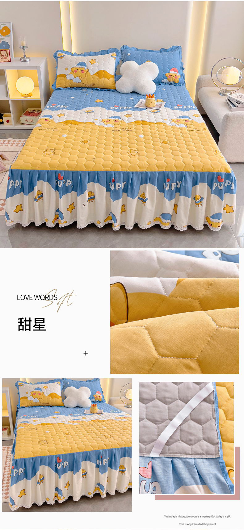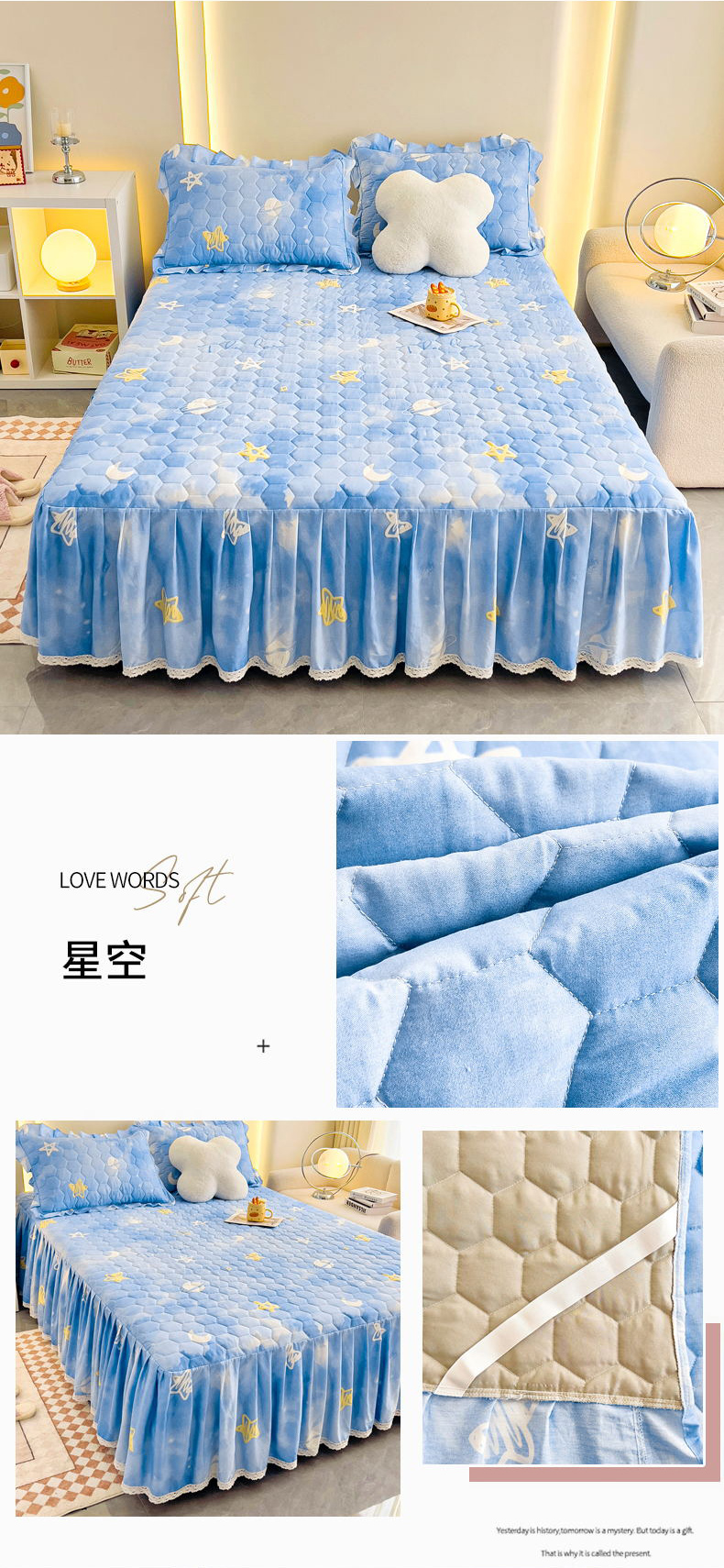 商品名称:(总)情煊家纺 2024新款全棉亲肤夹棉纯色印花床裙单品系列-单床裙