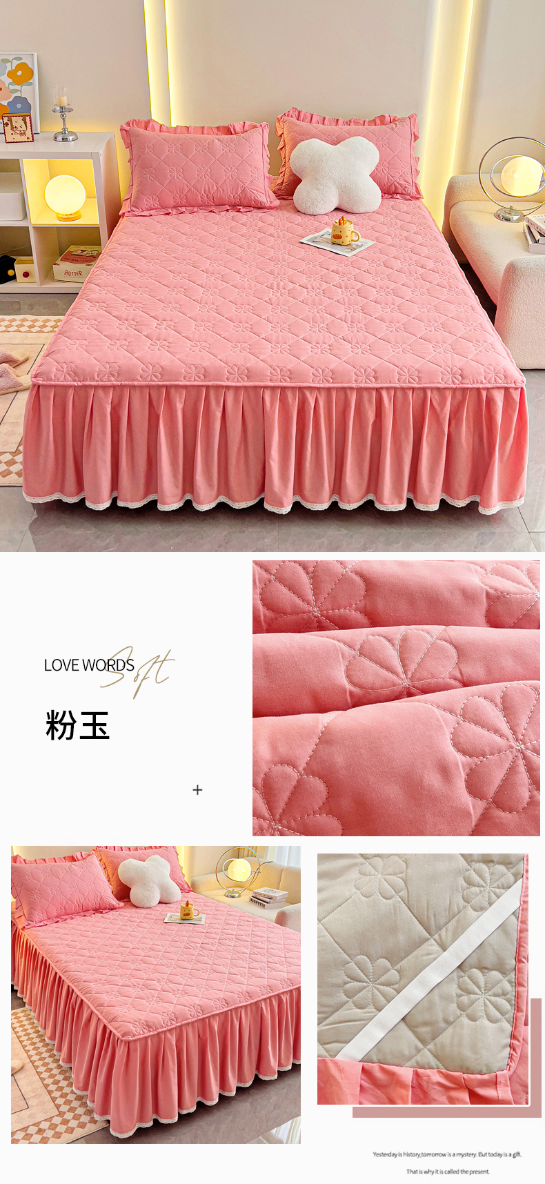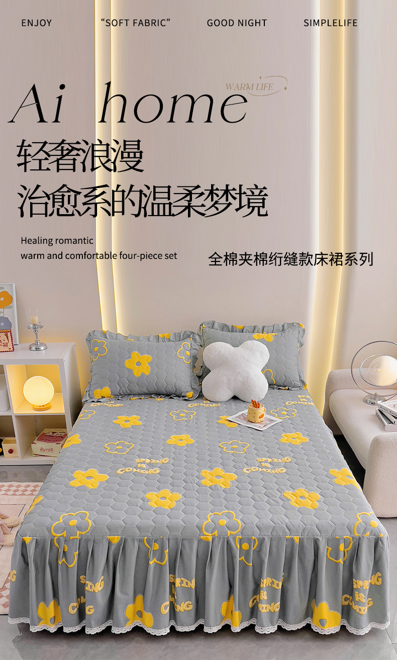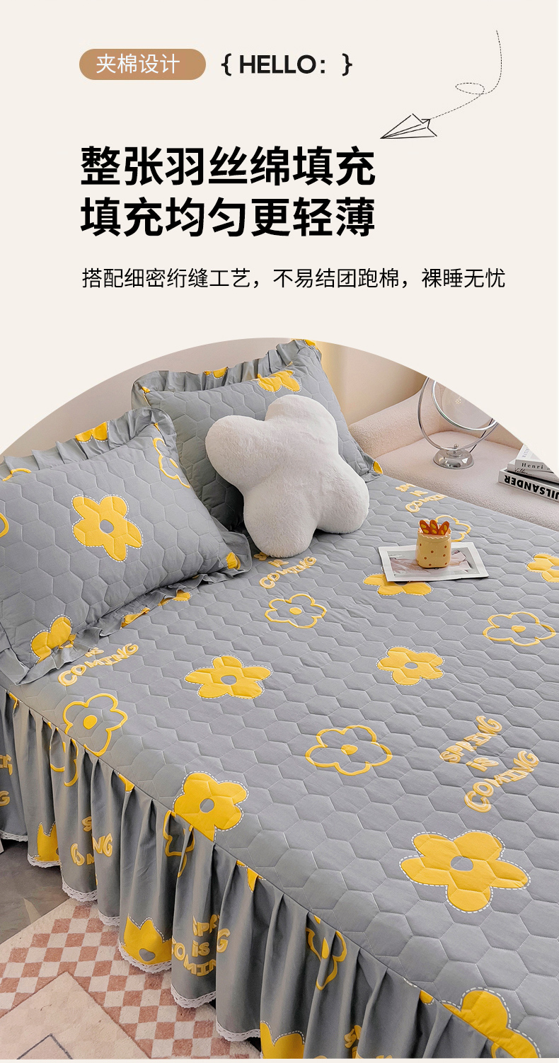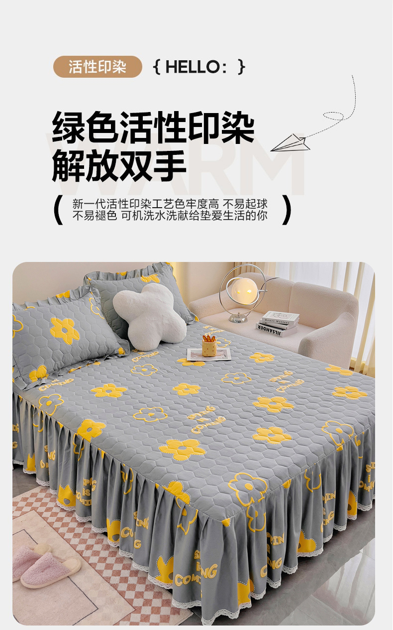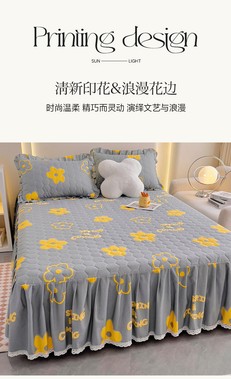 (总)情煊家纺 2024新款全棉亲肤夹棉纯色印花床裙单品系列-单床裙
