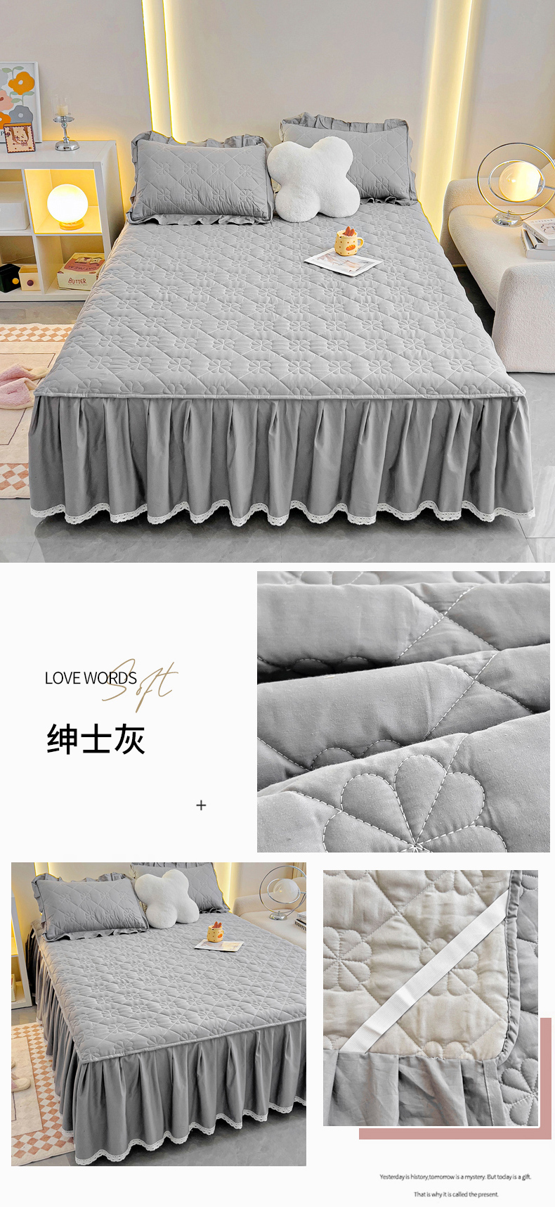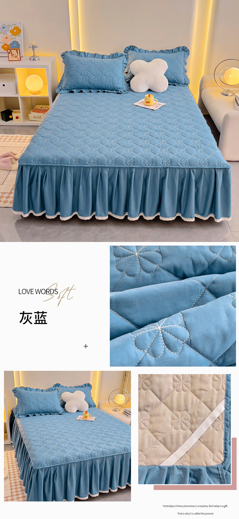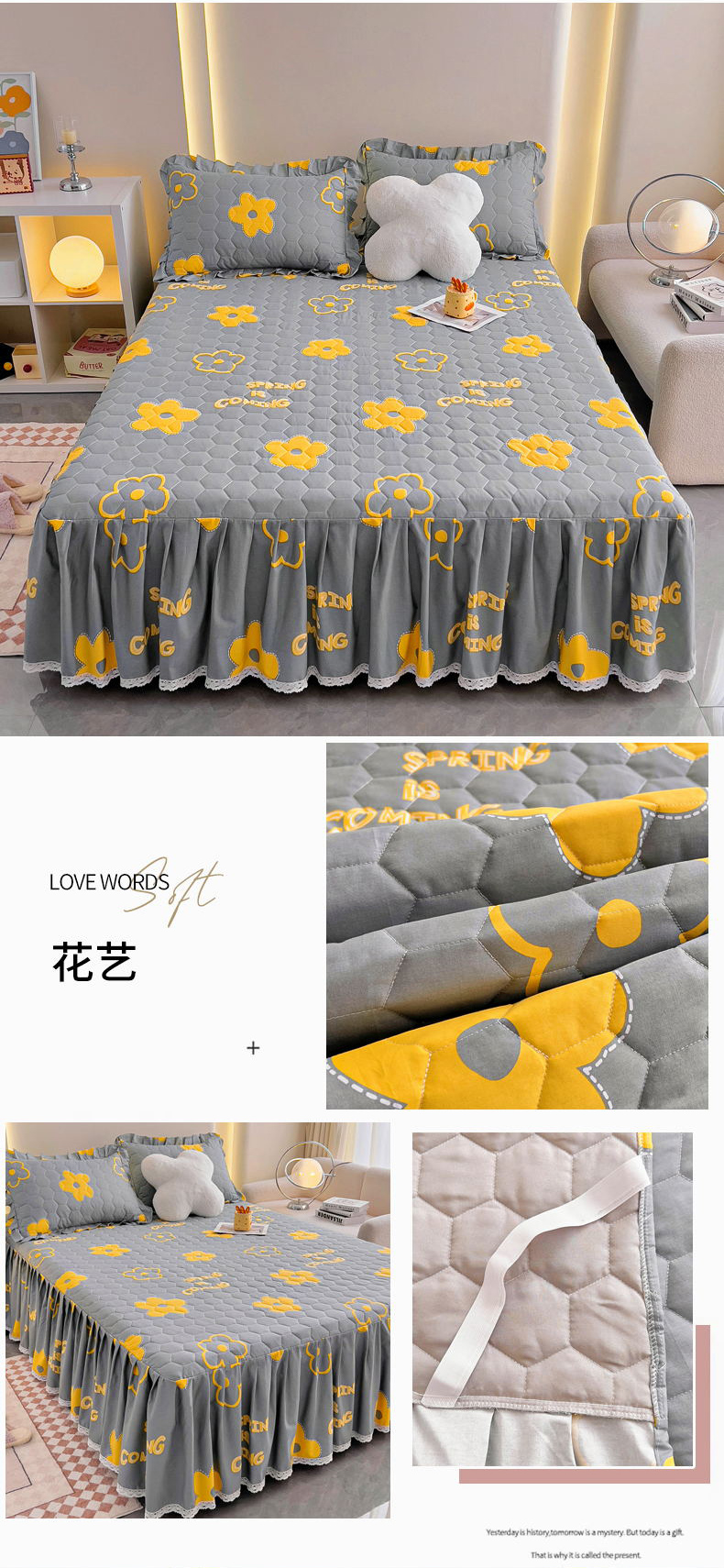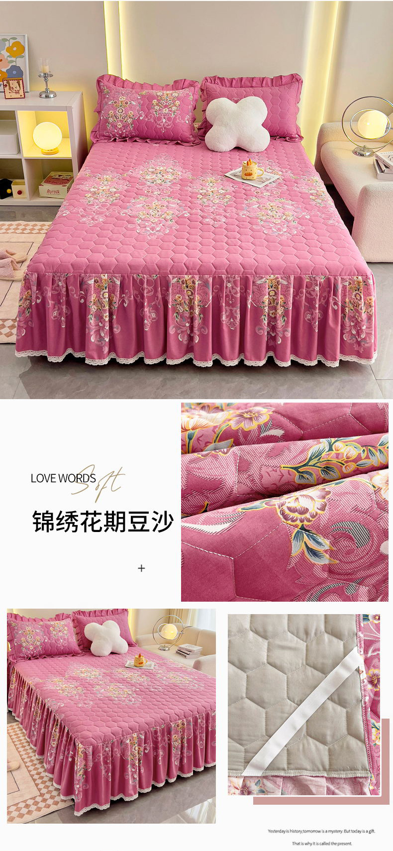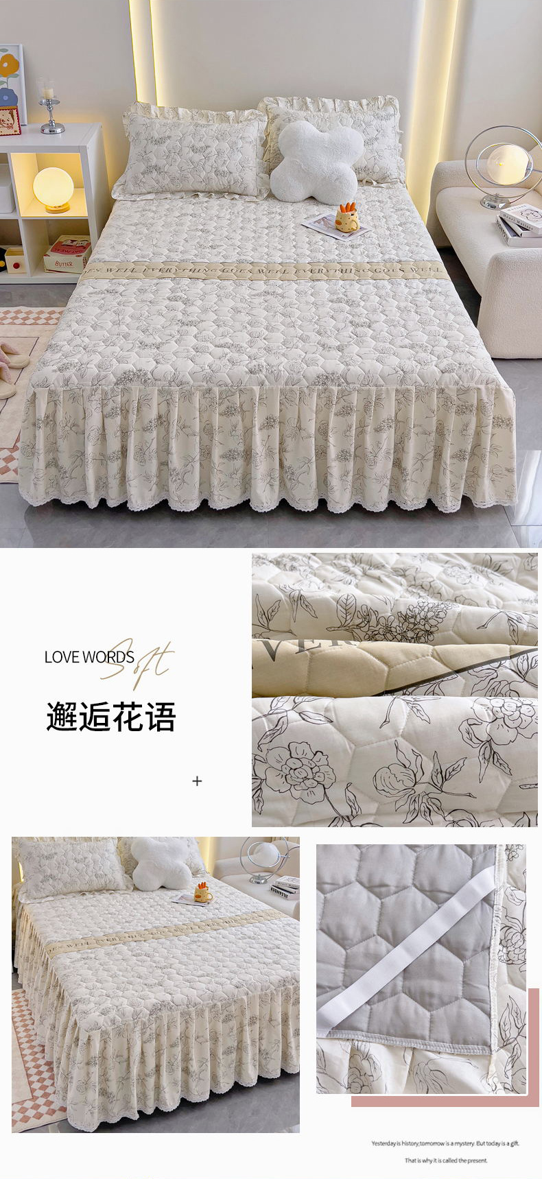 (总)情煊家纺 2024新款全棉亲肤夹棉纯色印花床裙单品系列-单床裙