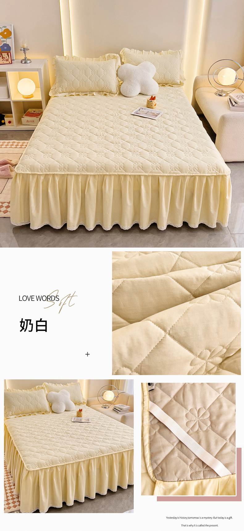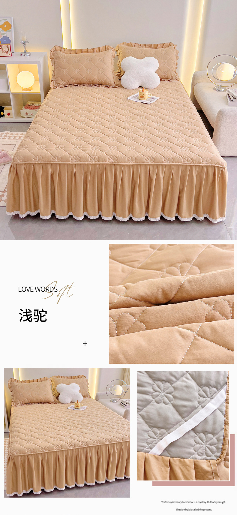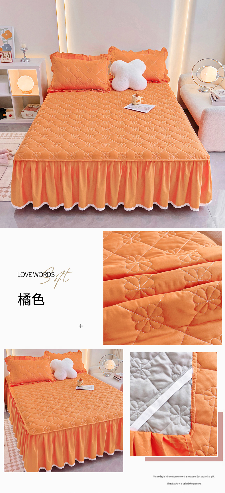 (总)情煊家纺 2024新款全棉亲肤夹棉纯色床裙,奶白,桔色,浅驼,灰蓝,粉玉,绅士灰,豆沙