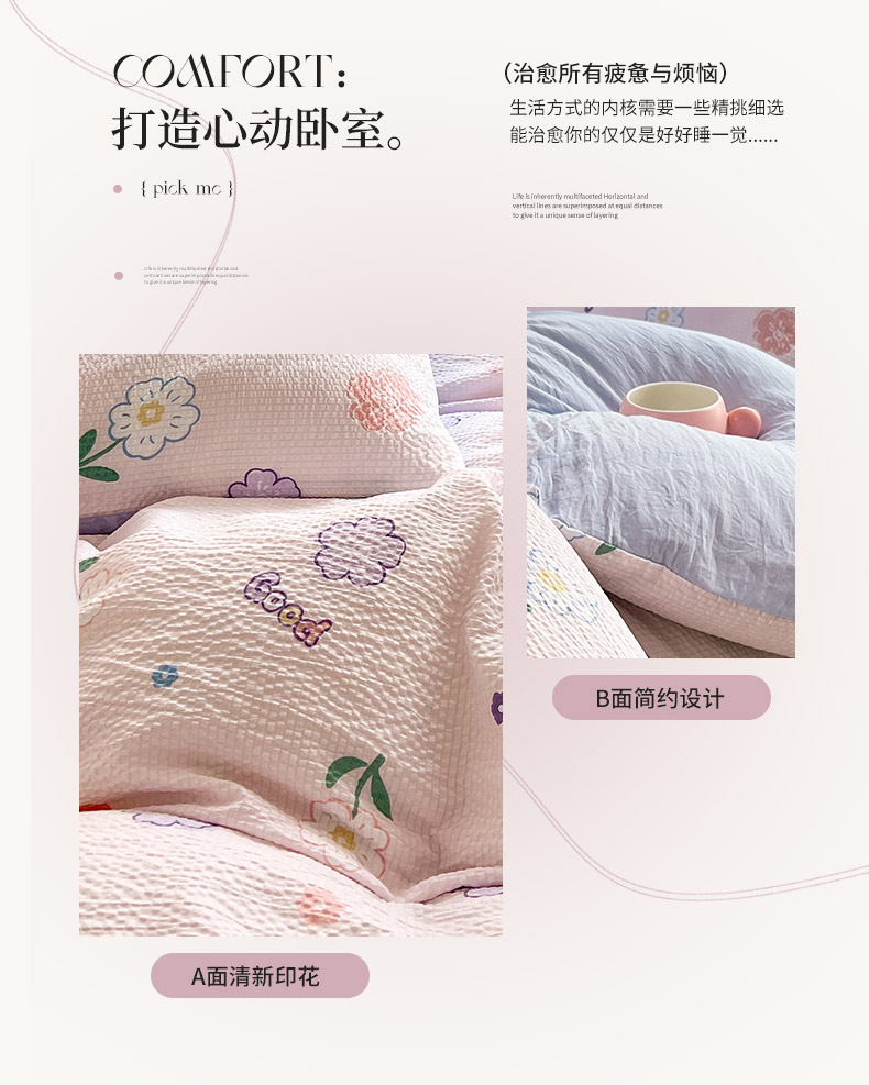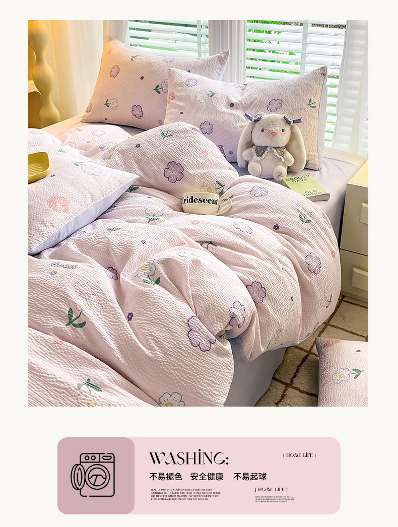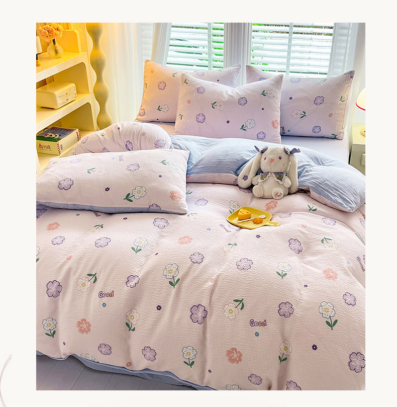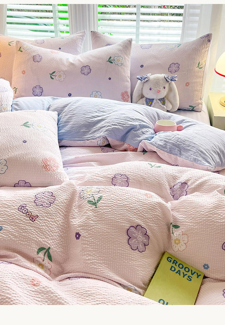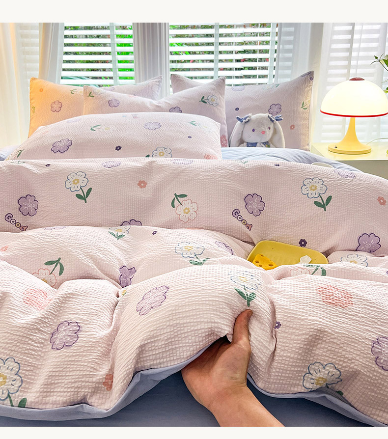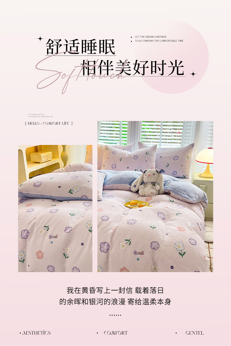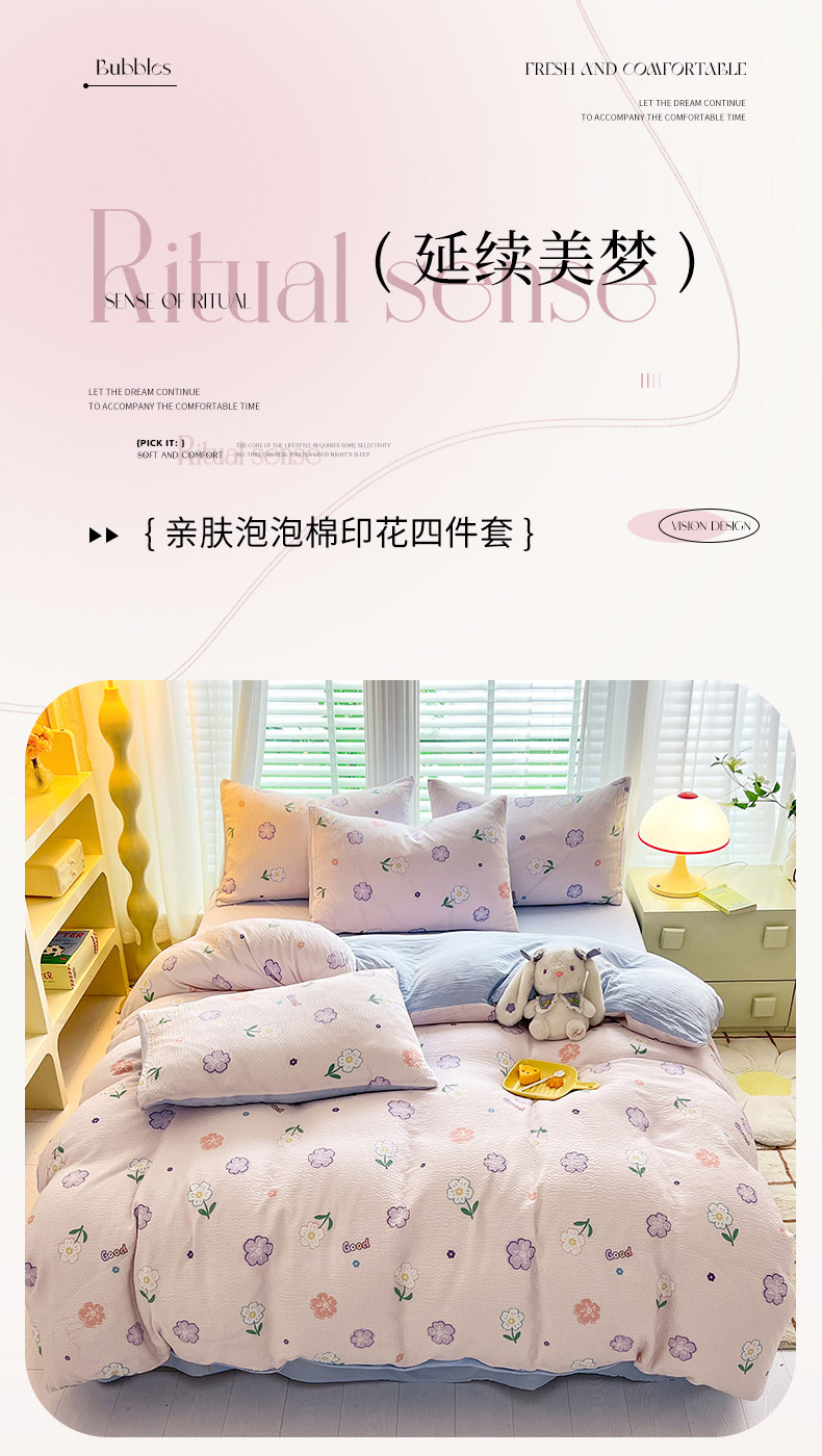 当前位置: 91家纺网 > 商品网购 > 床品套件 > 四件套 > 水洗棉四件套 > 妖妖家纺 2024新款有氧水洗泡泡棉印花四套泡芙棉四件套 小花花
