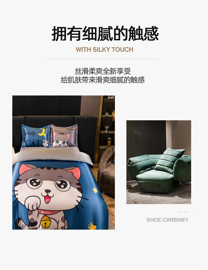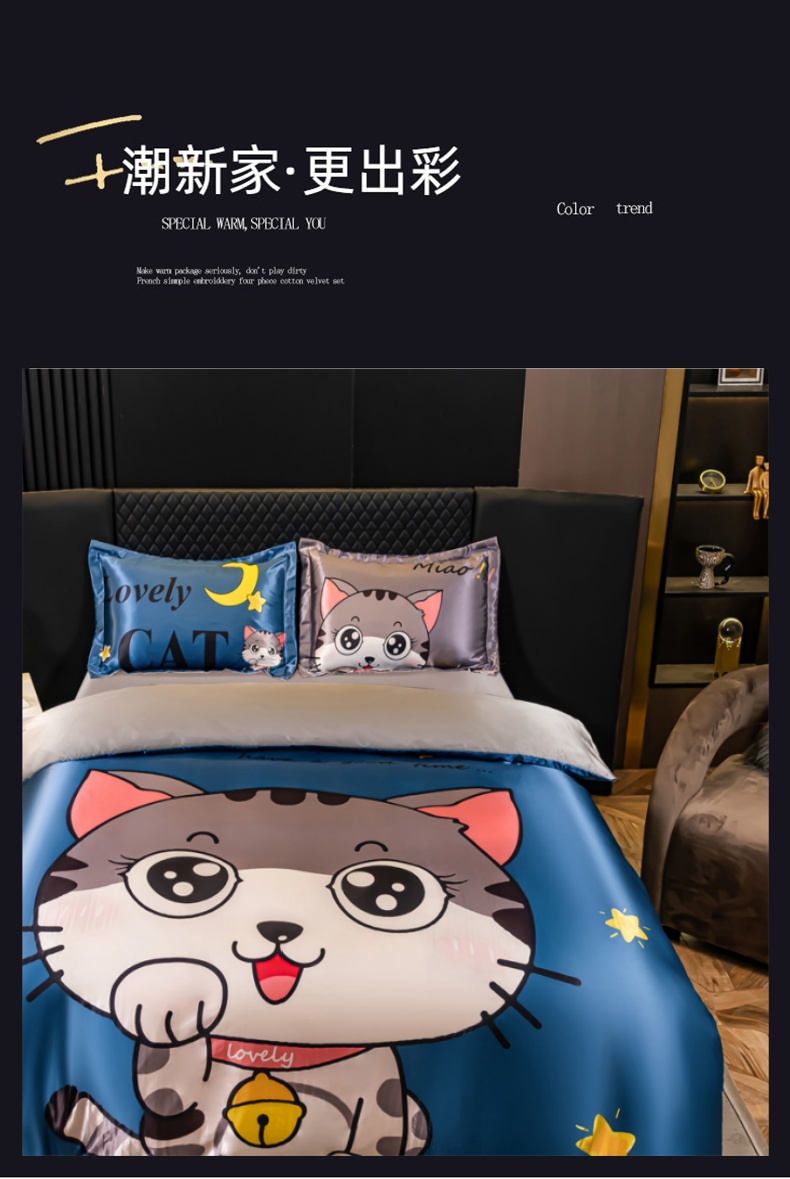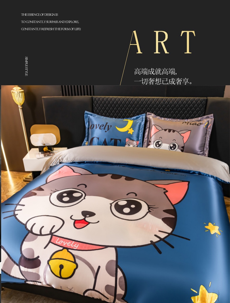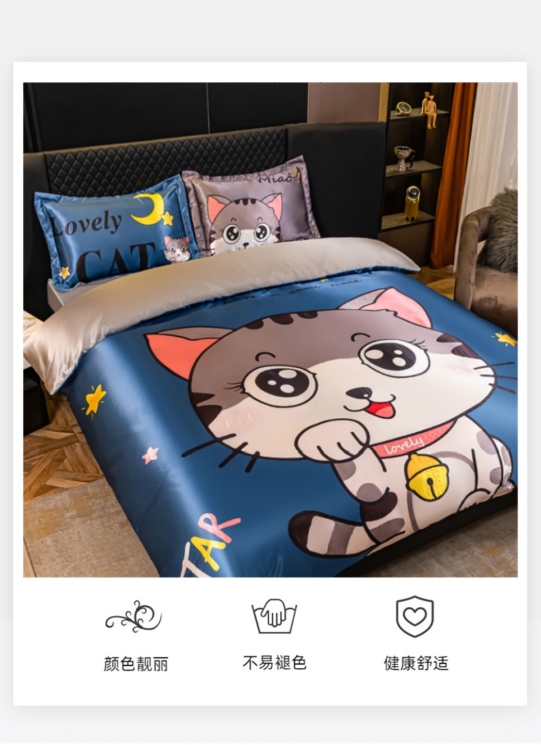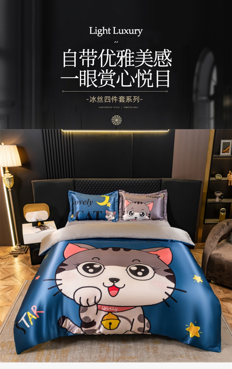 当前位置: 91家纺网 > 商品网购 > 床品套件 > 四件套 > 其它四件套 > 梦舒羽 2025新款可水洗大版冰丝床单卡通床笠四件套 招财小猫-大版冰丝被套